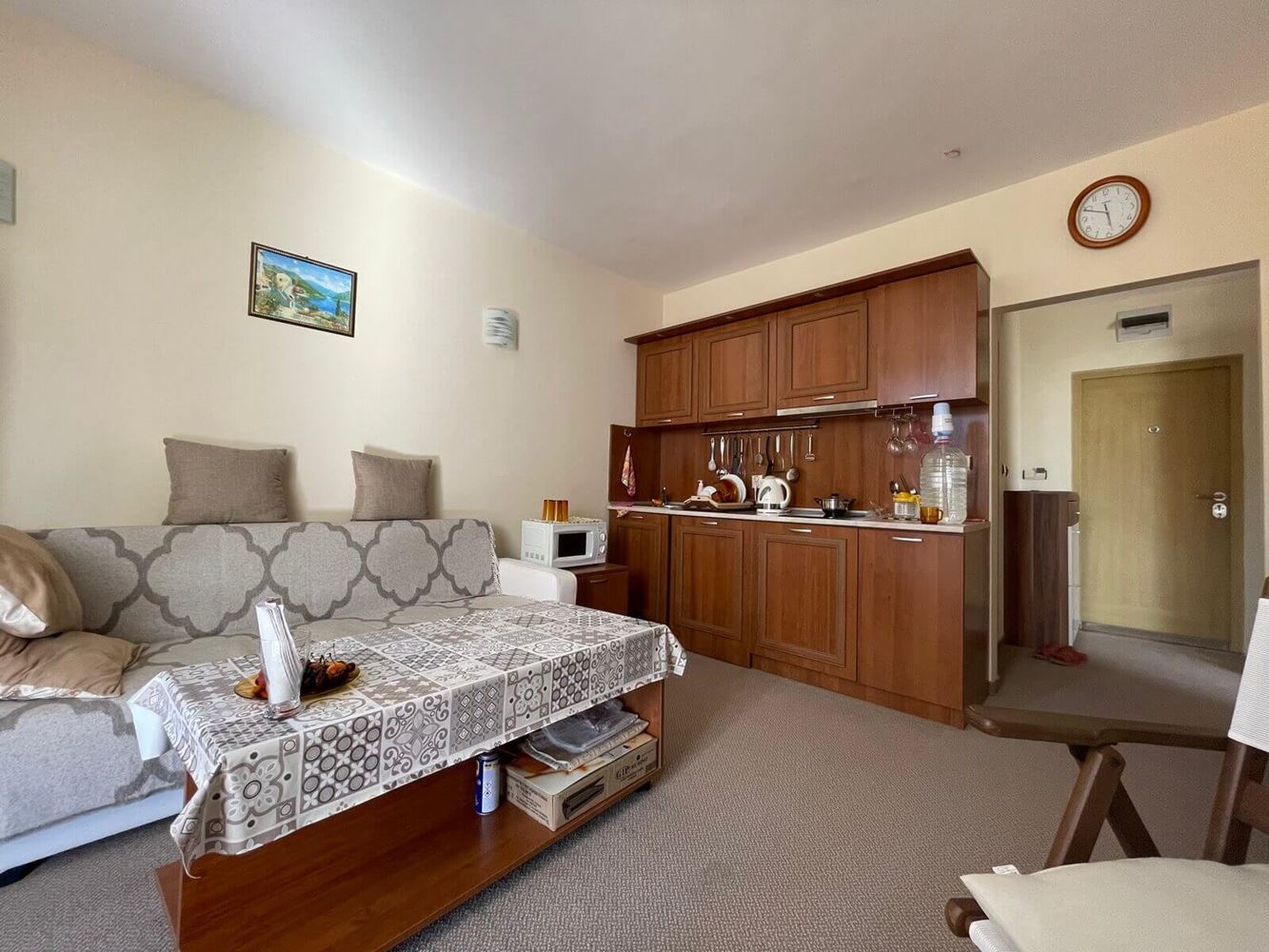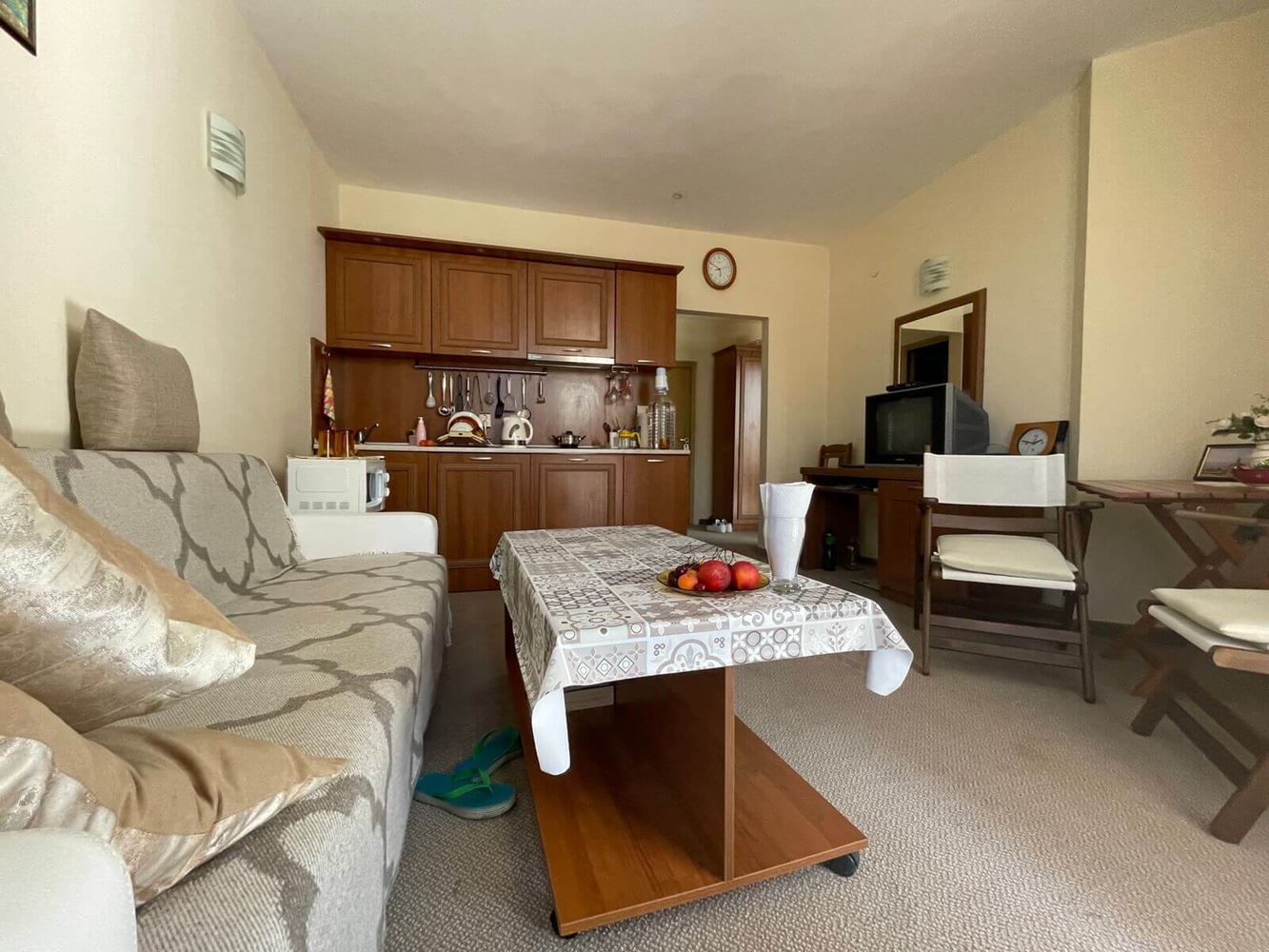 Comfortable one-bedroom flat in a modern complex with well-developed infrastructure, located in the centre of Sunny Beach resort. The buildings are built with modern technology, which allows for year-round full-time living. The complex consists of four six-storey sections, equipped with lifts. Secured territory, security, swimming pool, fitness centre, parking are some of the advantages of the complex. Flat with an area of 66 m2 is located on the fifth floor. It is offered furnished. Distance to the sea is not more than 400 m. A beauty salon, a supermarket and an exchange office are situated in the complex. Two kilometres away is the ancient town of Nessebar, which is a widely known landmark.