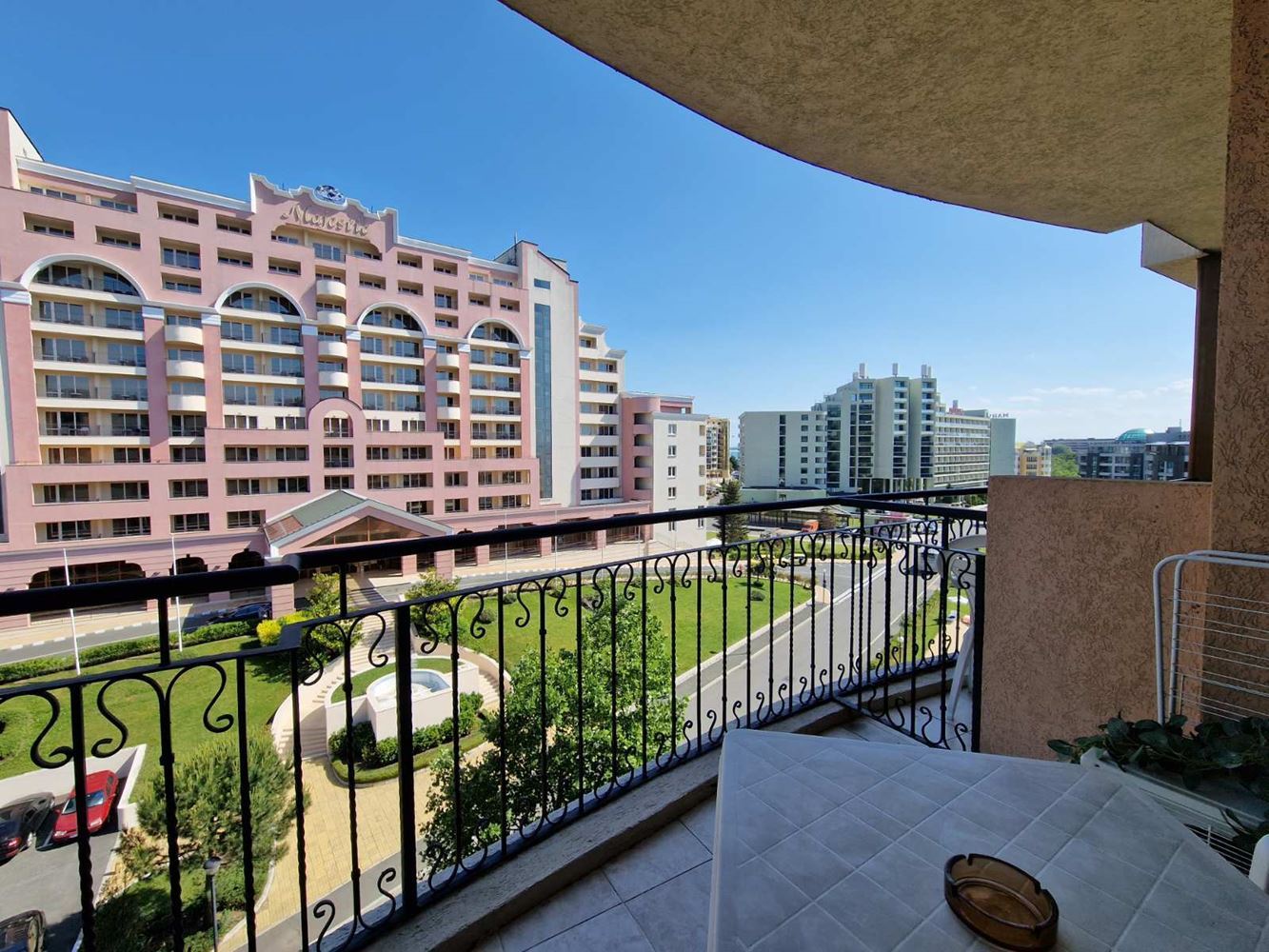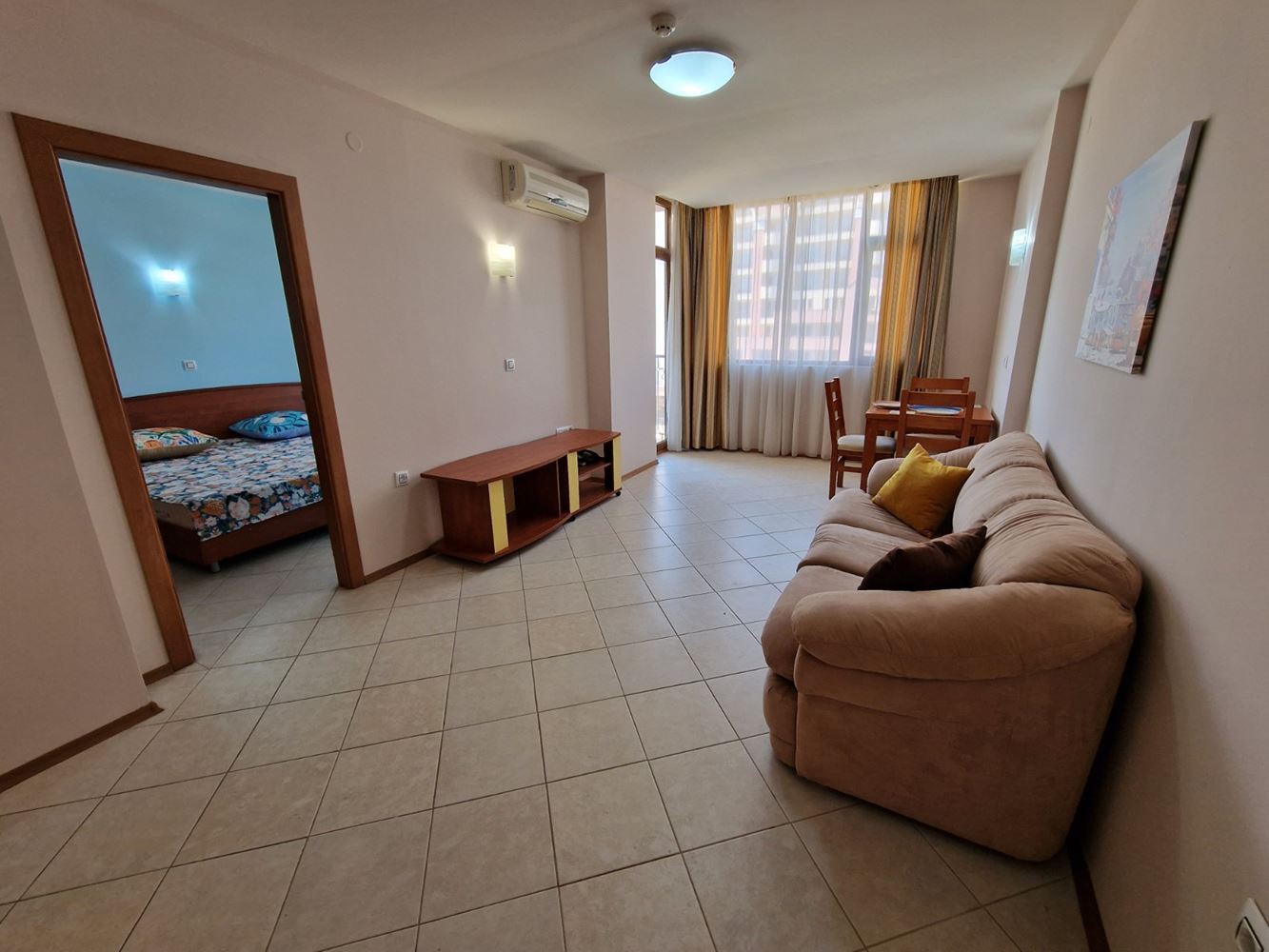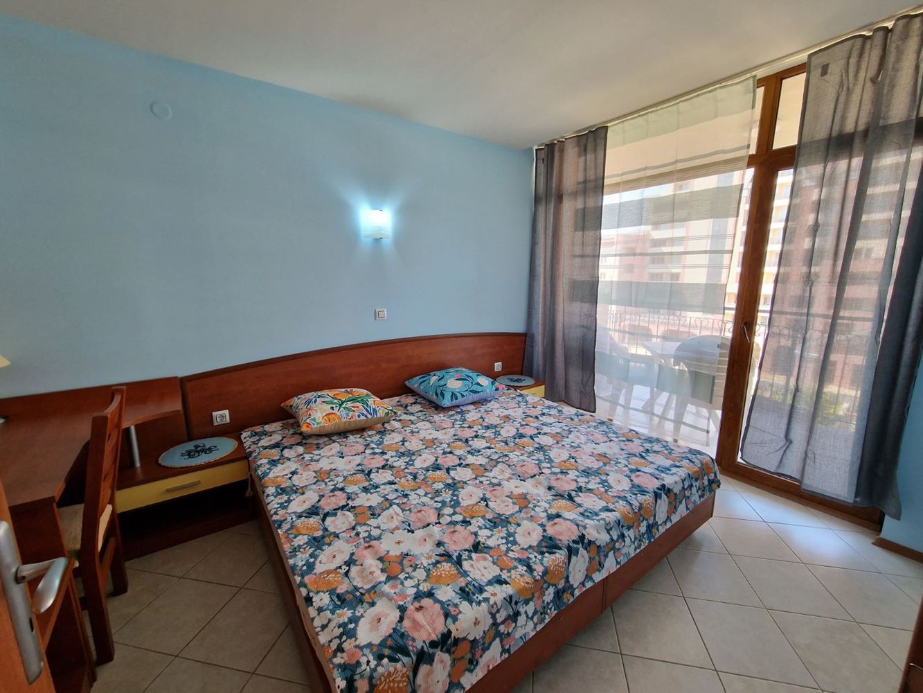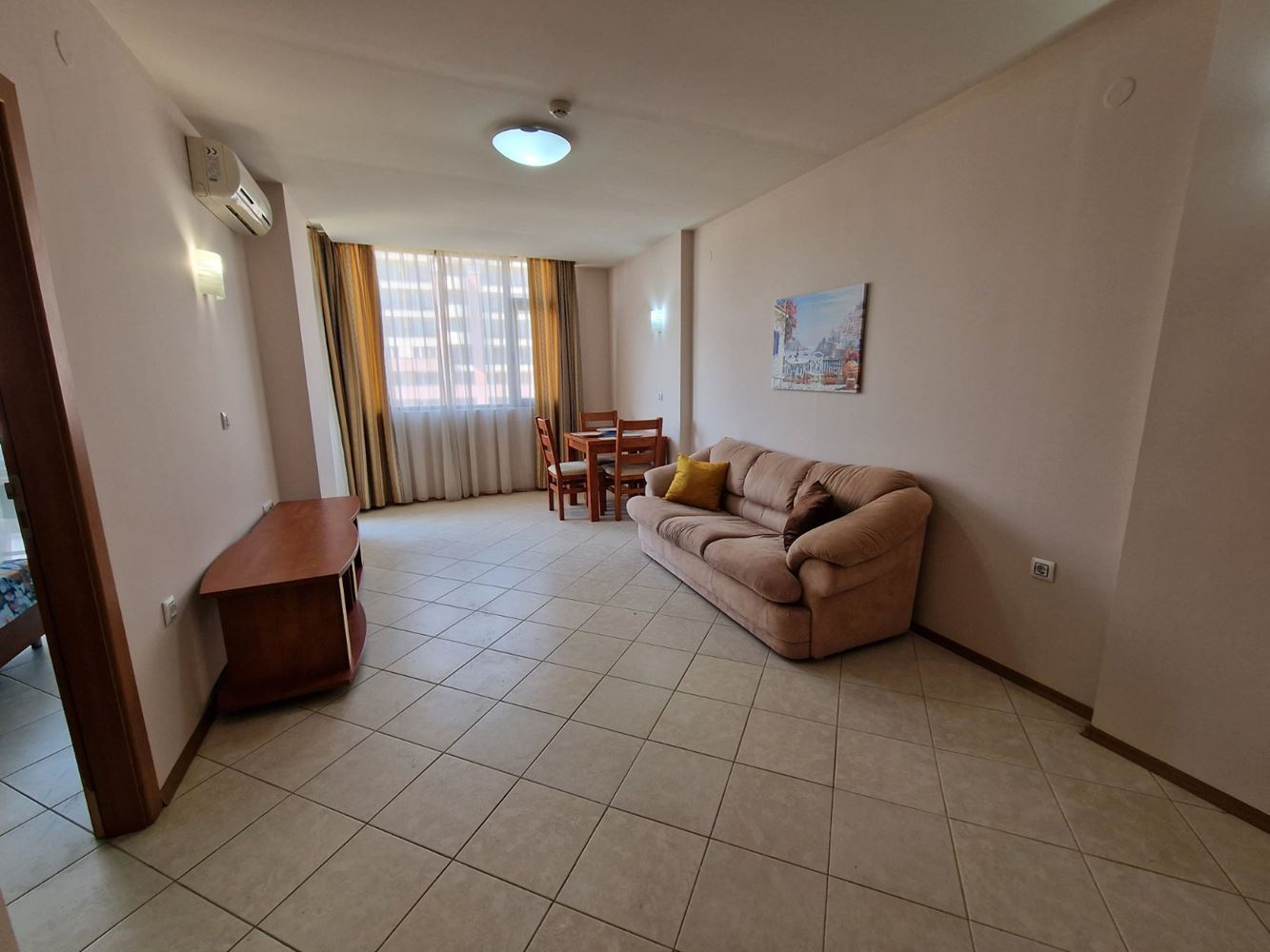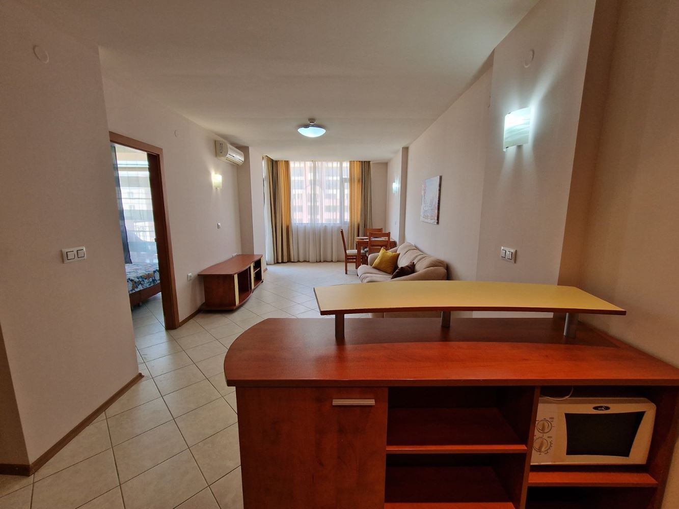 One bedroom comfortable flat in the popular Bulgarian resort of Sunny Beach. The one-bedroom flat is located in a complex 100 metres from the beach in the prestigious northern part of Sunny Beach. Near this building there are well known luxury complexes. The beach is about two minutes away on foot. Nearby there is a beautiful promenade with cozy cafes, bars, restaurants, boutiques, attractions. The complex has a well maintained area with reception, lobby bar, shop, cafe and restaurant. There is parking and a permanent security. A large and bright flat of 71 m2 is located on the fifth floor with a lift. The property is offered furnished. It is a great option not only for summer holidays, but also for investment or permanent residence.