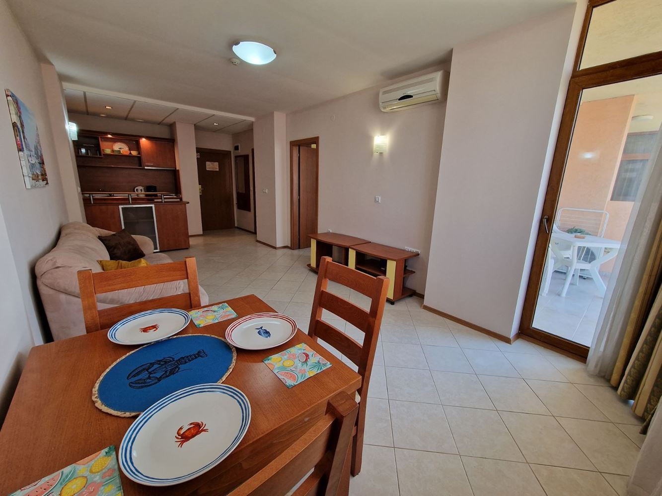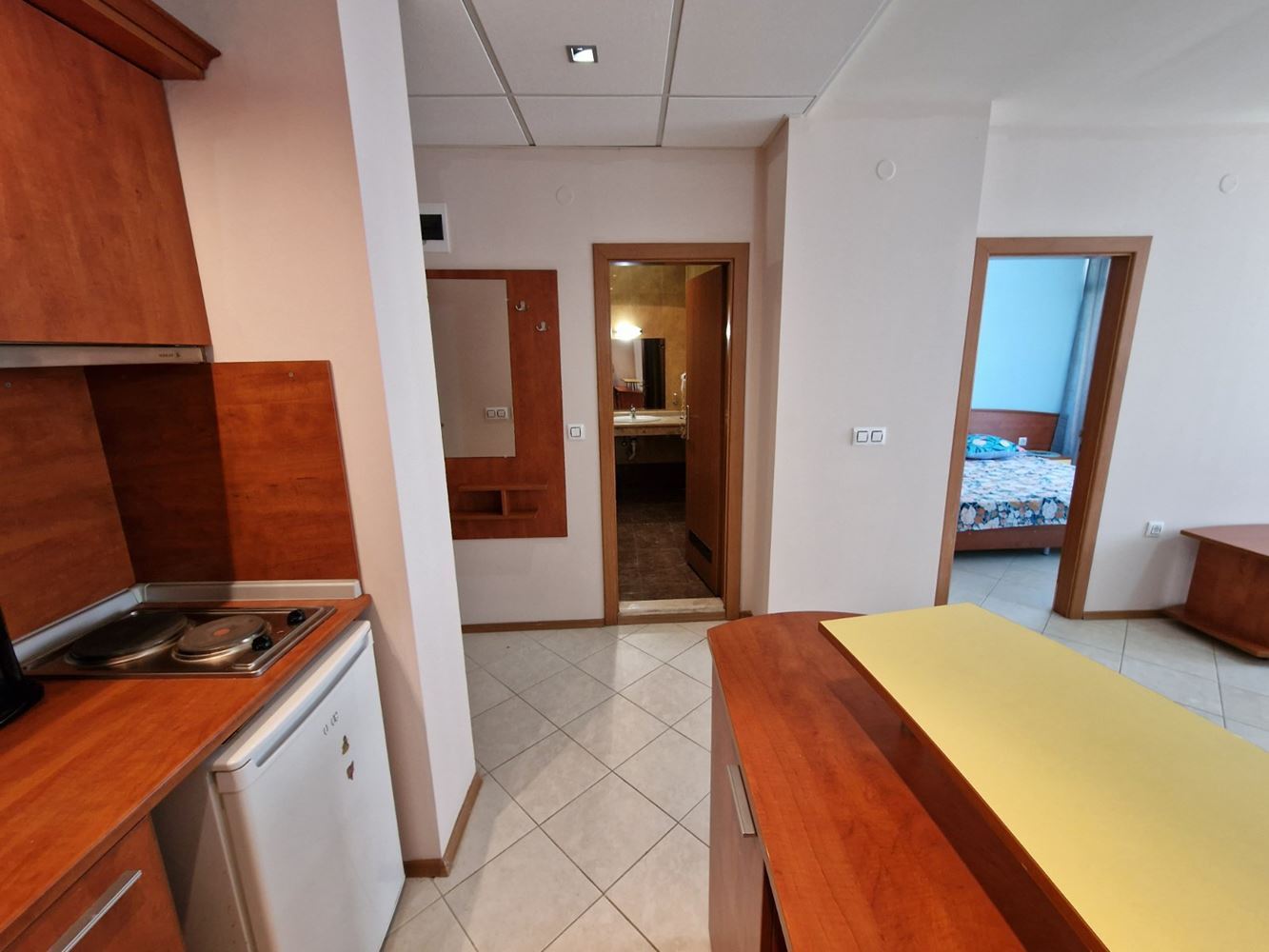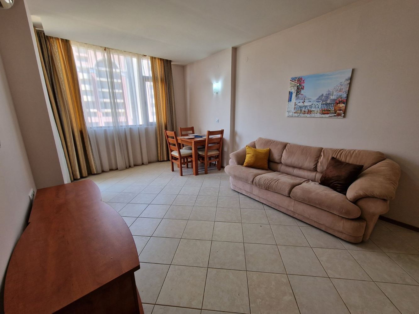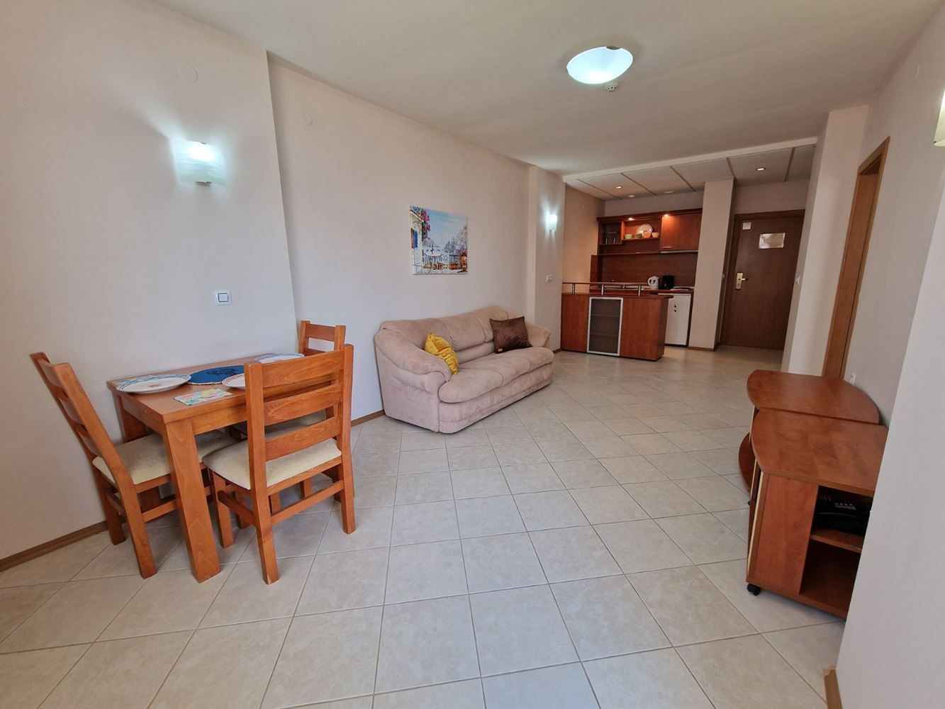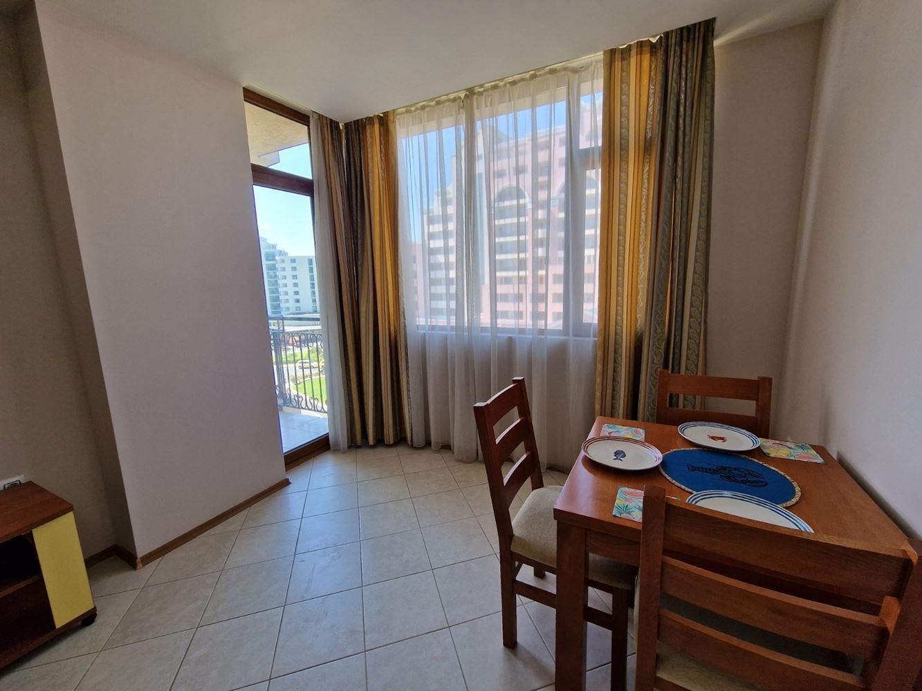 One bedroom comfortable flat in the popular Bulgarian resort of Sunny Beach. The one-bedroom flat is located in a complex 100 metres from the beach in the prestigious northern part of Sunny Beach. Near this building there are well known luxury complexes. The beach is about two minutes away on foot. Nearby there is a beautiful promenade with cozy cafes, bars, restaurants, boutiques, attractions. The complex has a well maintained area with reception, lobby bar, shop, cafe and restaurant. There is parking and a permanent security. A large and bright flat of 71 m2 is located on the fifth floor with a lift. The property is offered furnished. It is a great option not only for summer holidays, but also for investment or permanent residence.
