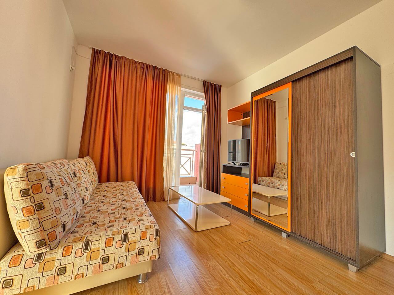 We present an exceptional opportunity to purchase a property for investment or personal use in the popular resort complex Sunny Beach! This one-bedroom apartment with a total area of 49 m² offers comfort and convenience, suitable both for year-round living and for seaside vacations. The property consists of a cozy living room combined with a modern kitchen, a comfortable bedroom, a fully equipped bathroom, and a balcony offering a pleasant view of the complex’s swimming pool.