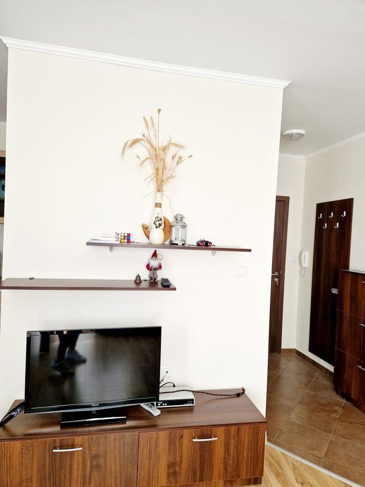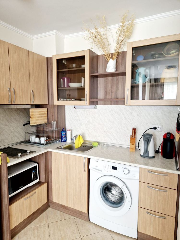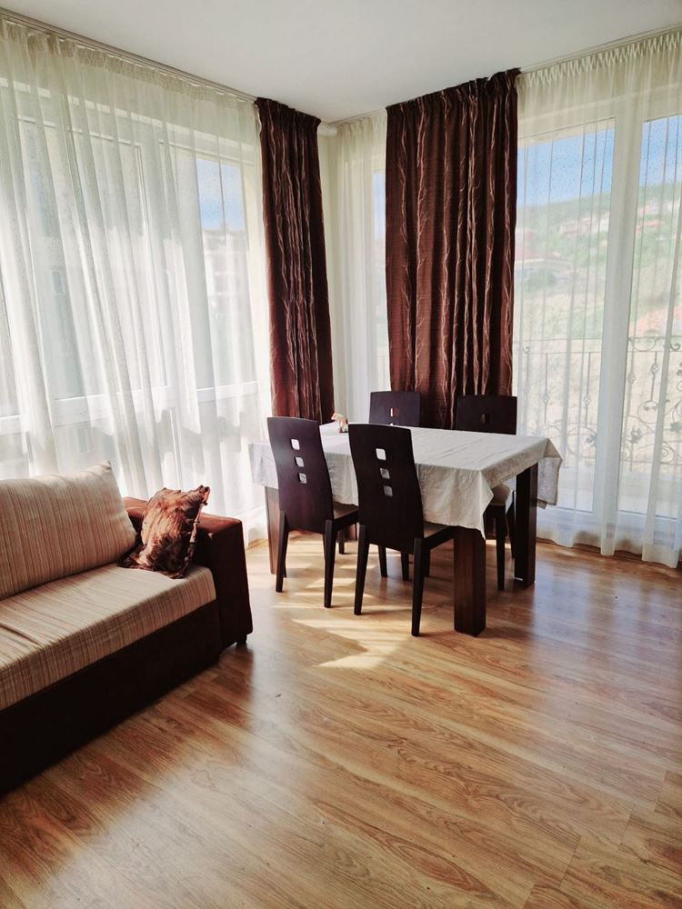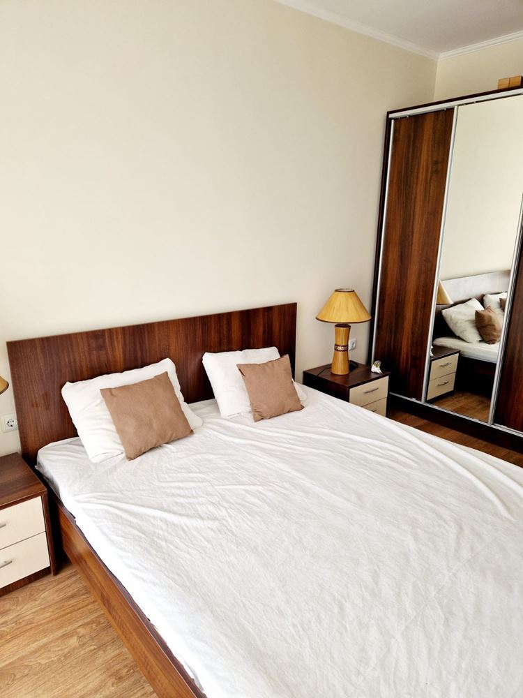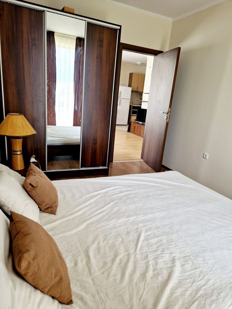 We present you a comfortable one bedroom apartment with beautiful sea and mountain views, located in a residential complex in the resort town of Sveti Vlas. This apartment is located in a quiet and picturesque place, just 700 meters from the sea and sandy beach. There is a yacht harbor 1.5 kilometers away from the complex, which makes it an ideal place for lovers of boat trips. The location in Sveti Vlas provides proximity to all the city infrastructure, including stores, restaurants, kindergartens and playgrounds, as well as a beautiful promenade. The residential complex consists of two five-storey buildings with modern architecture and elevators. On the roof of the building there is a roof terrace with a cafe and solarium, where you can enjoy the sea and mountain views. The apartment has a total area of 63 square meters. It is located on the second floor and has two balconies. This apartment is fully furnished and equipped, making it ready to move in.