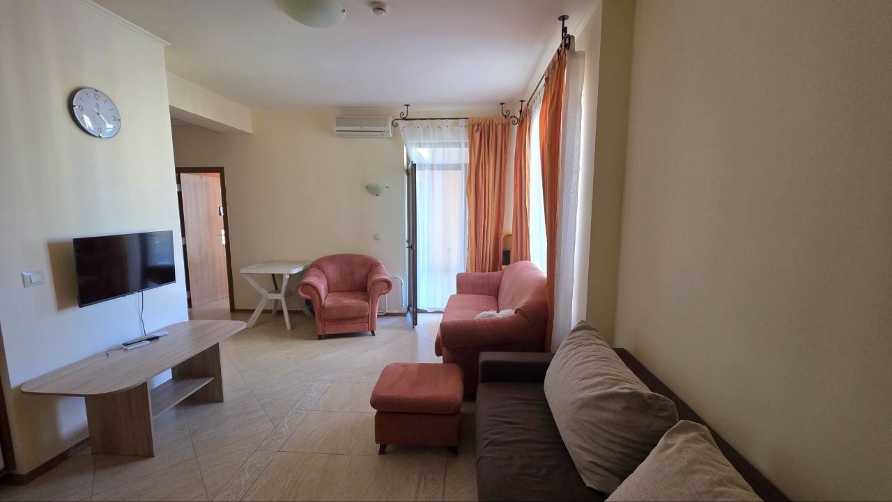 We present to you a bright and comfortable one-bedroom apartment with an area of 71.35 m², located on the fourth floor of a well-maintained holiday complex in Sunny Beach. The property is offered fully furnished and equipped, ready for immediate occupancy, with a convenient elevator in the building.