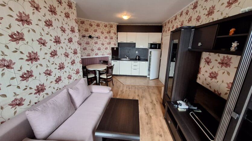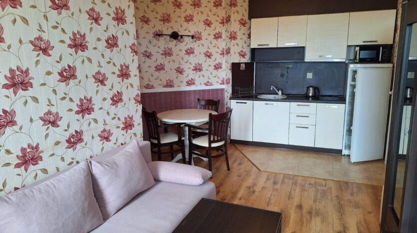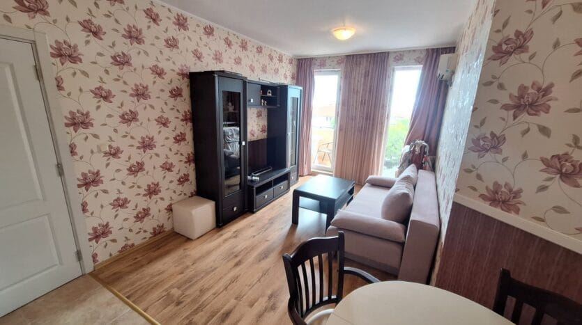 We present a one-bedroom apartment, located on the fourth floor in a well-maintained complex in the popular seaside resort of Ravda. The property has a total built-up area of 54 m² and is offered fully furnished and equipped, ready for immediate occupancy or use as a holiday home. The main highlight of the apartment is a cozy terrace with a beautiful view, providing a quiet and pleasant place for relaxation, leisure, or evening gatherings outdoors.