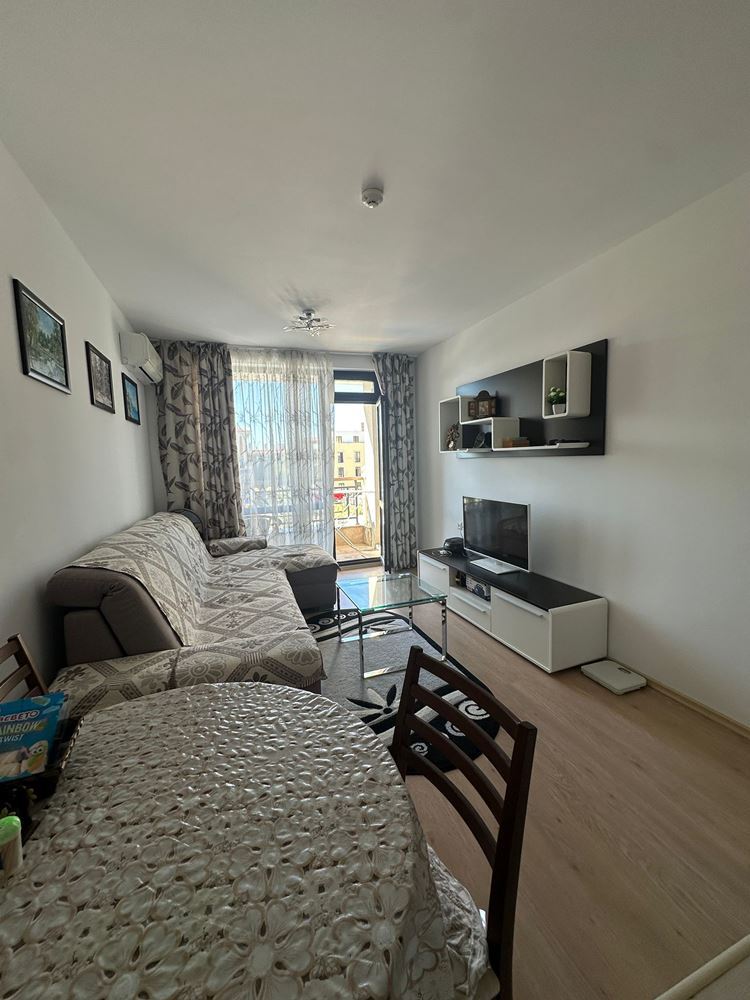 We are pleased to present a comfortable one-bedroom apartment with a pool view, located in the beautiful town of Sveti Vlas. This property is a true gem on the second floor of the building, offering comfort and coziness across 54 m². The apartment consists of an entrance hall, a spacious living room with a cozy kitchenette, one bedroom, and a bathroom with a toilet. One of the highlights of this apartment is the stylish terrace, where you can enjoy the pool view — perfect for morning coffee or romantic evenings.
