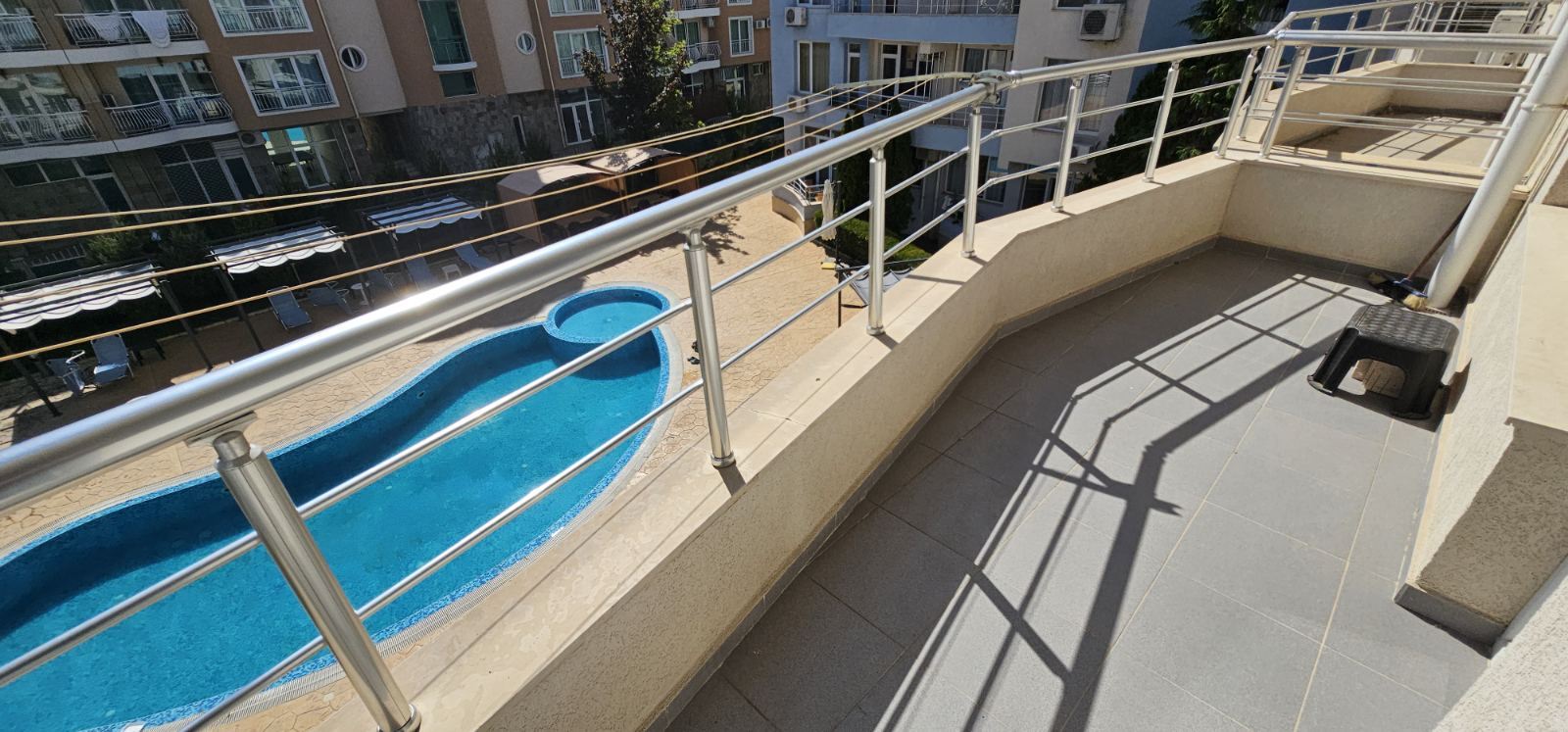 This apartment is an excellent choice for those seeking a spacious and functional home in a complex with amenities, combining immediate readiness for use, a pleasant pool view, and a comfortable living environment.