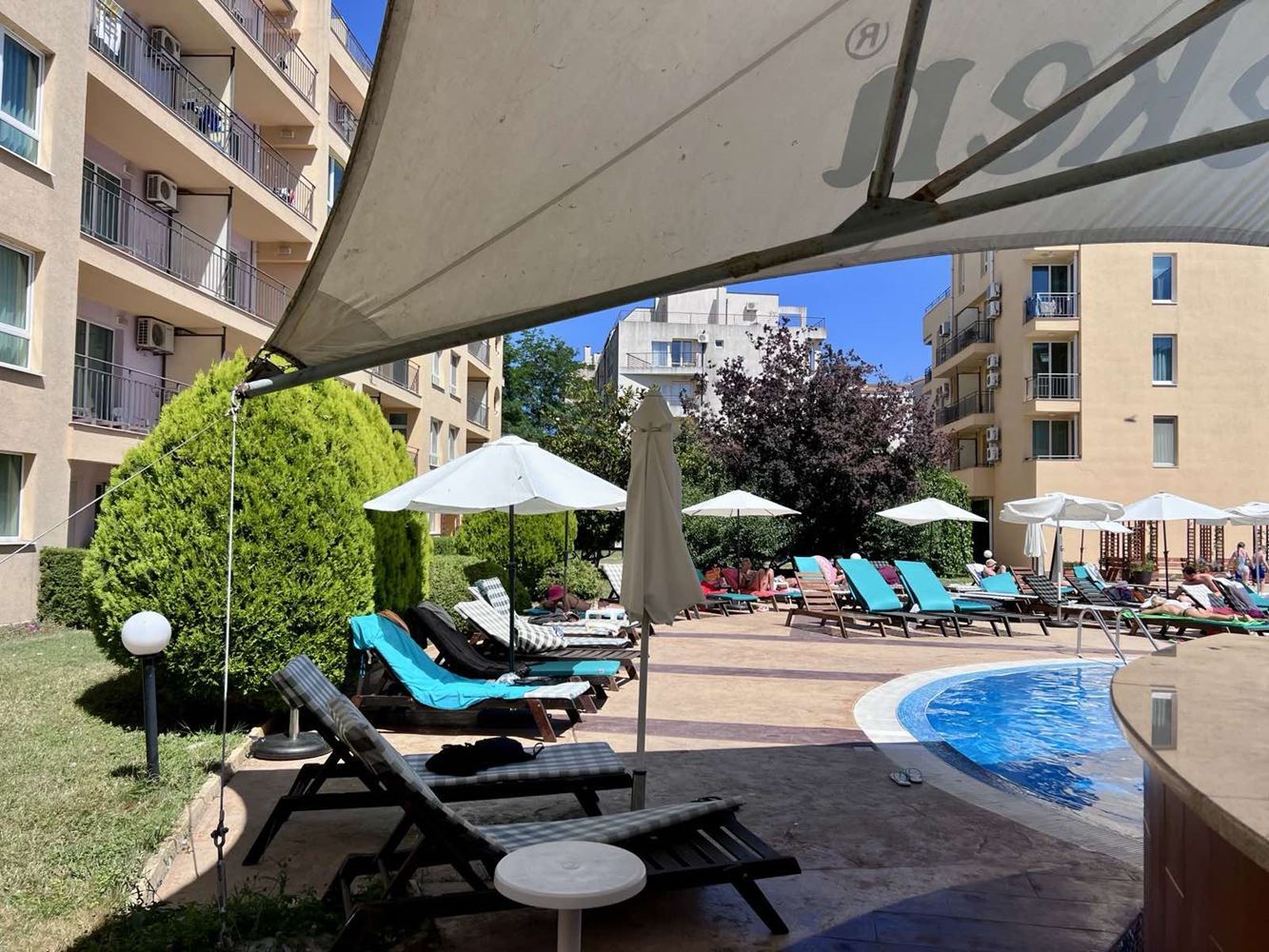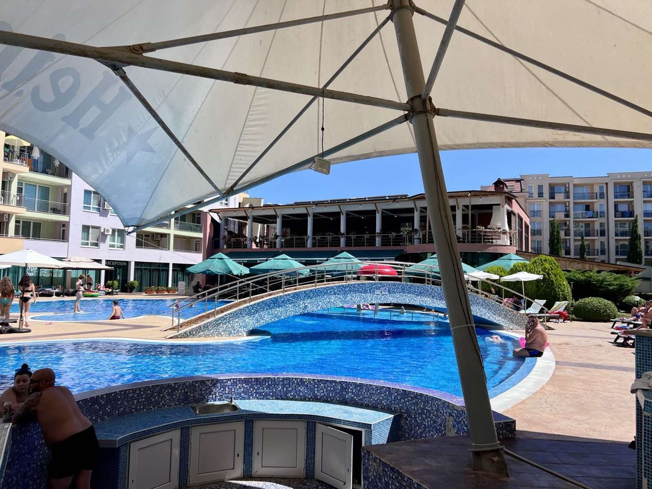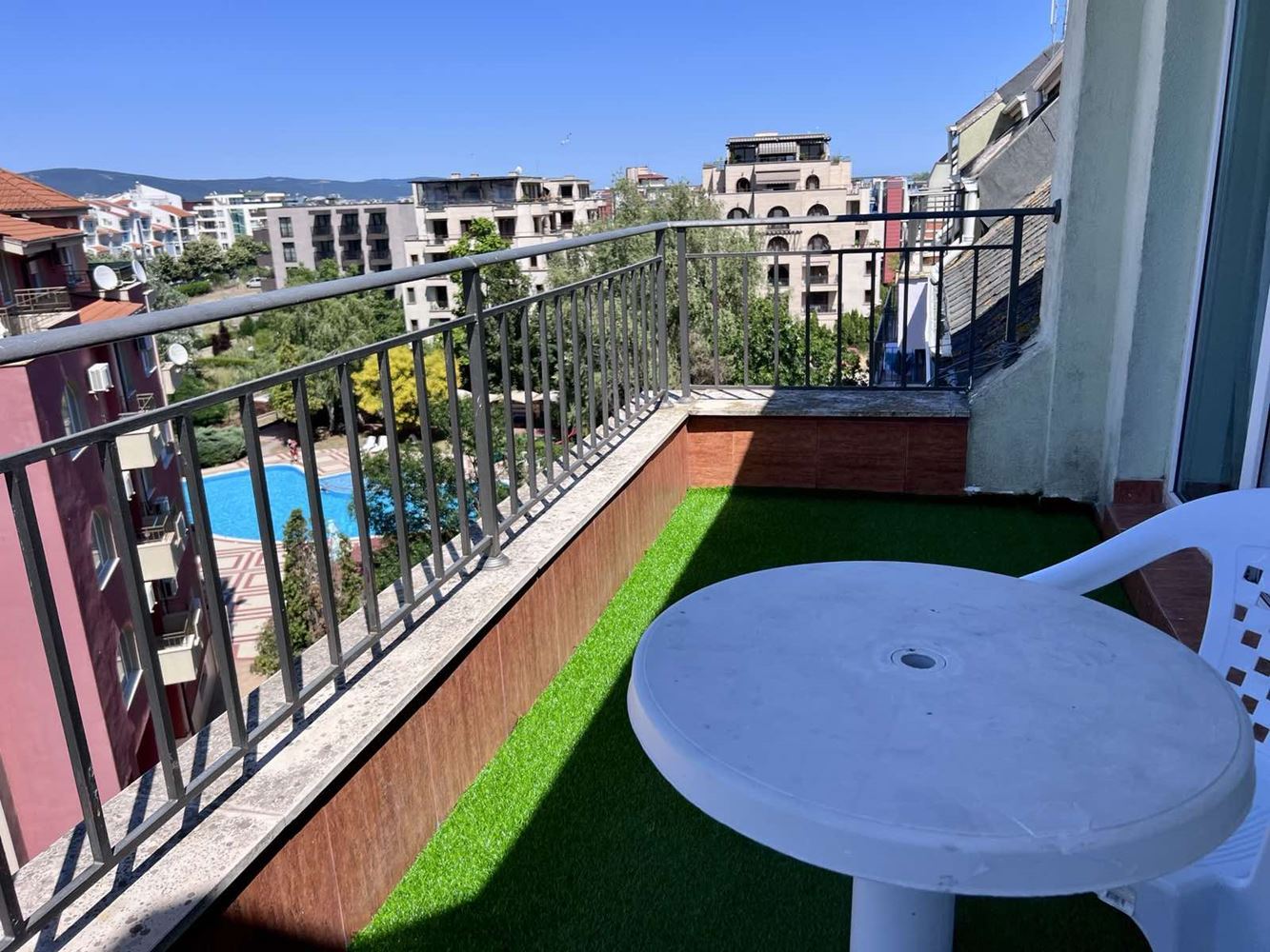 We present you an excellent opportunity for investment or for your own holiday home on the Bulgarian Black Sea coast! This cozy one bedroom apartment with a total area of 45 m² is located in the heart of the popular resort complex Sunny Beach. The apartment has one cosy bedroom, a bright living room with a functional separate kitchen and one bathroom. There is also a balcony from which you can enjoy a wonderful view of the pool - the perfect place for your morning coffee or evening relaxation.