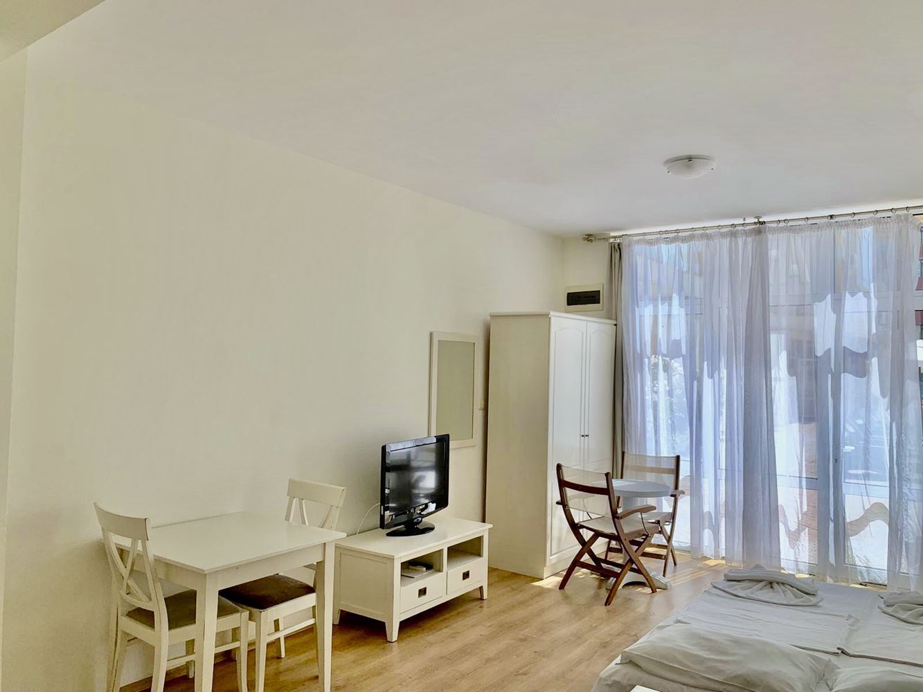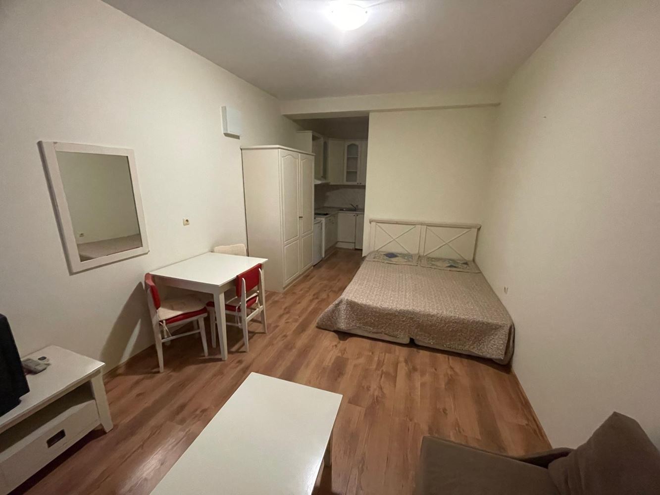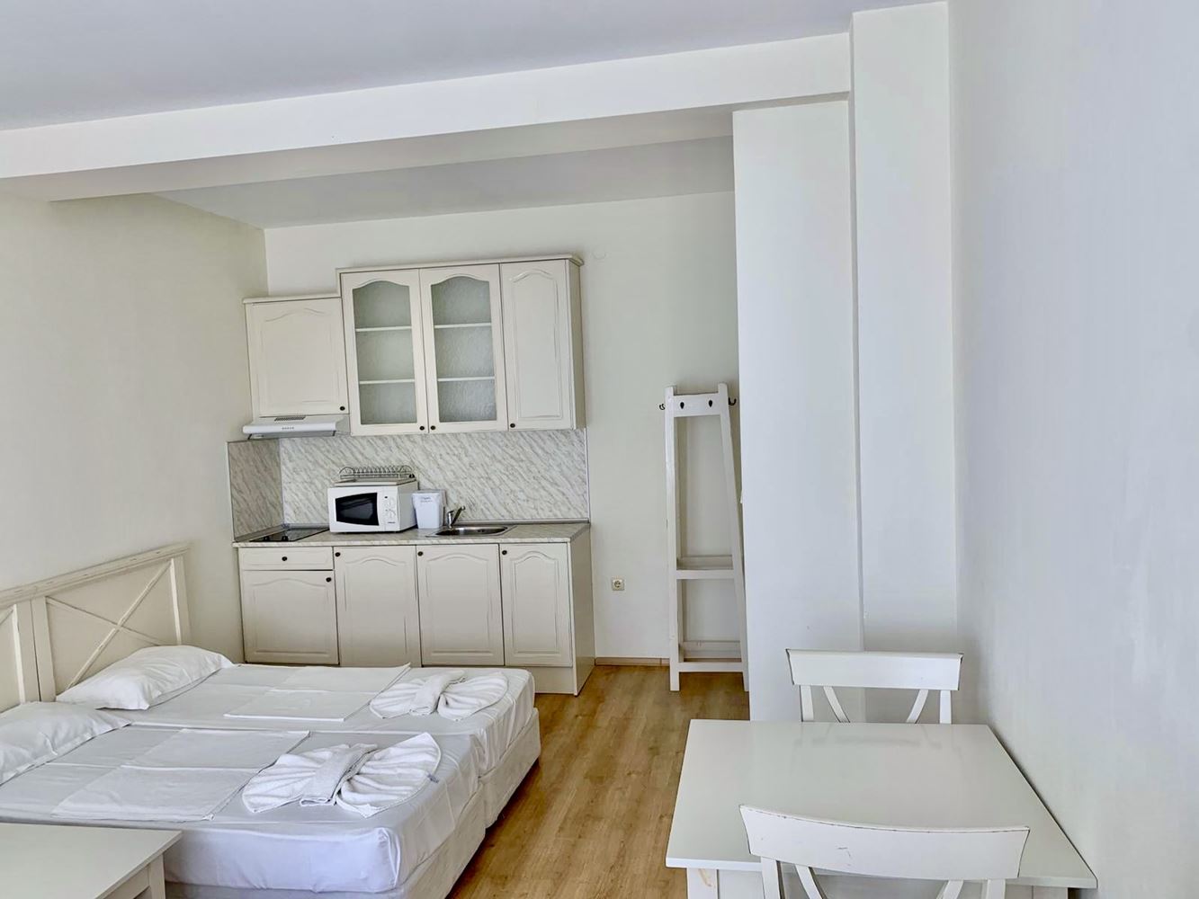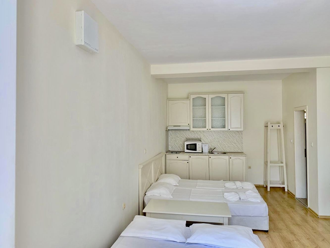 Spacious stylishly furnished studio located in a complex in the center of Sunny Beach. The apartment is on the ground floor and has an area of 52 m2. It consists of an entrance hall, a spacious living room combined with a kitchenette and a bedroom, a bathroom with toilet and a veranda with access to the yard and the pool. The apartment is fully furnished and ready to move in.