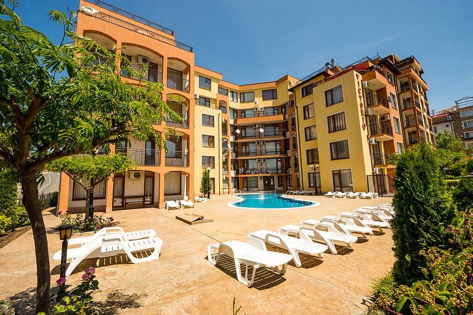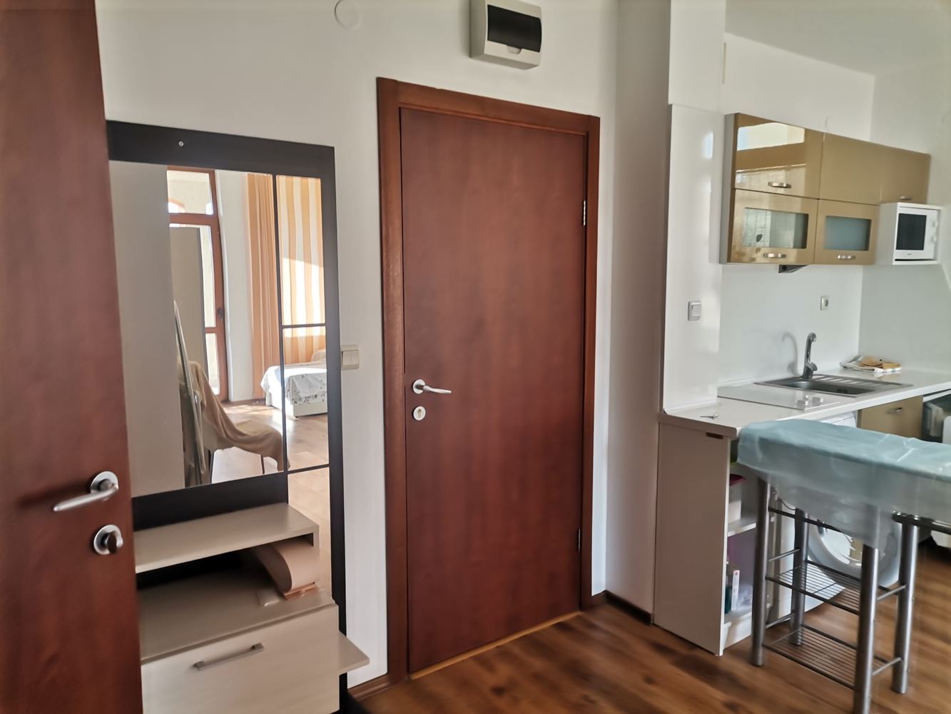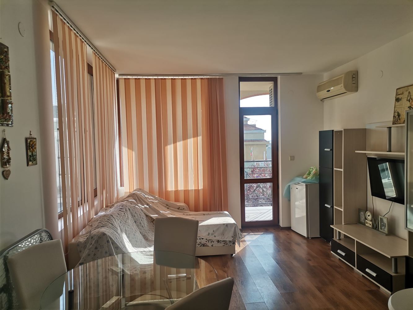 Cozy modern one-bedroom flat in a new residential complex, located in the centre of St. Vlas, 200 m from the beach and close to the yacht marina. The area is very well-developed and all necessary amenities are within walking distance, including shops, restaurants, bars, market, supermarket, shopping centre, discos, casino, cafes, cinema, sports club, hairdresser and other services. The flat of 54m2 with sea view is located on the third floor and it is offered with quality equipment and furniture. The modern building of this complex is built in a sophisticated architectural style. The infrastructure of the complex includes reception, landscaped garden, outdoor swimming pool, restaurant and bar, parking and much more.