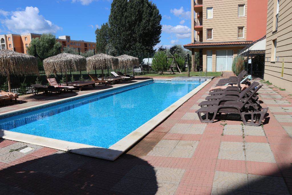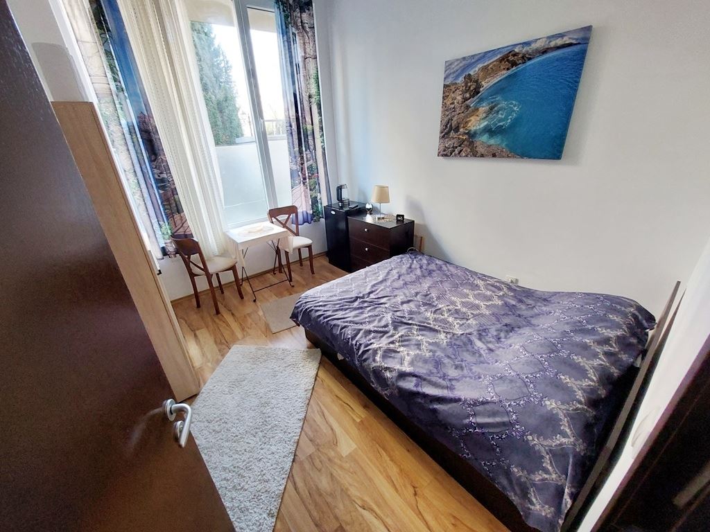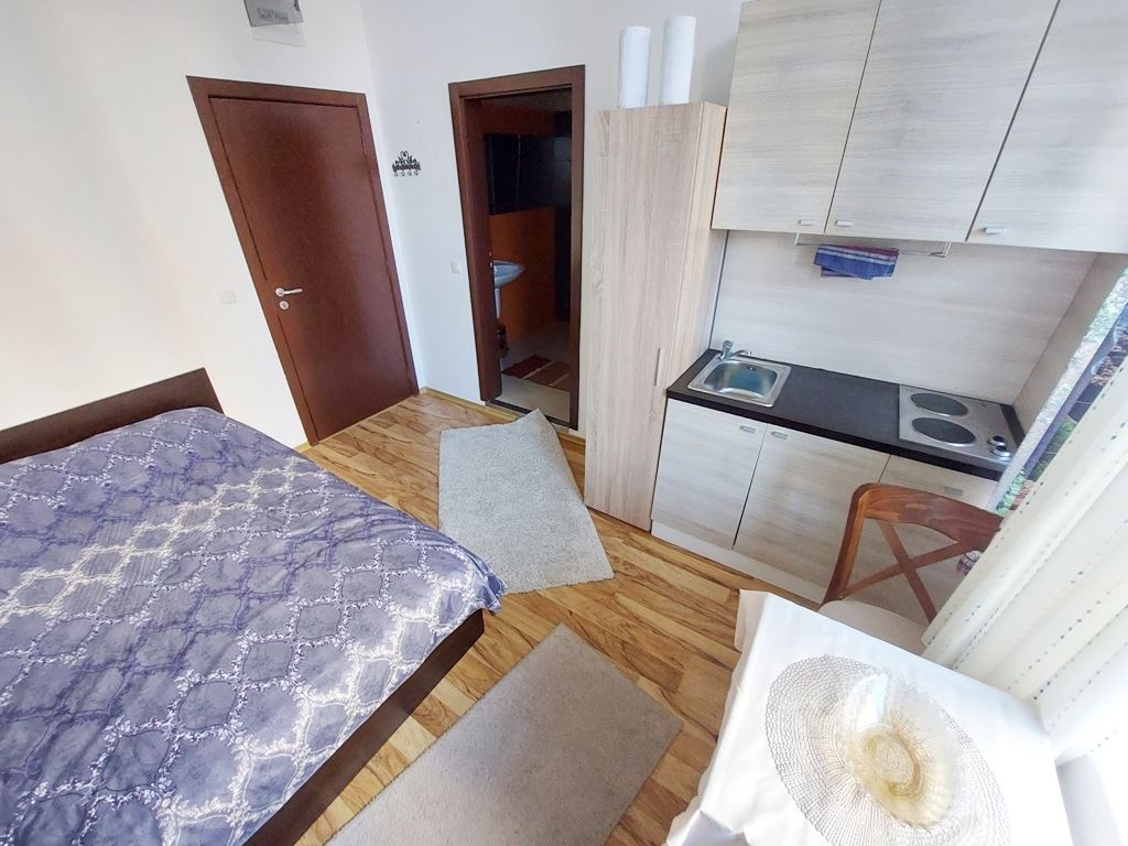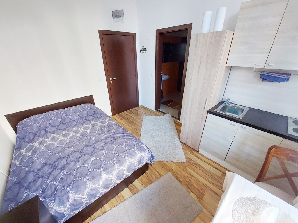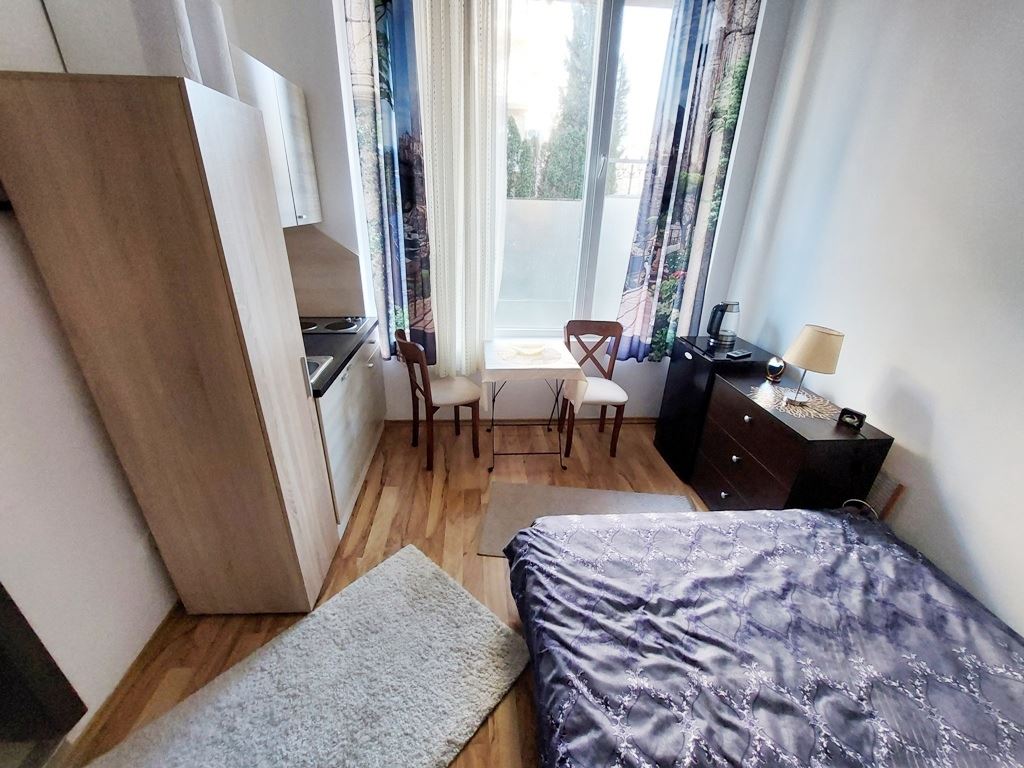 Nice little cosy studio in an amazing complex in the centre of Sunny Beach. The flat has an area of 22 m2, is located on the high ground floor and is sold fully equipped with everything you need. The residents of the complex have at their disposal the following entertainments and facilities: swimming pool, children pool, restaurant, beauty salon, pool bar, solarium, fitness centre, jacuzzi, heated swimming pool, mini-cafe, ample parking for cars, permanent security, video monitoring and maintenance. With only 150 flats, this luxurious complex is not only comfortable for holidaymakers but also for year-round living.