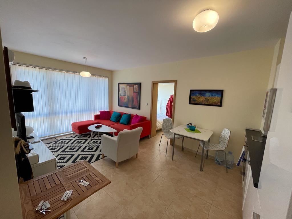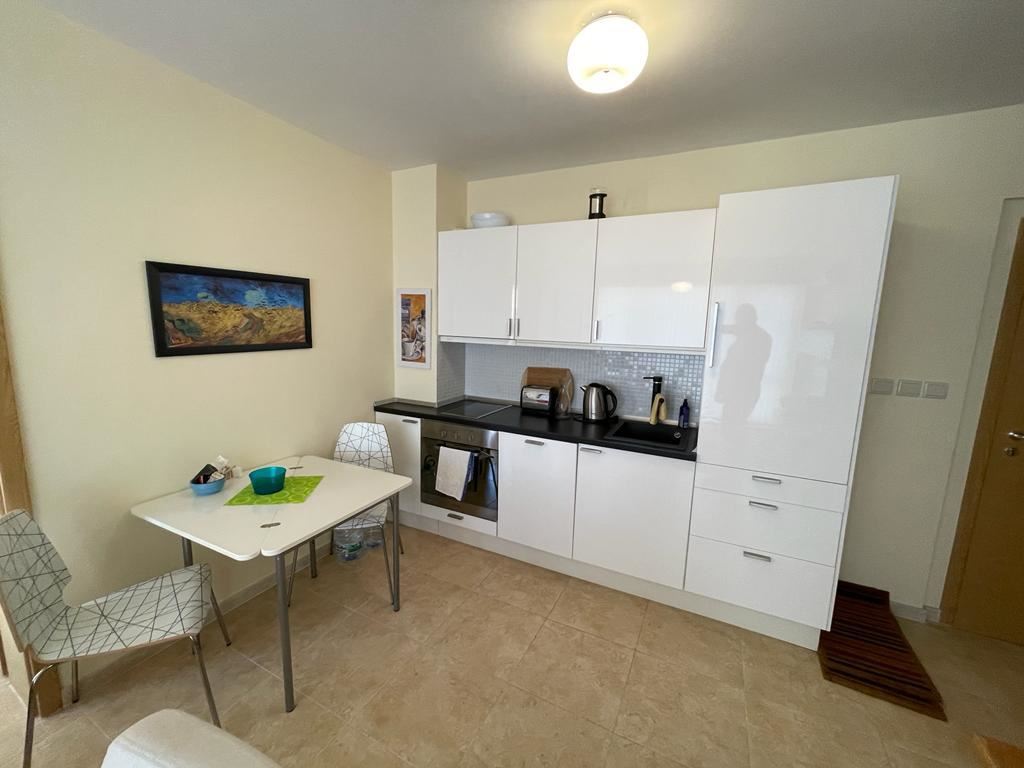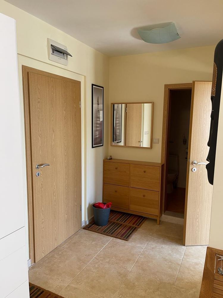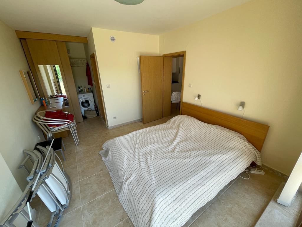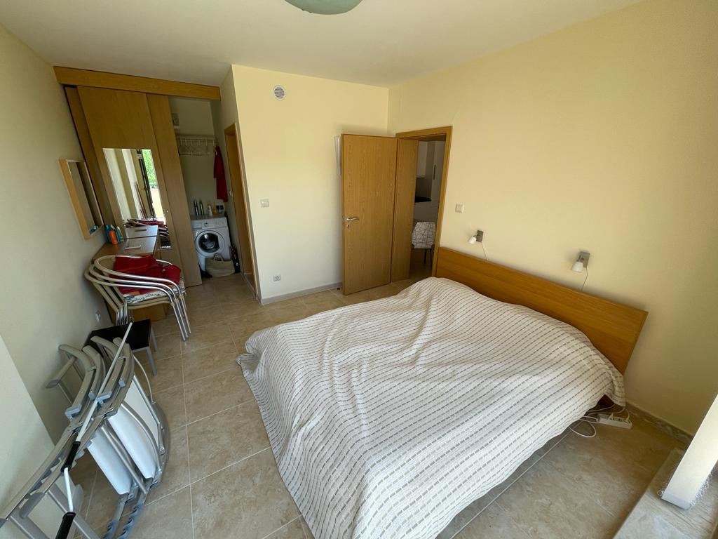 Cozy two-bedroom apartment, designed for year-round residence, in a residential complex which is located in one of the green areas, just 300 meters from the beach, the most famous resort in Sunny Beach and a short walk from the town of Nessebar - old town, listed as a UNESCO world cultural heritage. The flat is in perfect condition, its area is 103 m2, located on the sixth floor. The flat is fully furnished and equipped with air conditioning, refrigerator, cooker, etc. The complex is unique because it combines the luxury of a 4-star hotel near the turquoise sea and golden beach, with the quietness and privacy. Tucked away in a green area adjacent to the river and the sea, the complex with its swimming pool and wonderful views over the park is within walking distance to any of the tourist attractions of Sunny Beach. It is a complex with a bowling centre.
