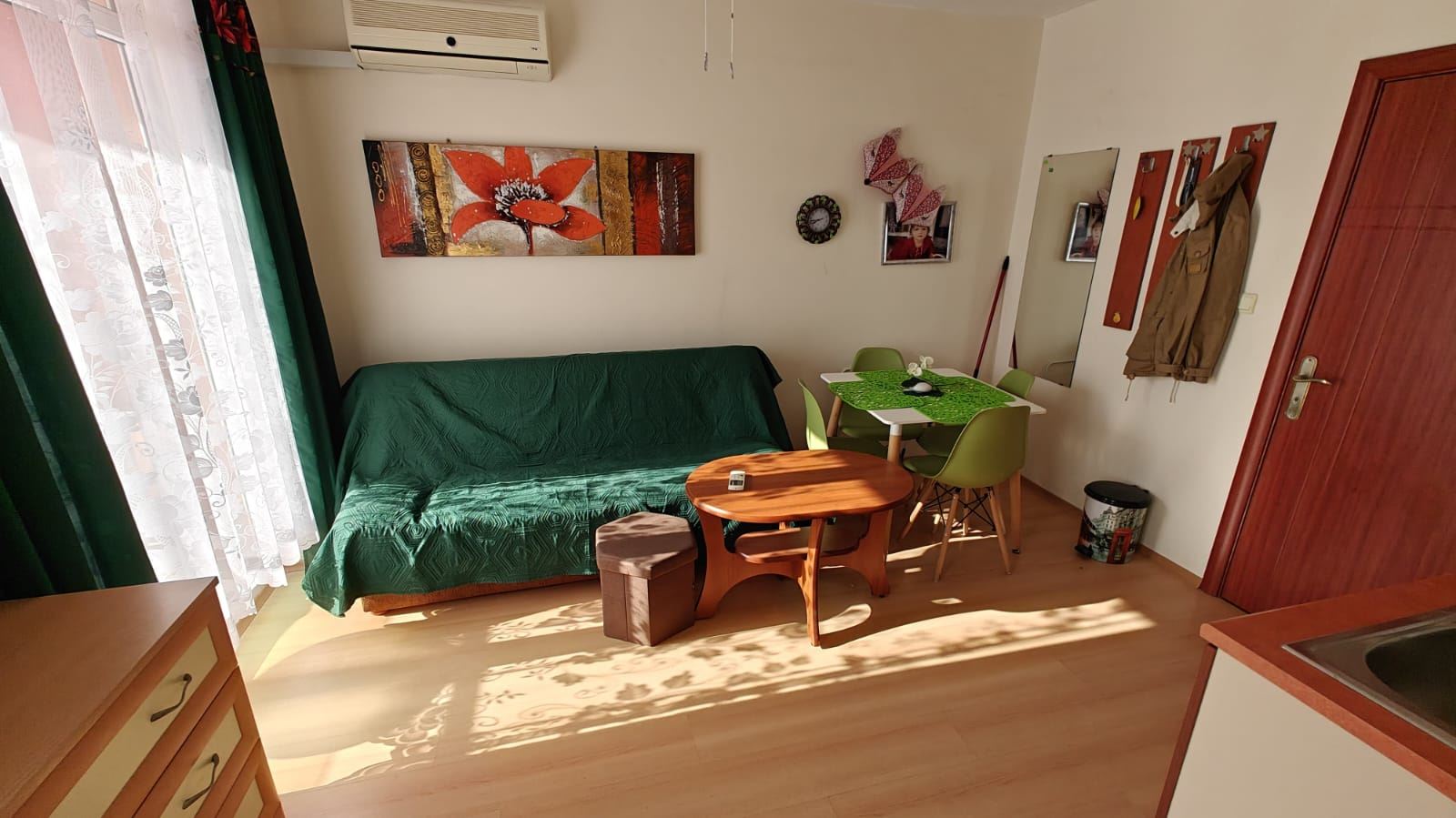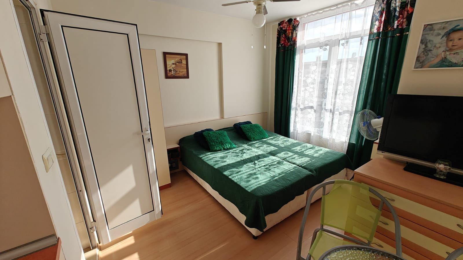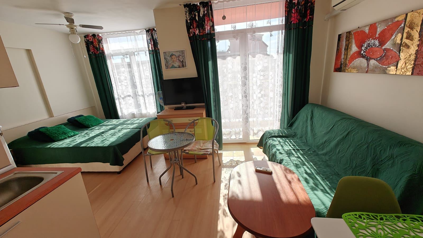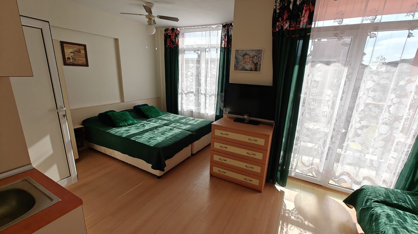 For sale is a cozy apartment in the resort. A cozy apartment for sale in Sunny Beach, with the possibility of conversion into a one-bedroom apartment. This is the perfect place for a holiday and investment in one of the most preferred resorts on the Bulgarian Black Sea coast. The apartment has a total area of 38 m2 and offers a functional layout. It consists of a spacious room that can be transformed into a living area with kitchenette and a separate bedroom. It has a private balcony, ideal for a morning coffee overlooking the surroundings, and a bathroom with all necessary amenities. The apartment is located in a building with an elevator, providing easy access and comfort.