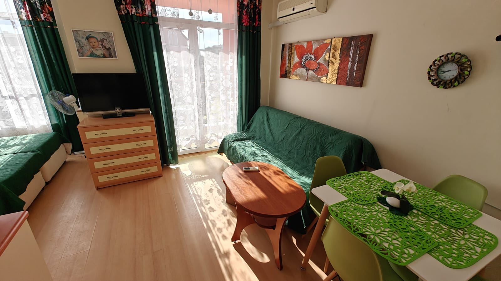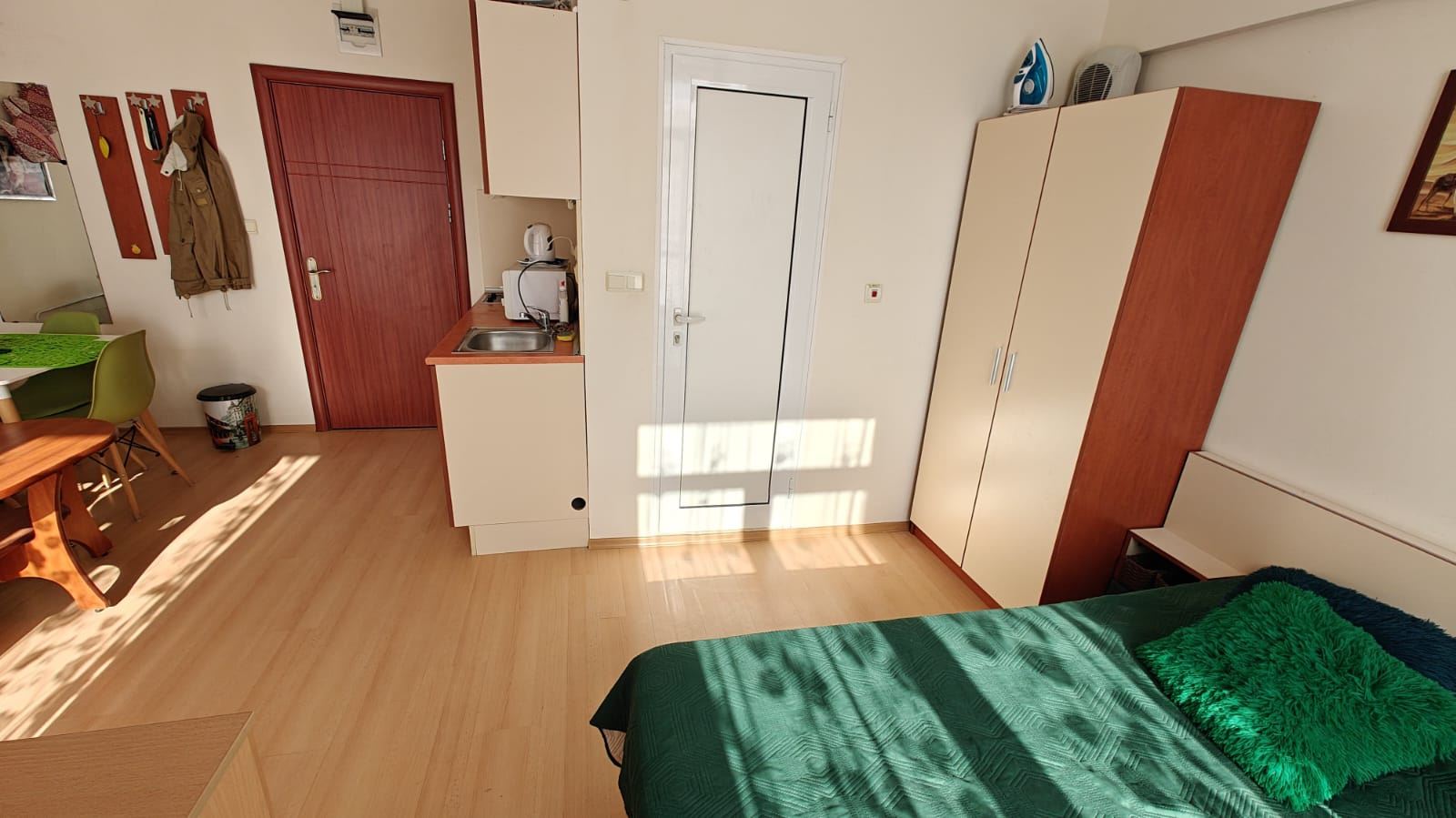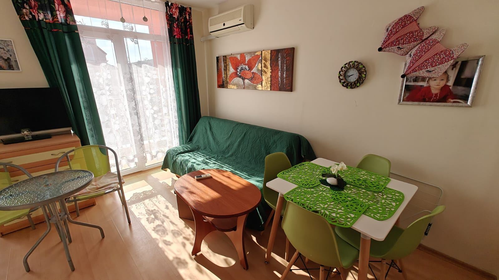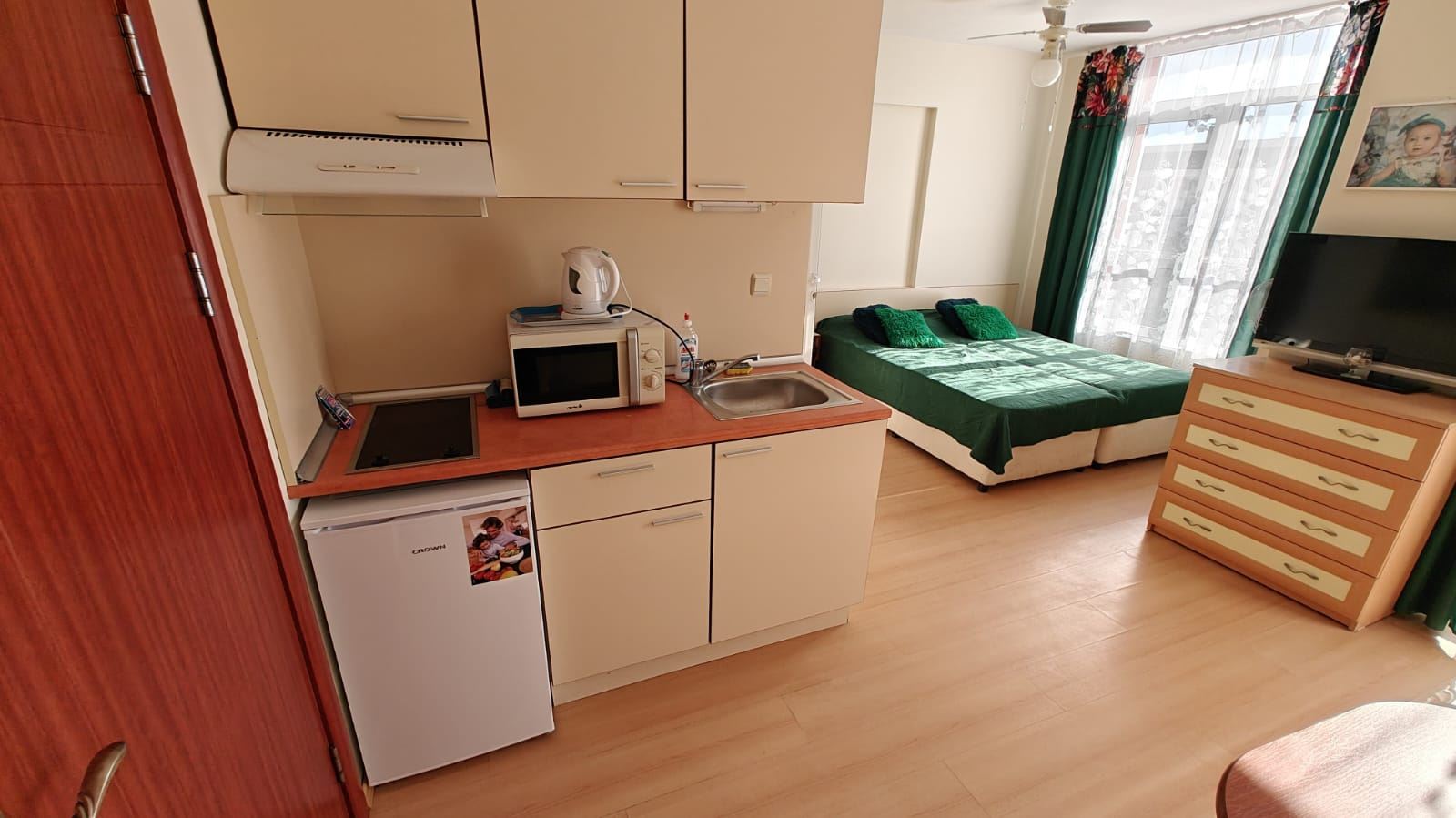 For sale is a cozy apartment in the resort. A cozy apartment for sale in Sunny Beach, with the possibility of conversion into a one-bedroom apartment. This is the perfect place for a holiday and investment in one of the most preferred resorts on the Bulgarian Black Sea coast. The apartment has a total area of 38 m2 and offers a functional layout. It consists of a spacious room that can be transformed into a living area with kitchenette and a separate bedroom. It has a private balcony, ideal for a morning coffee overlooking the surroundings, and a bathroom with all necessary amenities. The apartment is located in a building with an elevator, providing easy access and comfort.