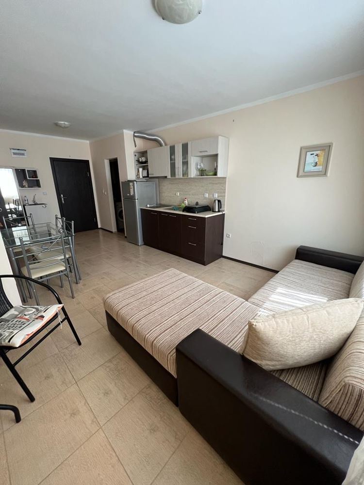 We present you a cozy apartment in a beautiful complex at the foot of the mountains, with stunning views and extensive infrastructure. The apartment has an area of 65 square meters and includes a spacious living room with kitchenette, bedroom, bathroom and terrace with impressive views of the pool, mountains and surrounding nature. The apartment is offered fully furnished including fitted kitchen, furniture and equipped bathroom. This provides convenience and comfort for the residents. The complex is built on an elevated position, providing a magnificent view to the sea and Sunny Beach. Around the complex there are green hills, the beginning of the Stara Planina mountain range, where you can enjoy amazing views of the surrounding area and the reserve. There is a bus route to the beaches of Sunny Beach and the town of Nessebar. In the immediate vicinity of the complex there is a bus stop for public transportation, as well as a pharmacy, a playground and a church. Residents are provided with amenities including a café, restaurant and grocery store.