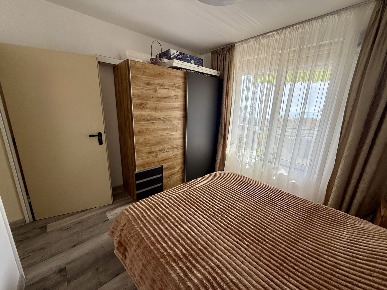 The apartment is furnished with attention to detail, creating a cozy and functional atmosphere. The living space includes a living room with a kitchenette, a bedroom, a bathroom with toilet, and a terrace with barbecue and a small yard, providing the opportunity for outdoor relaxation and family gatherings. The southern exposure guarantees an optimal amount of sunlight throughout the day, creating a warm and inviting ambiance.