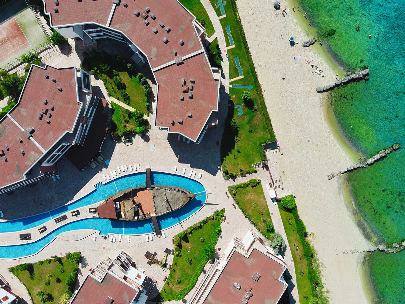 The beachfront complex offers numerous amenities for its residents, including swimming pools for adults and children, playgrounds, a restaurant, parking, and year-round security. It is an ideal place for a peaceful family holiday with children, where everyone will find activities to enjoy, while parents can relax and admire the beautiful nature and welcoming atmosphere.
