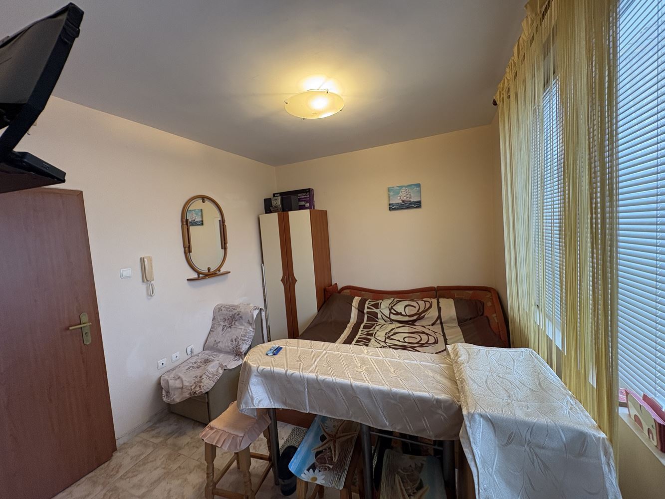 The layout is practical: one main room with access to a balcony, a bathroom with toilet, and comfortable zones for organizing a living and sleeping area. The apartment is sold furnished and is ready for immediate occupancy – an excellent choice for both personal use and rental purposes, either seasonally or year-round. The location is a strong advantage: within walking distance to the beach, the central part of Pomorie, shops, pharmacies, and healthcare services. The second-floor position and the elevator provide convenience for all types of buyers.