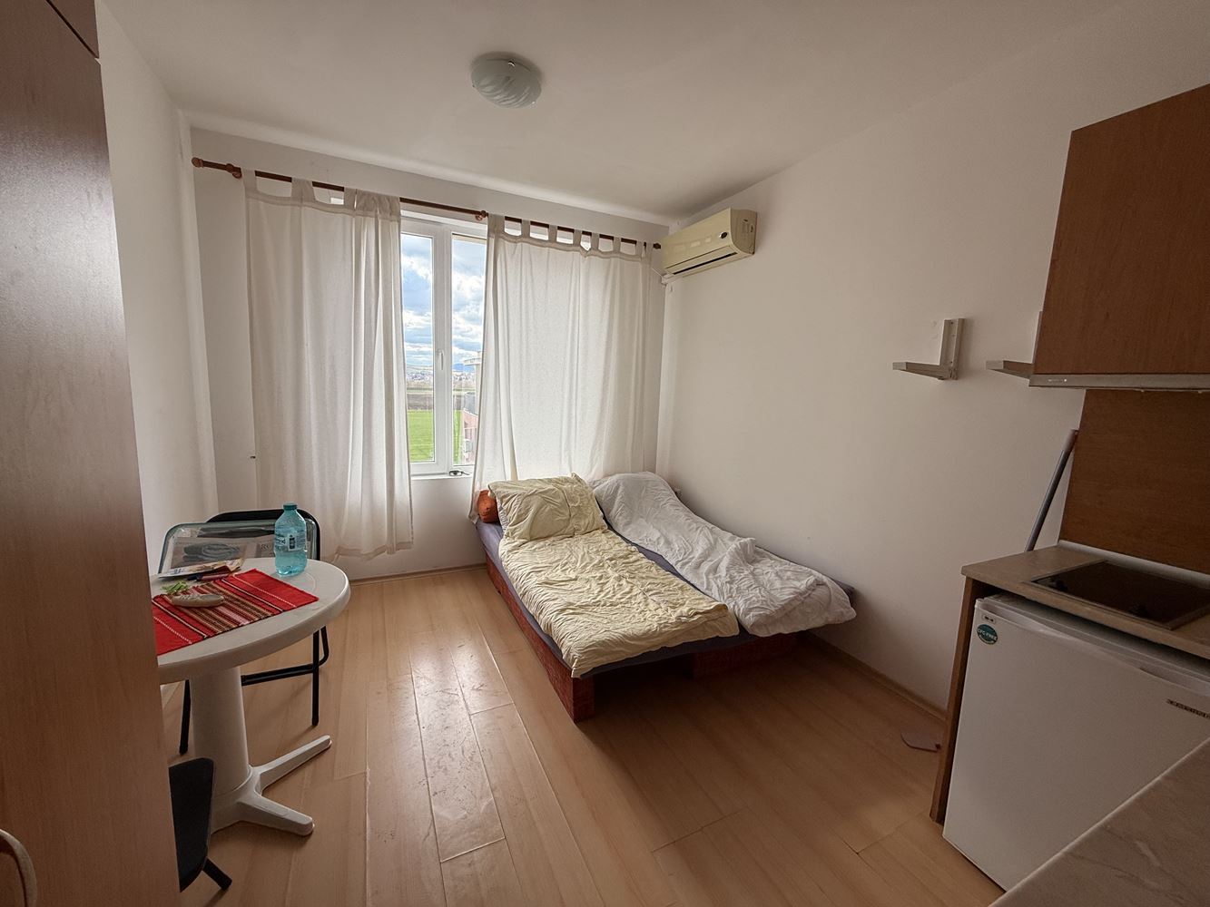 We present to you a compact, bright, and functional studio with a total area of 23.32 m², located on the third top floor of a quiet complex, just a 5-minute drive from Sunny Beach. The property combines tranquility and comfort, while being only minutes from the beach, restaurants, and all entertainment of the most popular seaside resort. The studio is ready for immediate use, making it ideal for vacations, year-round living, or rental investment. The space is optimized for maximum comfort, with a functional living area and a convenient bathroom. The top-floor location provides more light, privacy, and a pleasant sense of space.