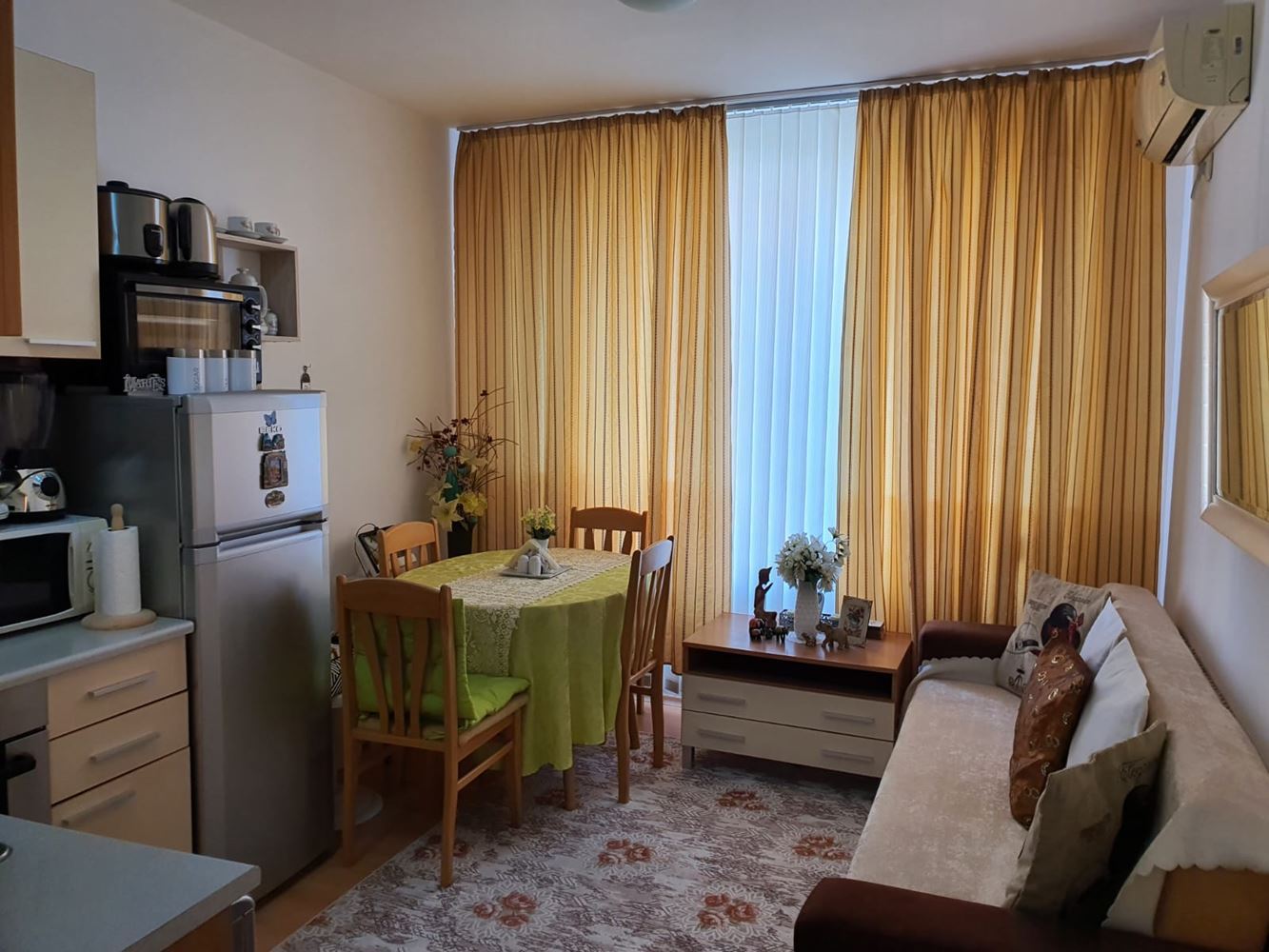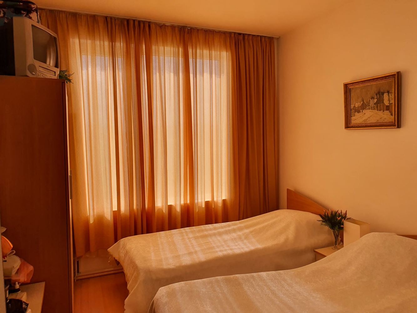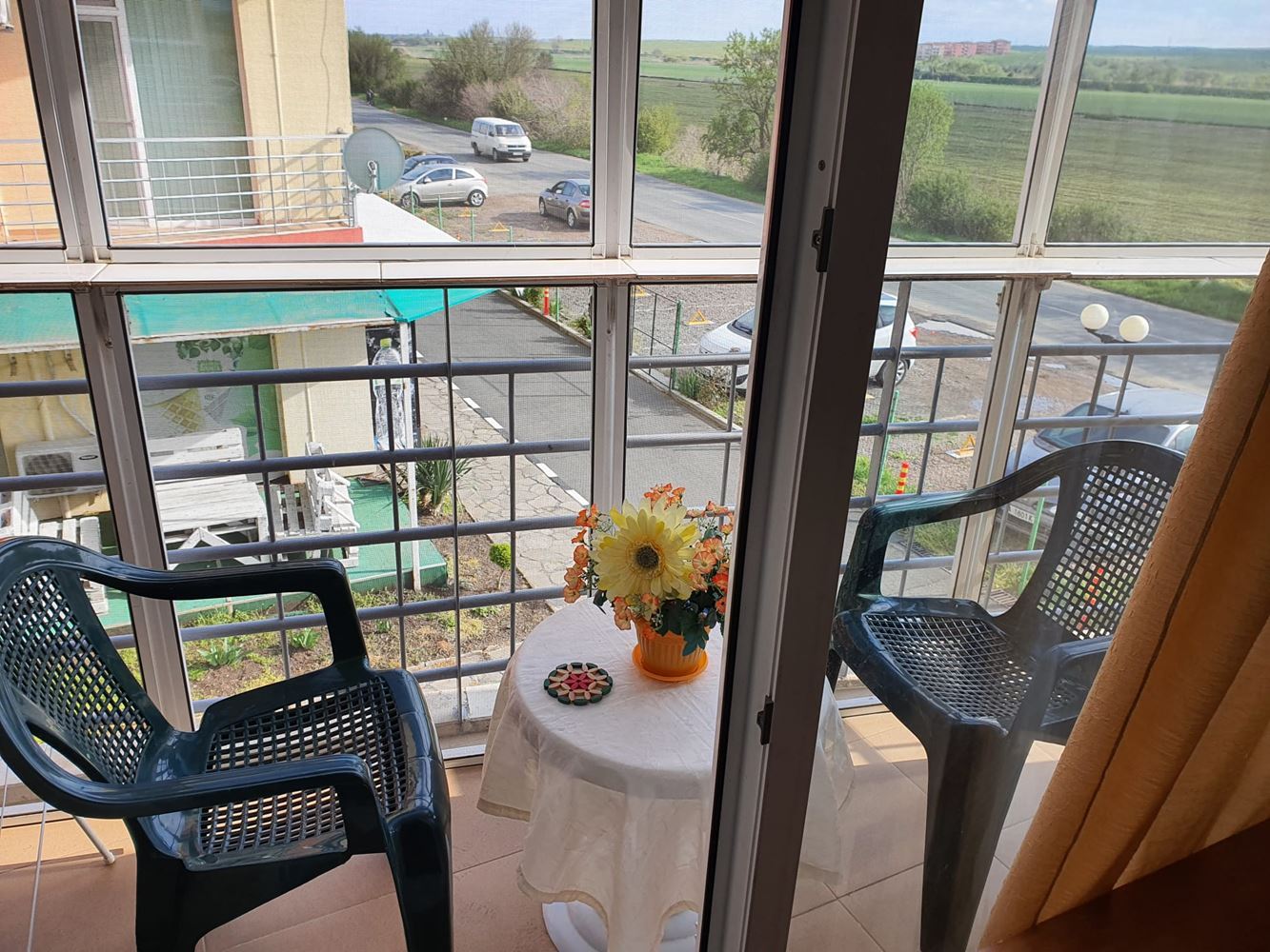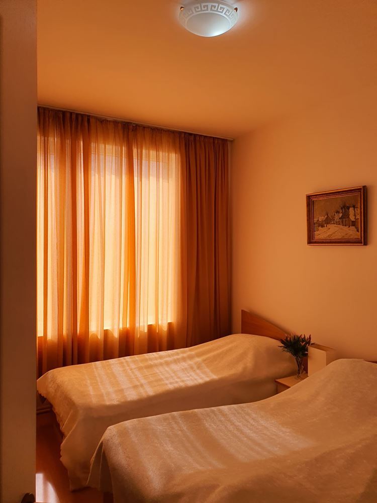 The complex has a swimming pool and children's playground, providing facilities for recreation and entertainment. There is a cafe and shop within the complex which adds to the convenience of the residents. The complex provides round the clock physical and electronic security, which creates a safe living environment. The apartment has a unique location overlooking the nature and the resort of Sunny Beach. This provides beautiful landscapes and an atmosphere of tranquility.