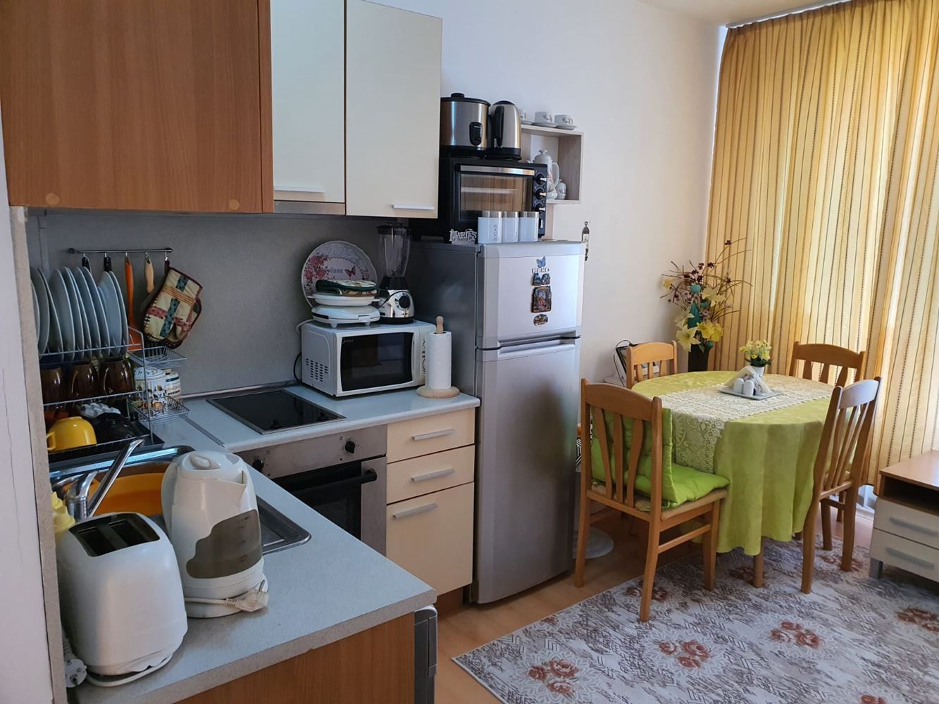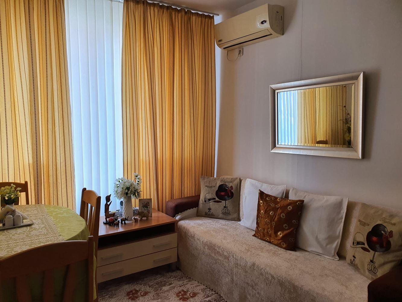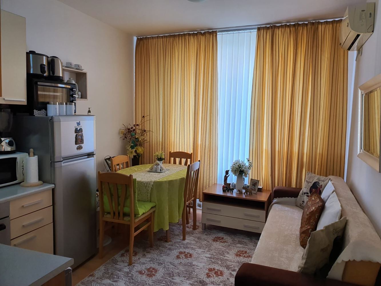 The complex has a swimming pool and children's playground, providing facilities for recreation and entertainment. There is a cafe and shop within the complex which adds to the convenience of the residents. The complex provides round the clock physical and electronic security, which creates a safe living environment. The apartment has a unique location overlooking the nature and the resort of Sunny Beach. This provides beautiful landscapes and an atmosphere of tranquility.