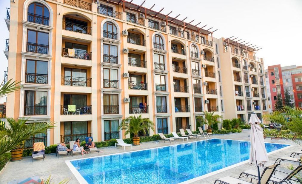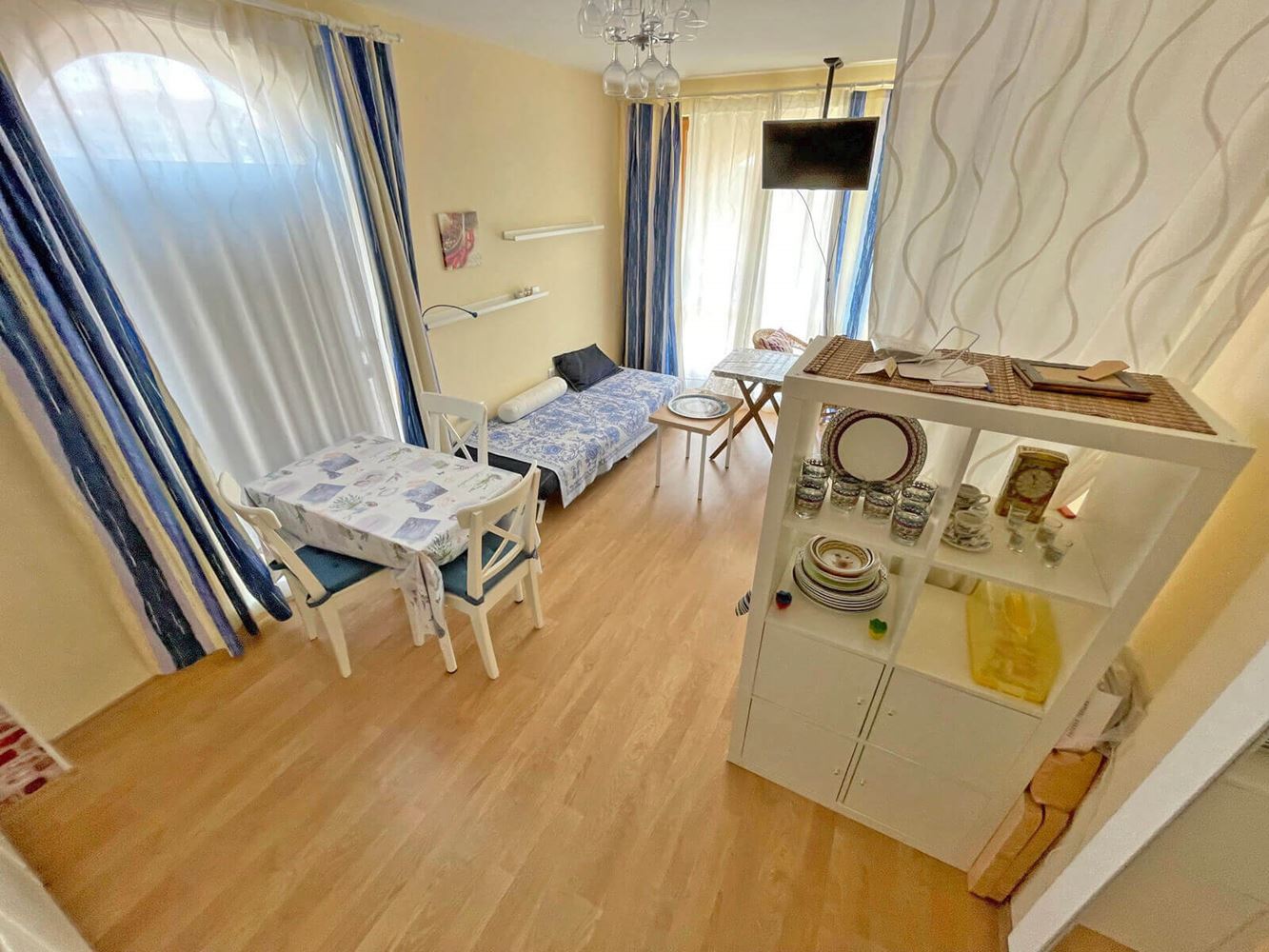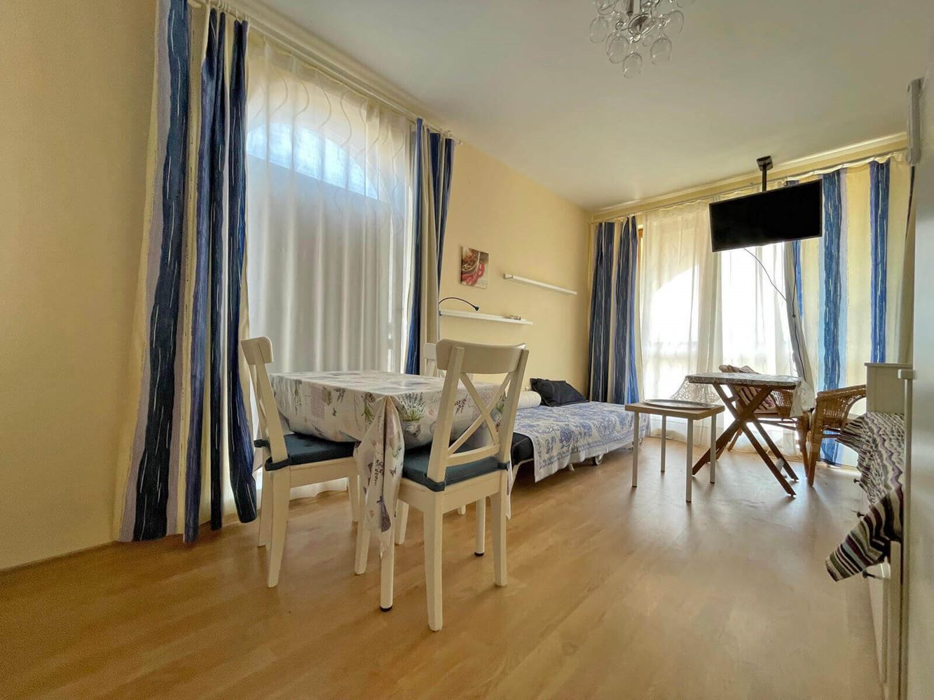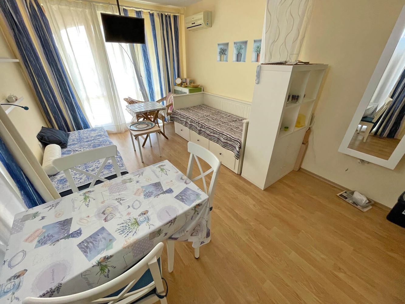 Delightful studio with sea view in excellent condition in the resort of Elenite. Perfect for a family holiday or investment. Elenite is one of the most prestigious and greenest resorts, which is located 7 km from Sunny Beach. The combination of mountains and sea will not leave anyone indifferent. The complex is built in a classic Mediterranean style. The following services are offered: swimming pool, WI-FI, playground, shops and supermarket, parking and security, exchange office. The flat of 37 m2 is located on the fifth floor and is sold stylishly furnished and equipped. It consists of an entrance hall, living room with kitchen area and sleeping area, bathroom with WC and balcony with sea and mountain views.