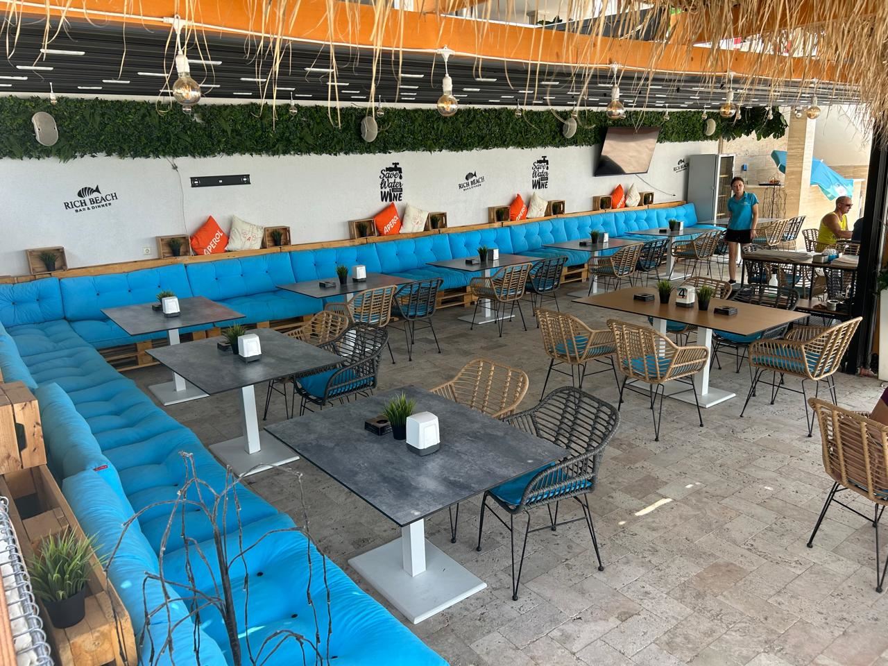 The complex offers a variety of amenities that will make your stay unforgettable. There is an equipped beach with sun loungers where you can relax and enjoy the sunshine. The playground offers a safe and fun place for your children to play. For food and social enthusiasts, there is a restaurant, cafes and bars offering a variety of delicacies and drinks.