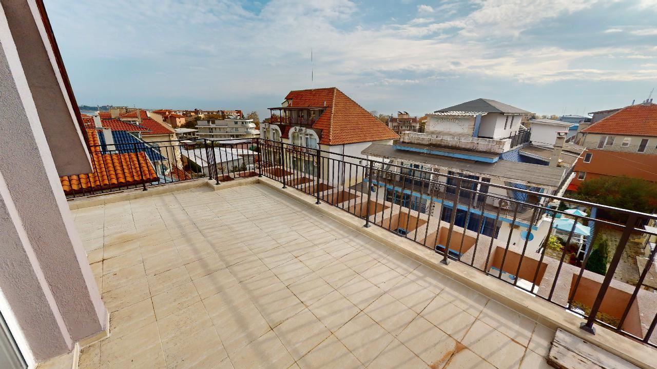 An attractive two bedroom maisonette apartament in a residential building in Ravda promises luxurious and comfortable living with beautiful sea views. This high quality house is ideal for all year round living, providing a high standard of living. The maisonette, located on the fourth floor, provides a total area of 149 square metres divided into two levels. On the first level there is a spacious living room, creating a cosy space for relaxing and socialising. Also on this level is a bathroom, providing added convenience for residents and guests. On the second level there are two cosy bedrooms, a bathroom and an impressive terrace with mesmerising sea views. This huge terrace is the perfect place for a morning coffee or an evening relaxing under the stars. The apartament is offered partially furnished, giving the new owners the opportunity to add their own style and preferences to the interior according to their wishes. The overall construction quality of the house guarantees long-term stability and reliability, while the location of the maisonette overlooking the sea gives it a special charm. This maisonette apartament is a unique opportunity to enjoy a high level of comfort and the beauty of the seascape directly from your home.
