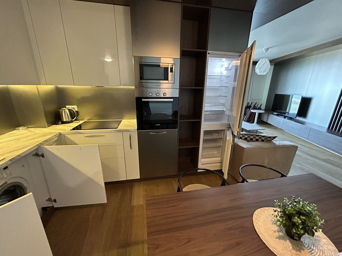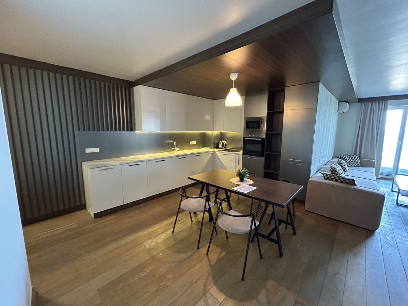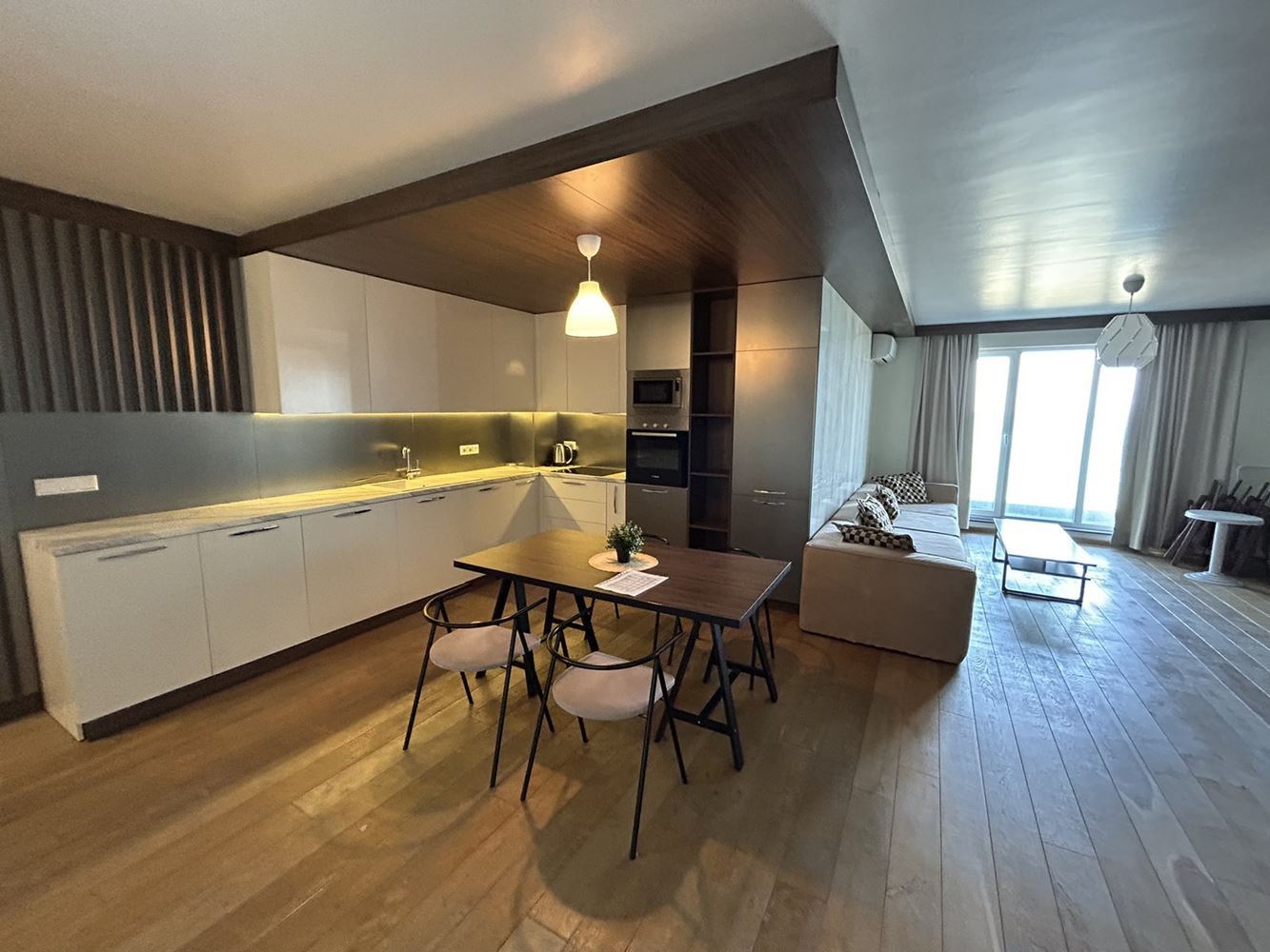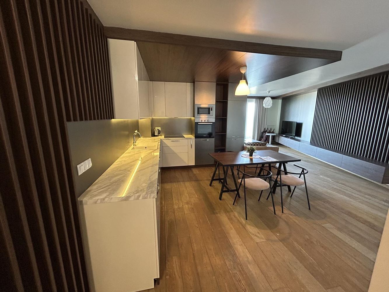 Elegant and modern two-bedroom apartment with sea view in a front line residential building, suitable for permanent residence in the town of Pomorie. The apartment is located on the second floor of a six-storey house. Its area is 90 m2. It consists of a spacious kitchen-living room, bedroom, bathroom unit and a large balcony with beautiful sea view. The apartment is offered fully furnished with stylish modern furniture and equipped bathroom unit. The house is already commissioned, located 30 meters away from the sea. In walking distance to all urban amenities, grocery supermarket, market, bus station, bars, restaurants and all kinds of entertainment. Year-round accommodation, a spa town with balneology and mud baths. Burgas airport is about 7 km away. Comfortable bus service every 30 minutes to Burgas and nearby resorts.