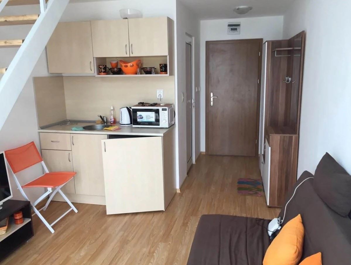 We present an exceptional maisonette with a total area of 40 sq.m, located in the heart of Sunny Beach – the ideal choice for those seeking a combination of luxury, coziness, and functionality. The property is designed on two levels, with a spacious and bright room cleverly combining living and sleeping areas, creating a space that is both practical and pleasant to live in. The balcony offers the opportunity for relaxation in the fresh air, enjoying the picturesque surroundings of the complex, adding a sense of freedom and comfort.