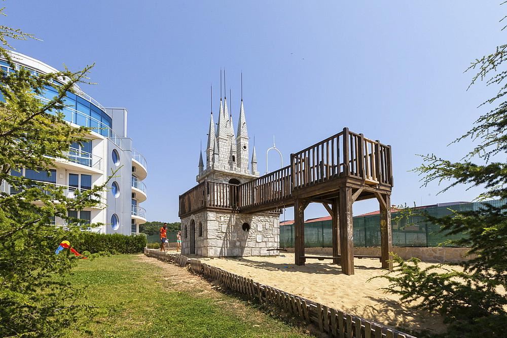 The complex impresses with its exceptionally rich and well-developed infrastructure, designed to meet all the needs of its residents. Available are two outdoor swimming pools, offering ideal conditions for cooling off and relaxation during the summer months, as well as a luxurious spa center, including an indoor swimming pool, sauna, and fully equipped fitness center – a perfect solution for relaxation and maintaining an active lifestyle throughout the year. For additional convenience, the complex features elegant restaurants and cozy cafés, where you can enjoy a pleasant atmosphere and quality service without leaving the premises. Families with children will appreciate the children’s playgrounds and designated relaxation areas, creating a safe and pleasant environment for play and rest.