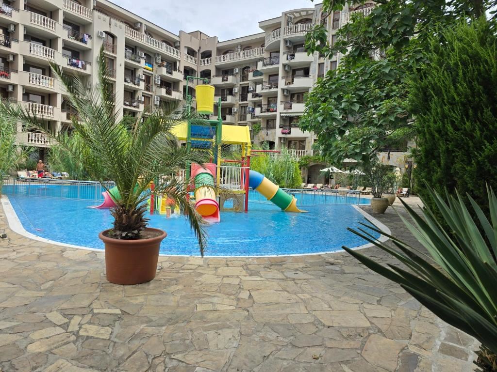 For lovers of an active lifestyle and entertainment, the complex offers two mini aqua parks for children and adults, as well as three fitness centers, one of which is outdoors and allows training among greenery and fresh air. Available to owners and guests are also a SPA center and sauna, a beauty salon, as well as three restaurants with international cuisine, complementing the feeling of a complete holiday without the need to leave the complex. Additional convenience is provided by two bars, a supermarket with a wide range of products, and a private vegetable garden for growing and selling fresh, high-quality produce. A particular advantage and a true rarity for the area is the only 50-meter swimming pool in Sunny Beach, equipped with a special water filtration system, making it extremely suitable for both sports swimming and relaxation with maximum comfort and hygiene.