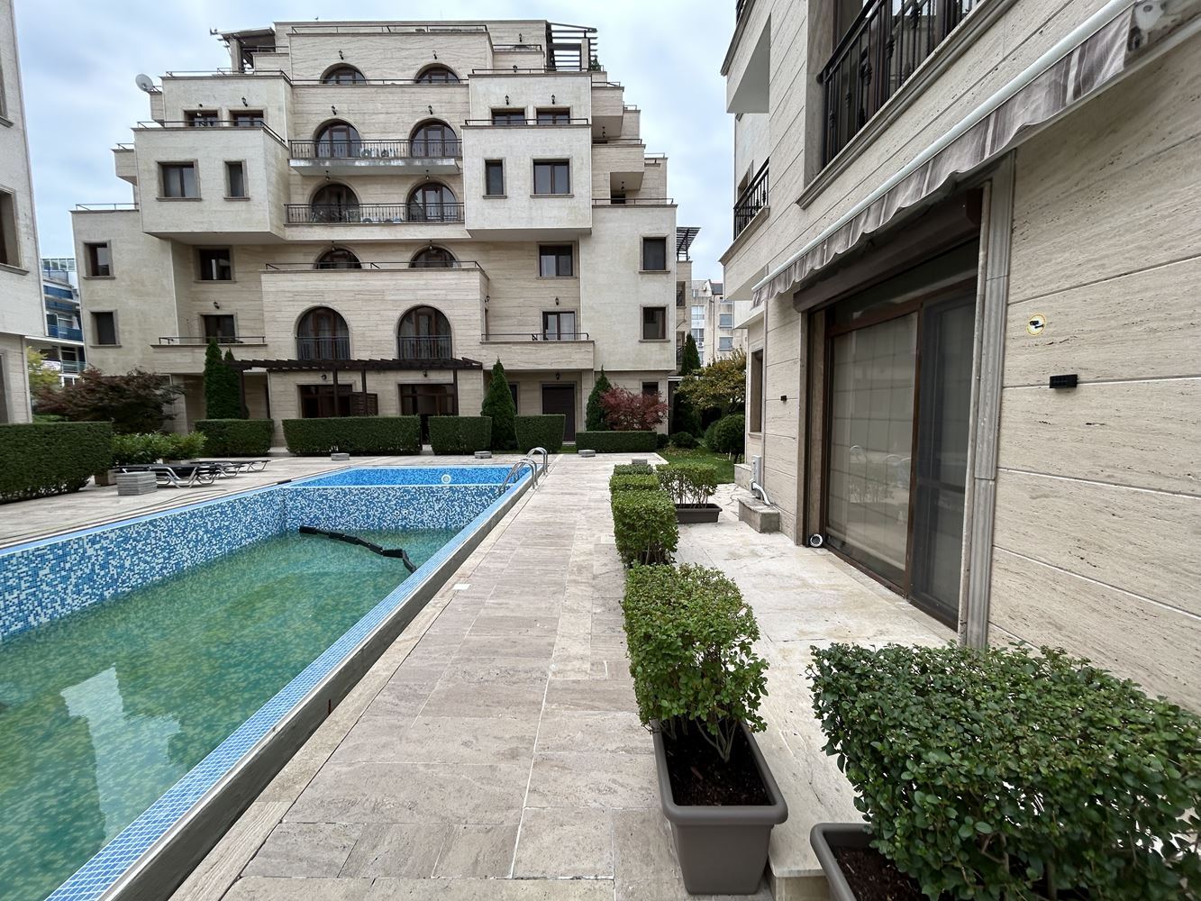 We offer for sale a stylish studio in a luxury complex, located in the very heart of the Sunny Beach resort, combining a prestigious location, comfort, and tranquility. The property has a total area of 47,26 м² and is situated on the ground floor, featuring direct access to the swimming pool – a highly sought-after advantage that creates the feeling of a true resort lifestyle.