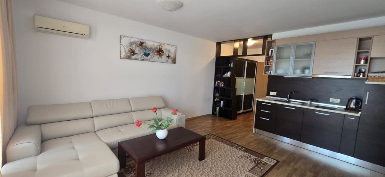 A spacious studio with a total area of 47.61 m² offers the perfect combination of comfort and style. It consists of a cozy living room with a modern kitchenette and a bathroom. The apartment has a balcony with a pool view, which provides a wonderful opportunity for outdoor relaxation. The residential building is newly built and equipped with an elevator, which provides easy and convenient access to all floors. The studio is fully furnished and ready for immediate occupancy.