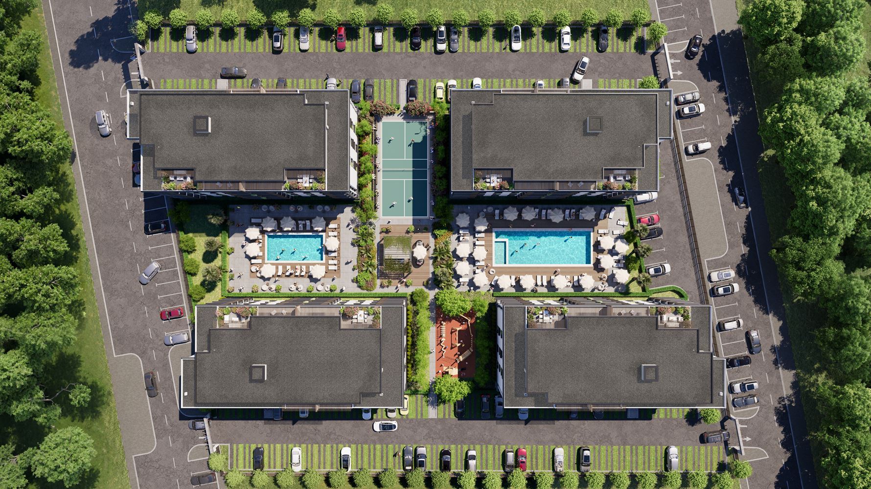 The complex is designed with comfort and a full-quality lifestyle in mind. Residents will have access to a green area, two swimming pools, a children’s playground, a relaxation zone, as well as a pickleball and badminton court, making it suitable for both families with children and active people. Parking is provided, with the option to purchase outdoor parking spaces, as well as 24-hour security, ensuring peace and safety.