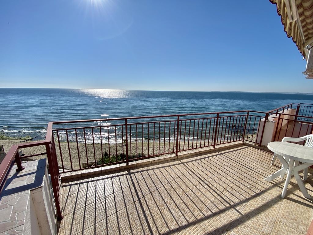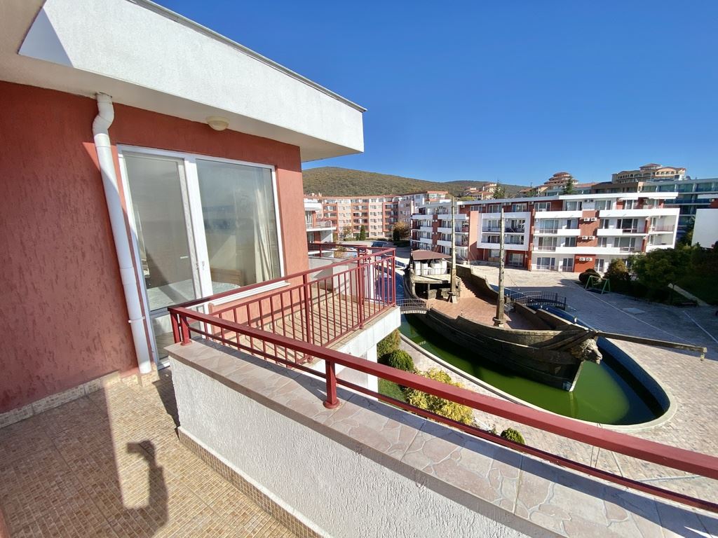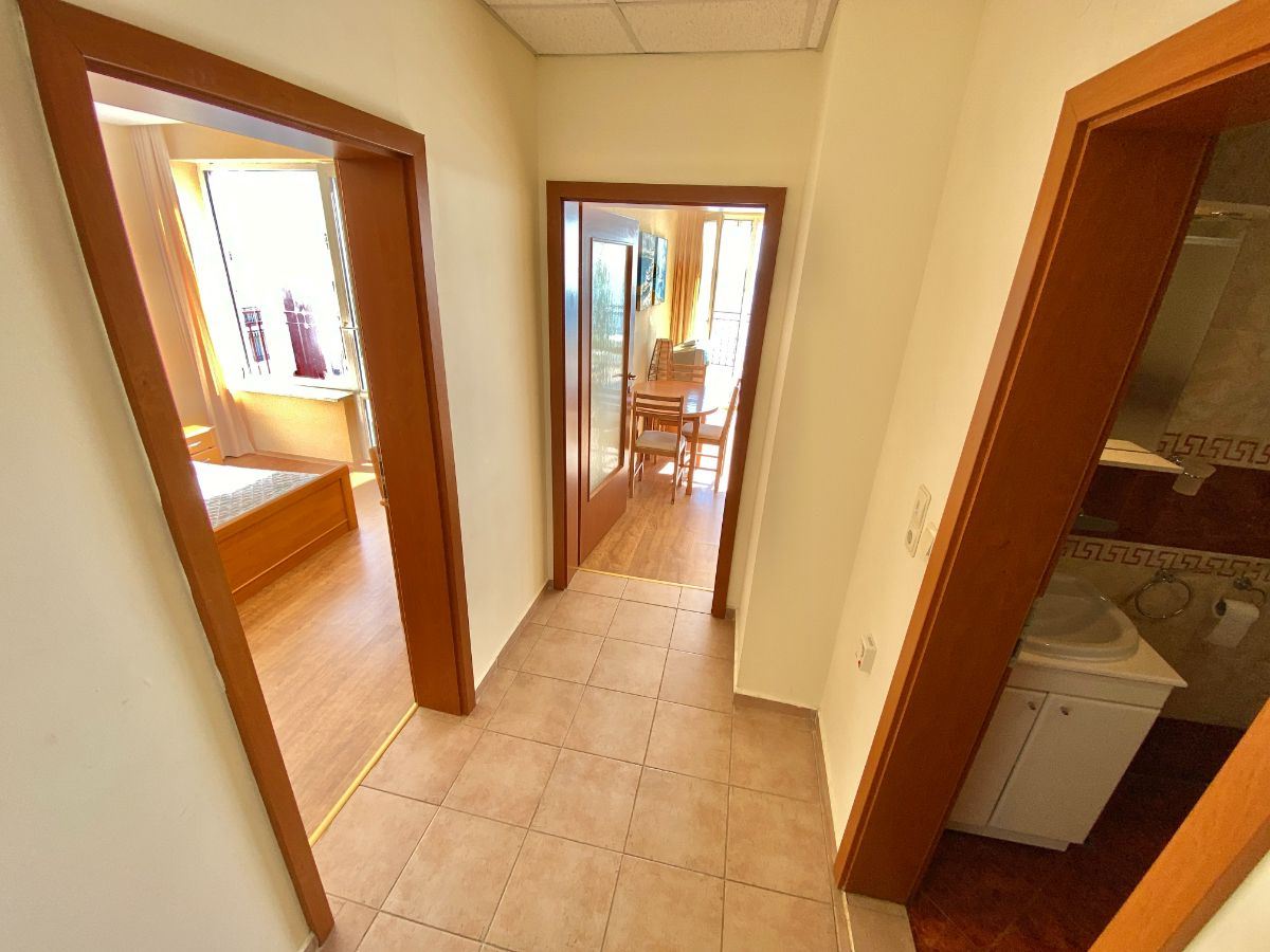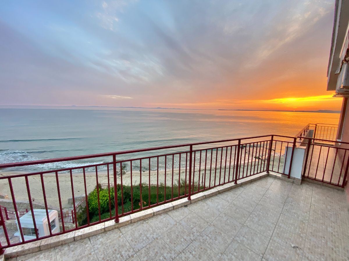 We are pleased to present a one-bedroom apartment with an incredible sea view, located in a beachfront complex in Elenite. The apartment is situated on the fourth floor (without an elevator) with a total area of 73 m² (living area – 69 m²). It consists of an entrance hall, a living room with a kitchenette, a bedroom, a combined bathroom, and a large terrace running along the entire perimeter of the apartment. The property has a southeast exposure. From the windows of the bedroom and living room, as well as from the terrace, you can enjoy breathtaking views of the sea and the bay of Sunny Beach. Each room is equipped with air conditioning. The apartment is sold fully furnished and with household appliances.