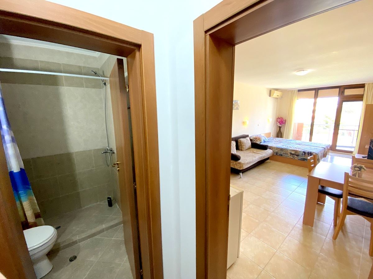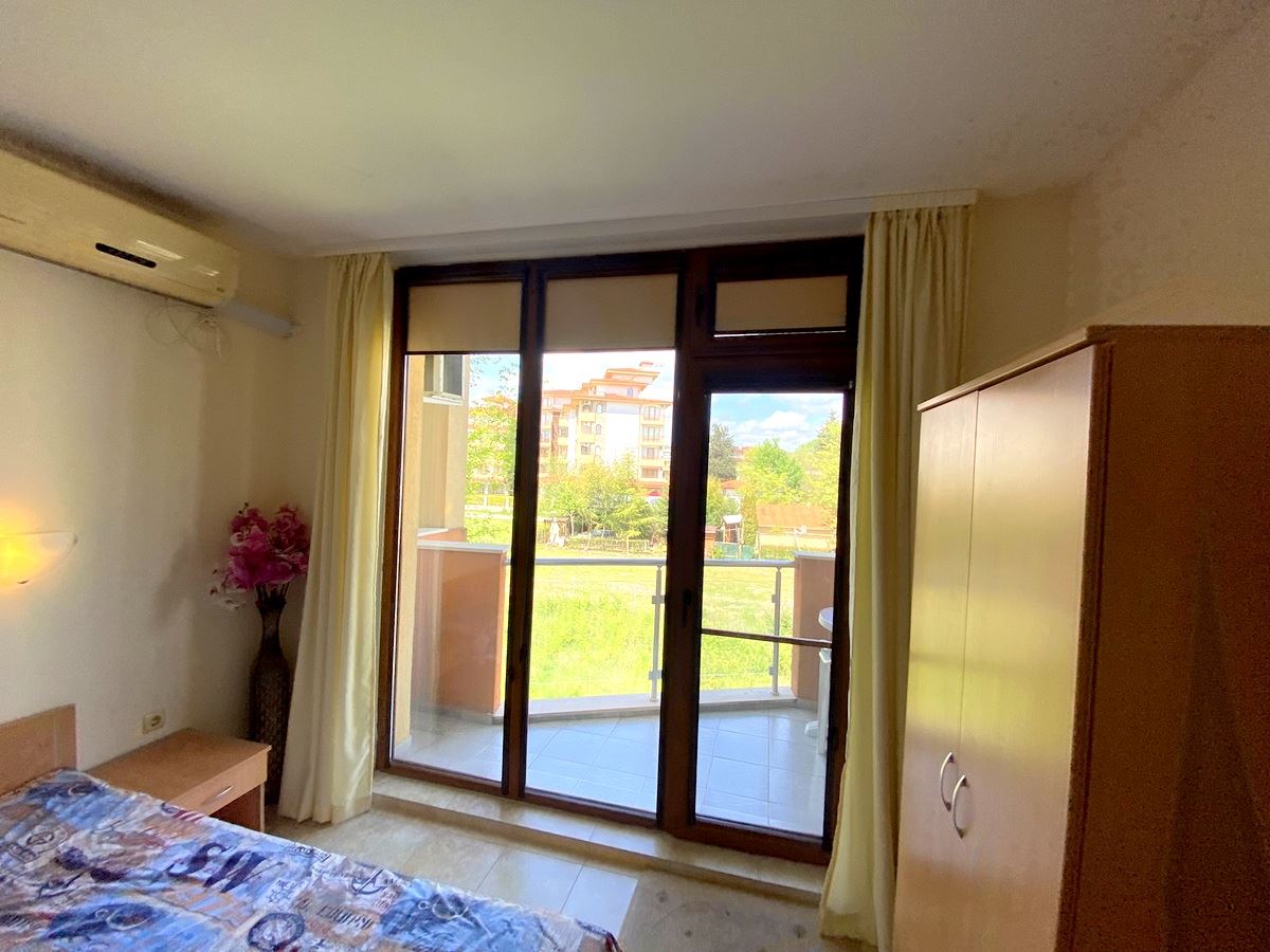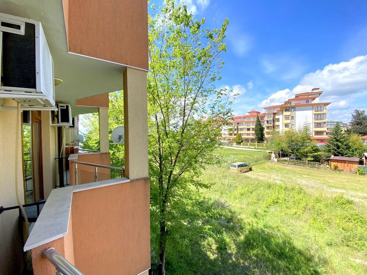 Spacious studio in a beachfront development. The five-storey building has modern architecture and a unique design. The flats are finished with high quality finishes, thermal and waterproofed walls, which allows for year-round living. There is a wide range of amenities and entertainment for residents: landscaped garden, outdoor swimming pool with lounge area, with sun loungers and umbrellas, children's playground, shops with convenience goods, ample parking for cars, constant security, video surveillance and maintenance. The flat is offered furnished and equipped and has a size of 42 m2. It is located on the third floor.