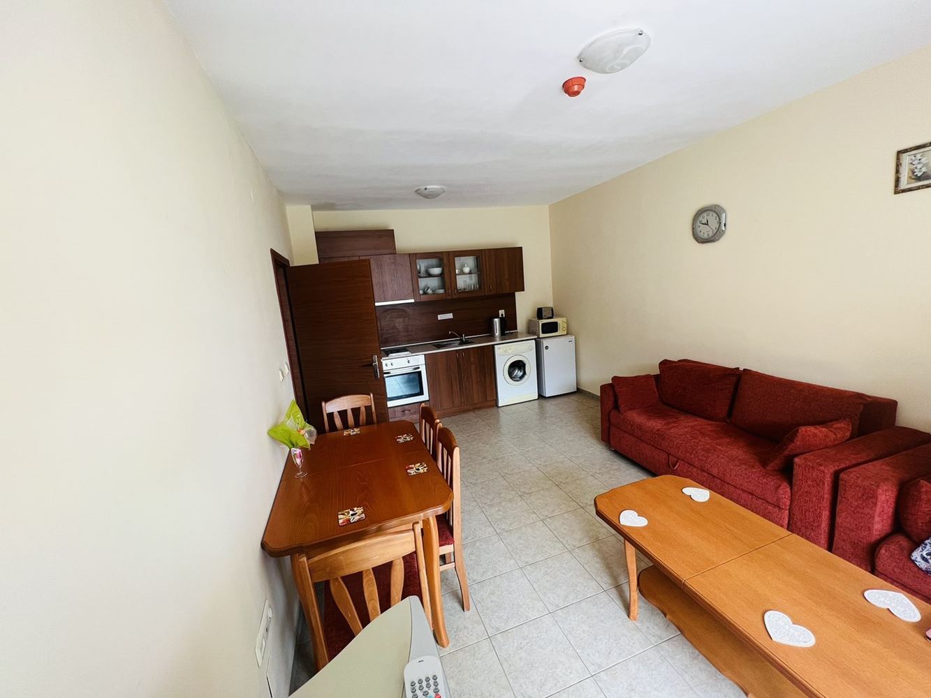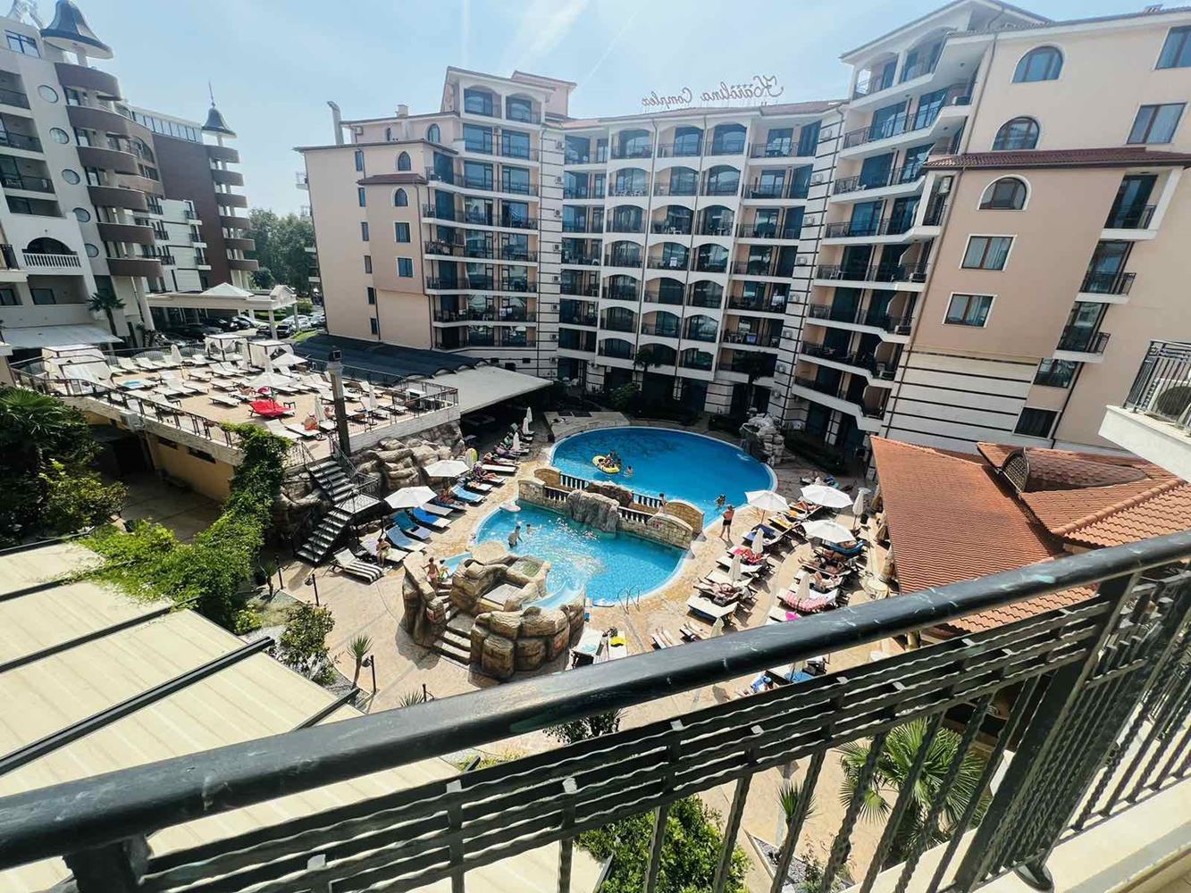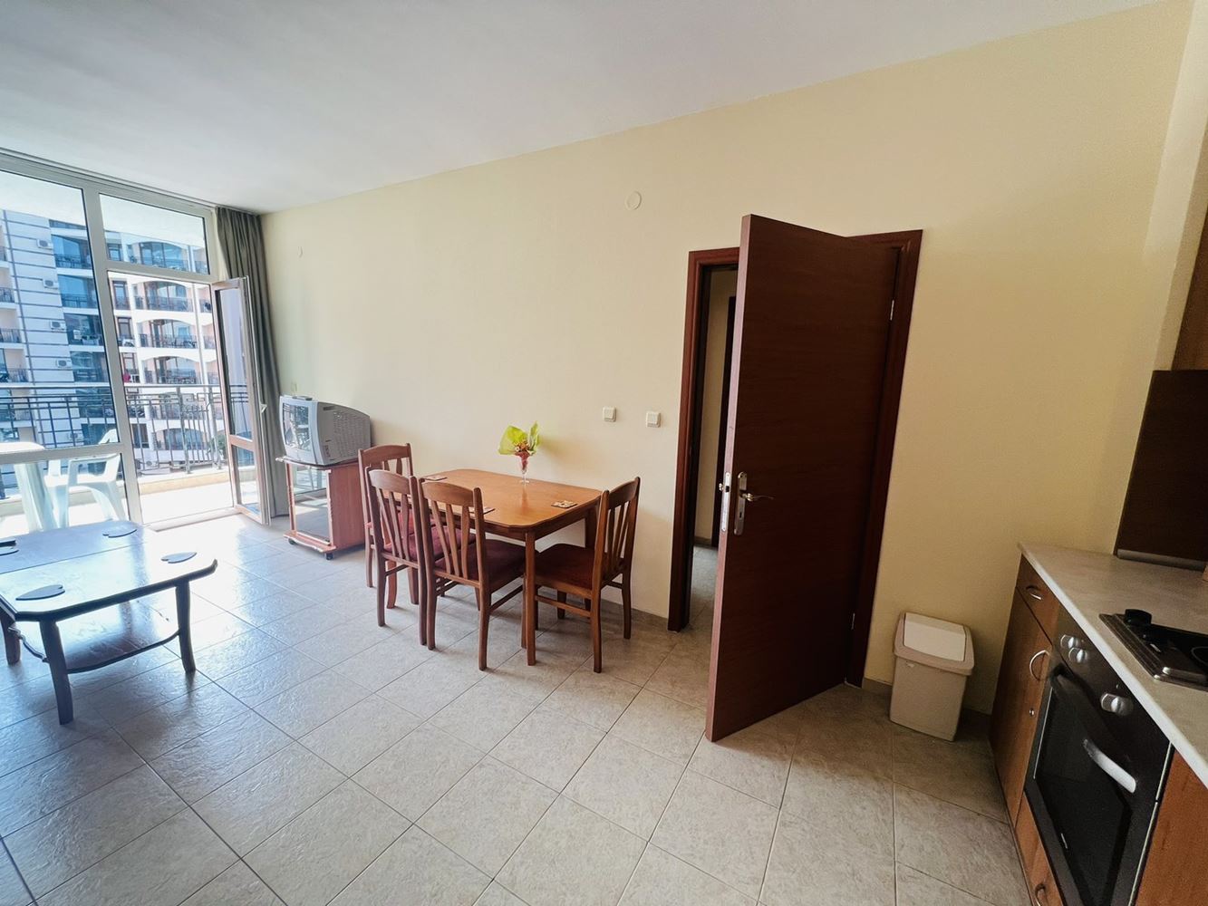 This one bedroom apartment provides excellent conditions for a comfortable holiday in the resort of Sunny Beach and enjoy the proximity to the historic center of Nessebar. The apartment is located just 100 meters from the beach of Sunny Beach and close to the historical center of Nessebar. This convenient location allows you to enjoy the sea and historical sights. The complex features restaurants, a lobby bar, swimming pools for adults and children, a fitness club, massage parlour, beauty salon, sauna and jacuzzi. This provides many opportunities for fun and relaxation. The apartment has an area of 65,94 sqm. It consists of living room with kitchenette, separate bedroom, entrance hall, bathroom with shower and terrace. The apartment is located on the third floor and overlooks the pool, which creates a pleasant atmosphere. The apartment is equipped with everything you need for a comfortable stay and rest.