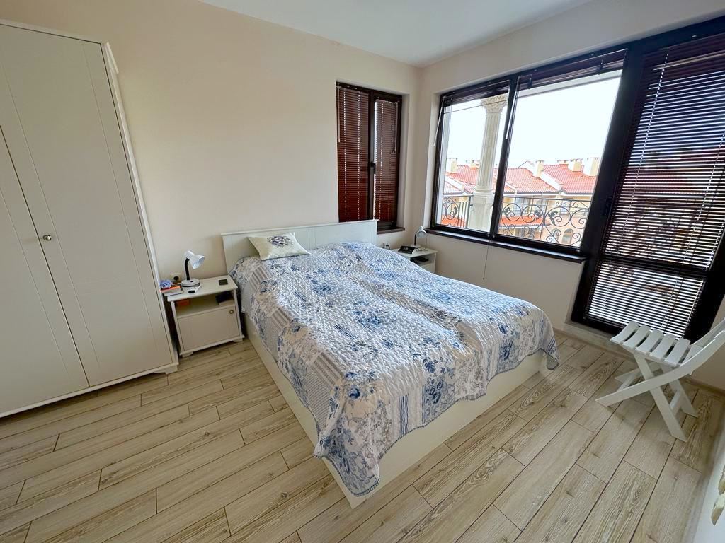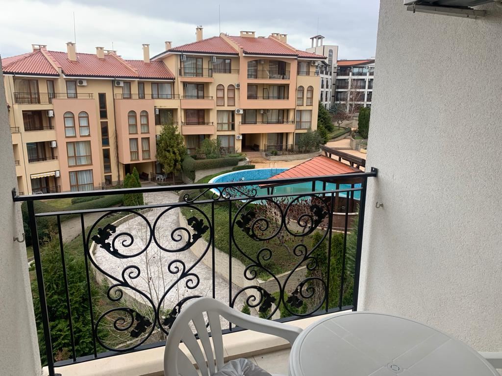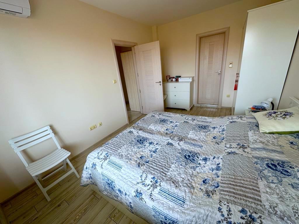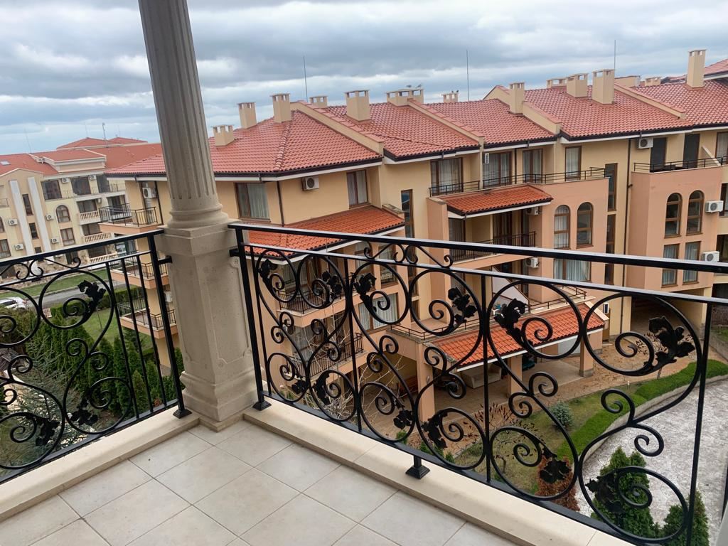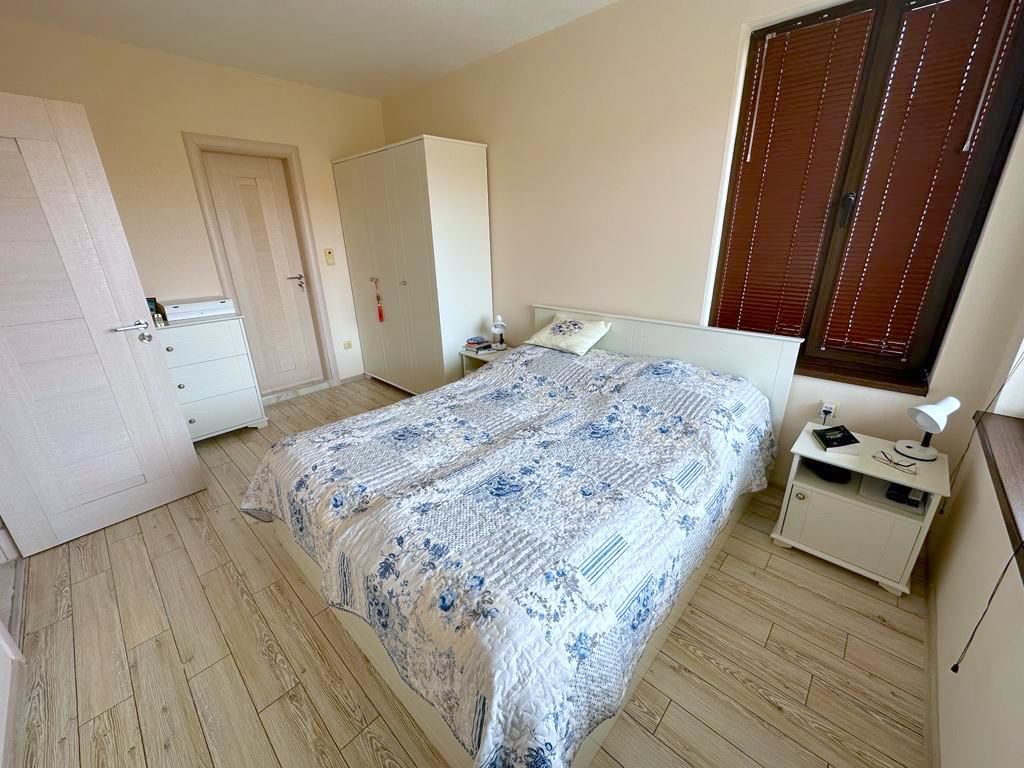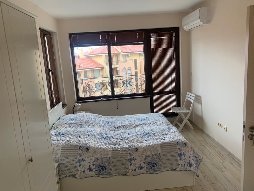 Lovely two bedroom fully furnished apartment in a luxury complex in St. Vlas. The complex is within walking distance to the sea. In this complex the following amenities are offered: health centre with sauna and beauty salon, mini golf course, indoor and outdoor pools, sun beds, shop, bar, gym, children playground, ample parking, 24 hour security and video surveillance. The offered flat is 100m2 on the fourth floor and consists of an entrance hall, living room with kitchen, two bedrooms, two bathrooms with WC and two balconies. There is a sea view. It is offered with quality beautiful modern furniture and equipment.