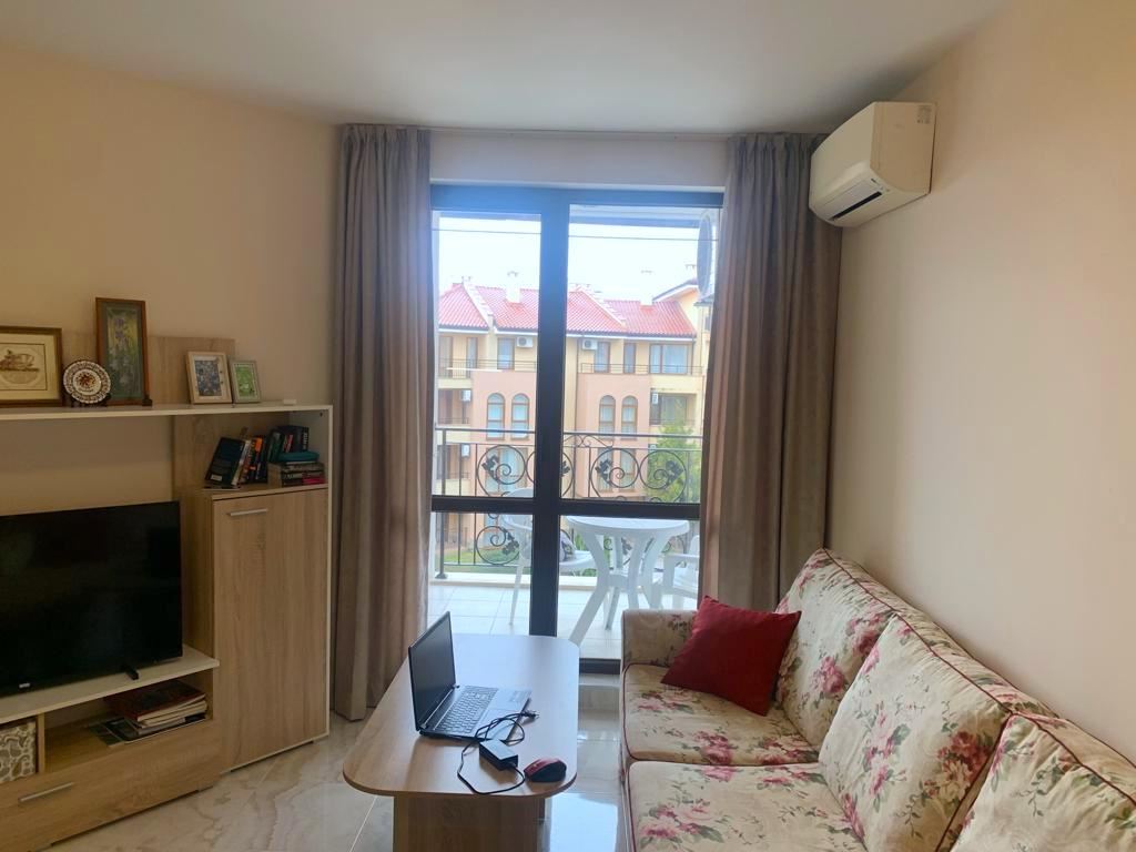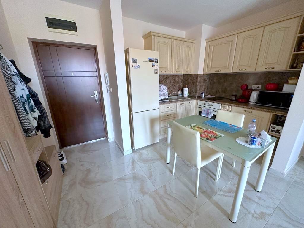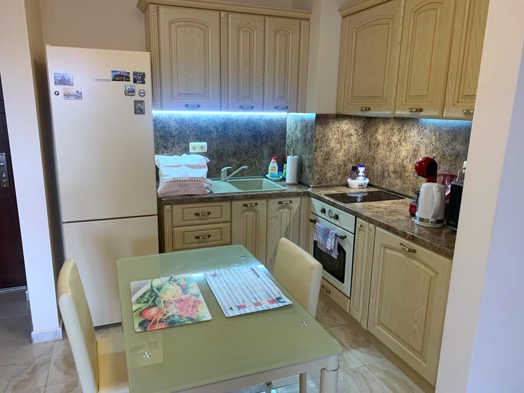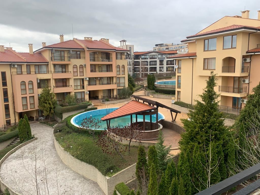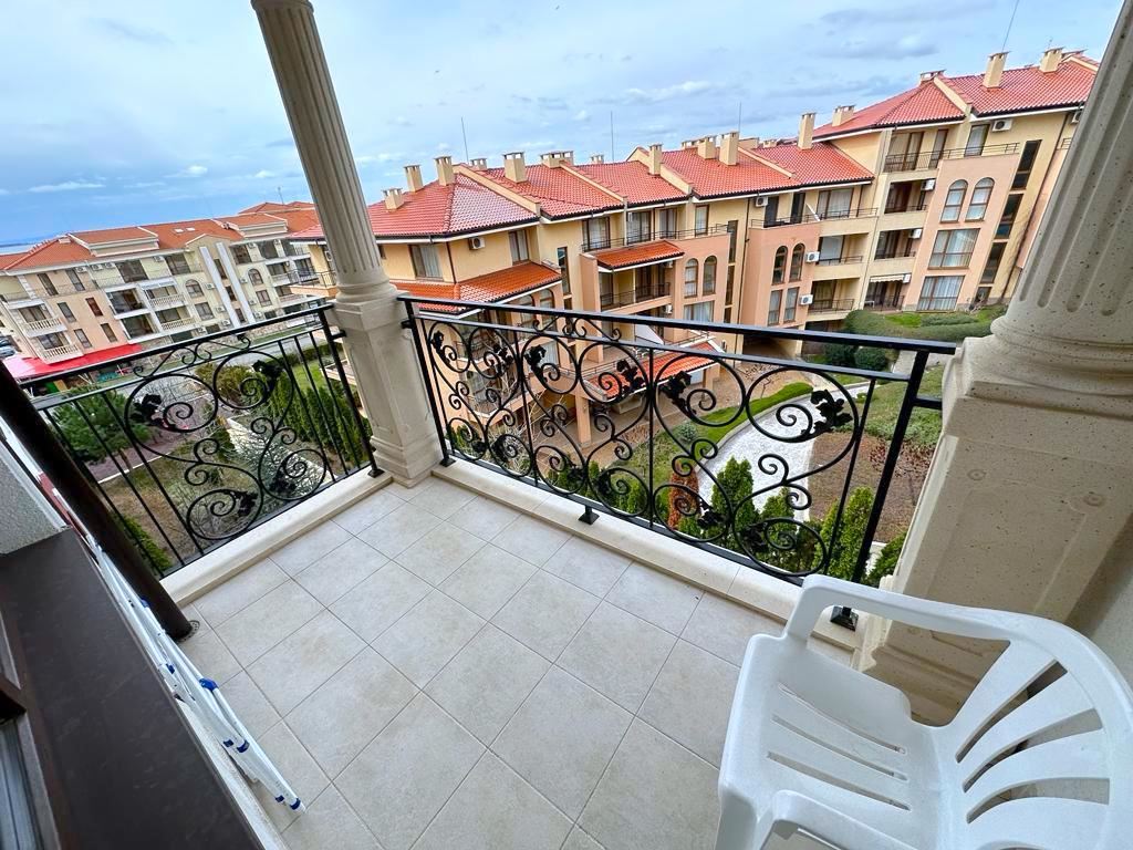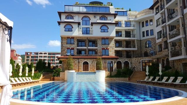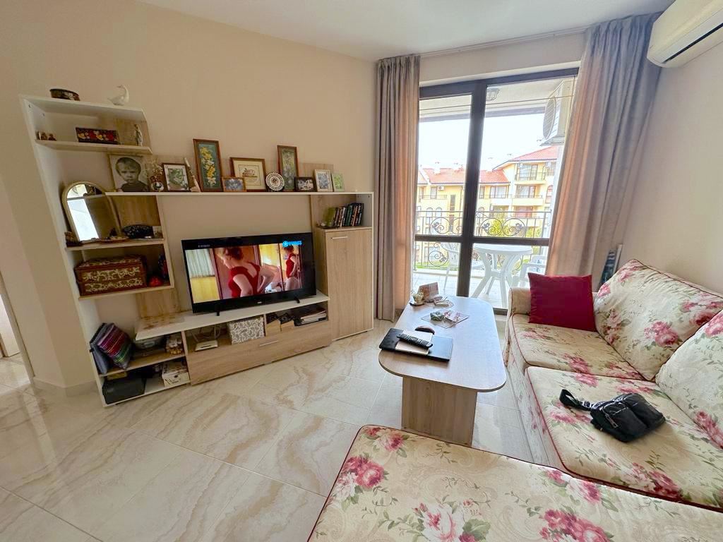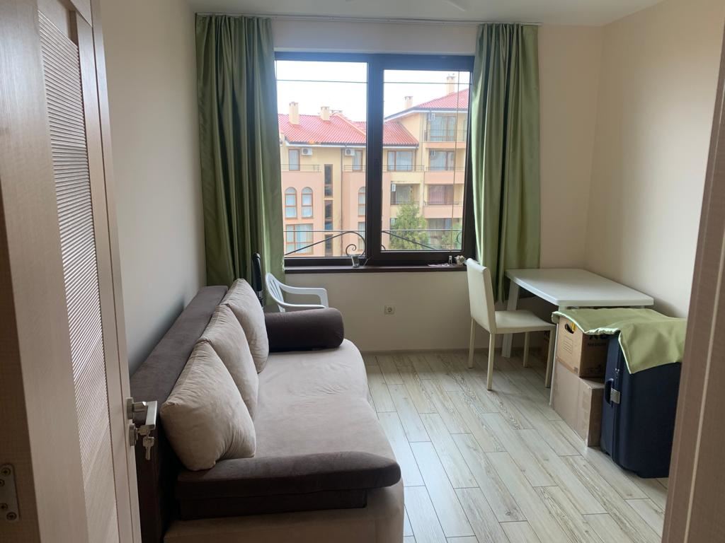 Lovely two bedroom fully furnished apartment in a luxury complex in St. Vlas. The complex is within walking distance to the sea. In this complex the following amenities are offered: health centre with sauna and beauty salon, mini golf course, indoor and outdoor pools, sun beds, shop, bar, gym, children playground, ample parking, 24 hour security and video surveillance. The offered flat is 100m2 on the fourth floor and consists of an entrance hall, living room with kitchen, two bedrooms, two bathrooms with WC and two balconies. There is a sea view. It is offered with quality beautiful modern furniture and equipment.