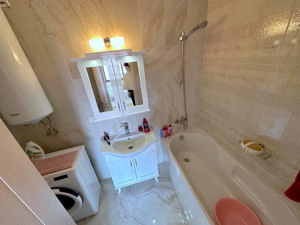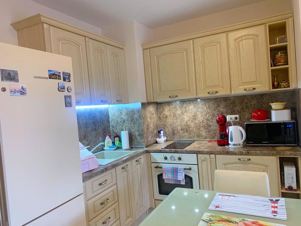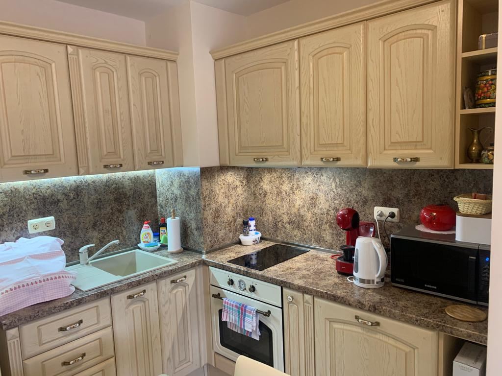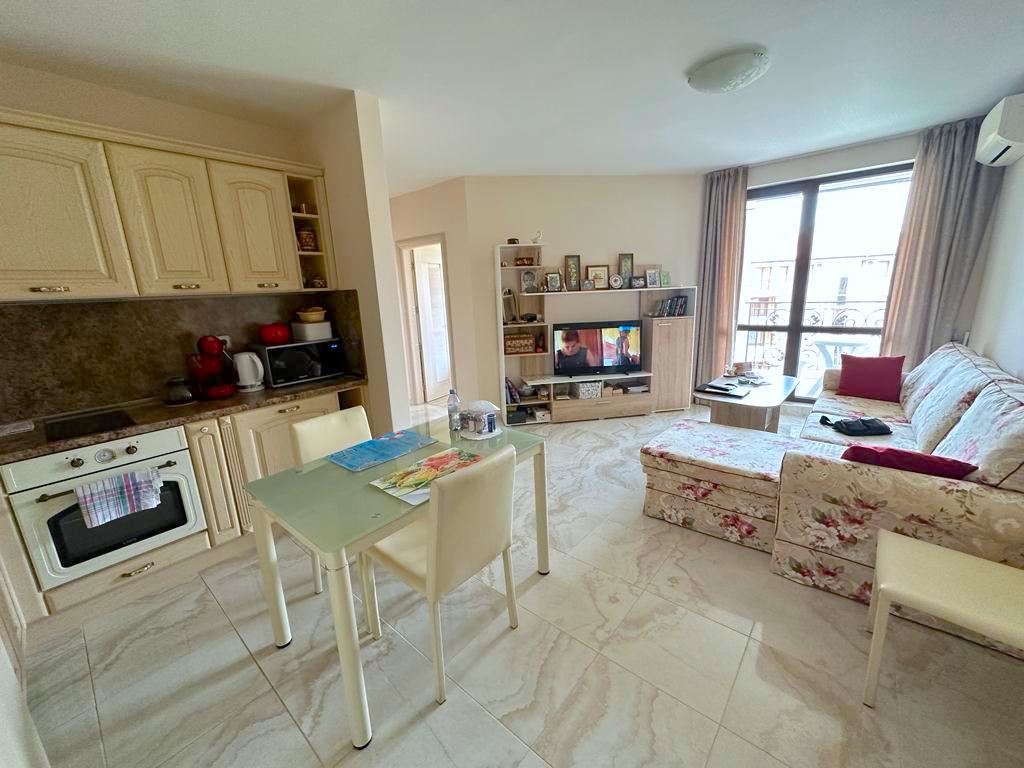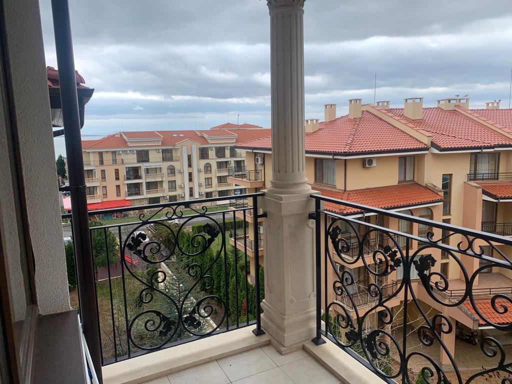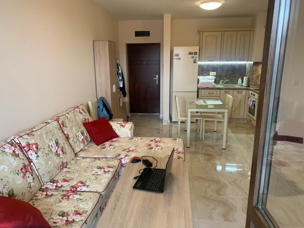 Lovely two bedroom fully furnished apartment in a luxury complex in St. Vlas. The complex is within walking distance to the sea. In this complex the following amenities are offered: health centre with sauna and beauty salon, mini golf course, indoor and outdoor pools, sun beds, shop, bar, gym, children playground, ample parking, 24 hour security and video surveillance. The offered flat is 100m2 on the fourth floor and consists of an entrance hall, living room with kitchen, two bedrooms, two bathrooms with WC and two balconies. There is a sea view. It is offered with quality beautiful modern furniture and equipment.