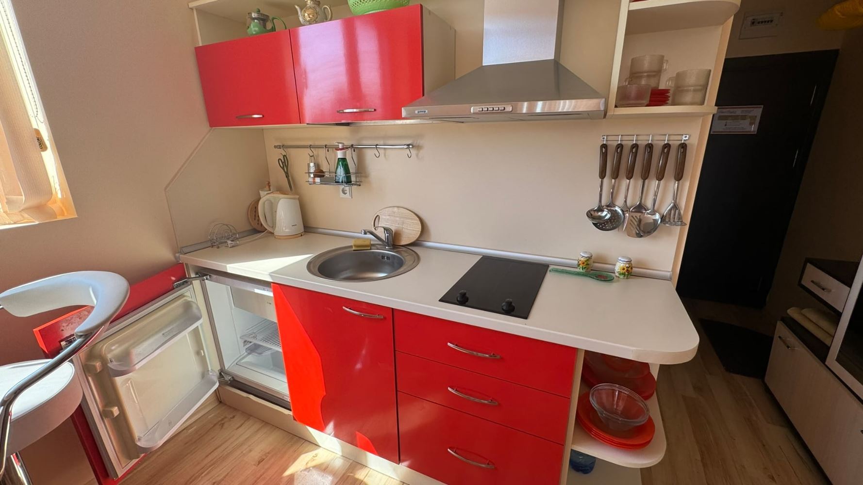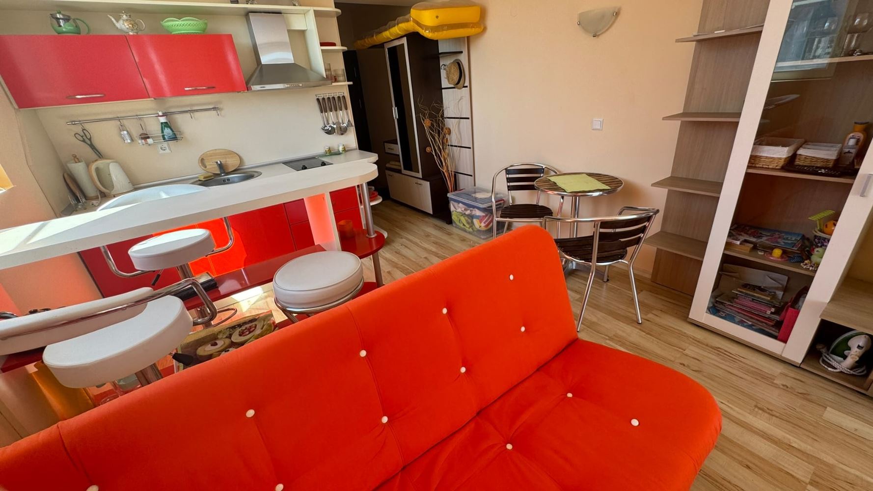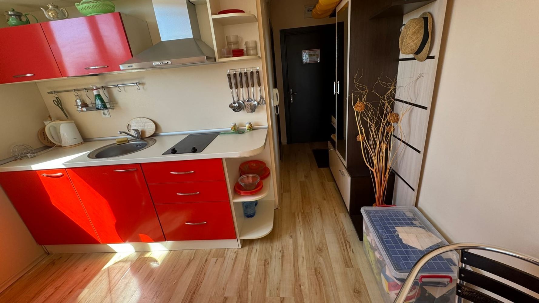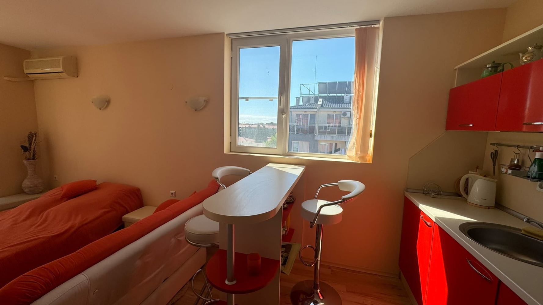 We present to you an excellent spacious studio located in a quiet and well-maintained area of the popular seaside resort of Sunny Beach. This cozy apartment is located on the fifth floor in a modern complex and offers everything you need for comfortable relaxation and year-round living. The studio has a total area of 46 m2 and is intelligently planned to provide maximum convenience and functionality. Entering the home, you will be charmed by a stylish entrance hall leading to a spacious living area that cleverly combines a kitchenette and seating area. The convenient bathroom with toilet completes the comfort of the inhabitants. From the terrace you can enjoy a picturesque view of the swimming pool and the beautiful grounds of the complex.