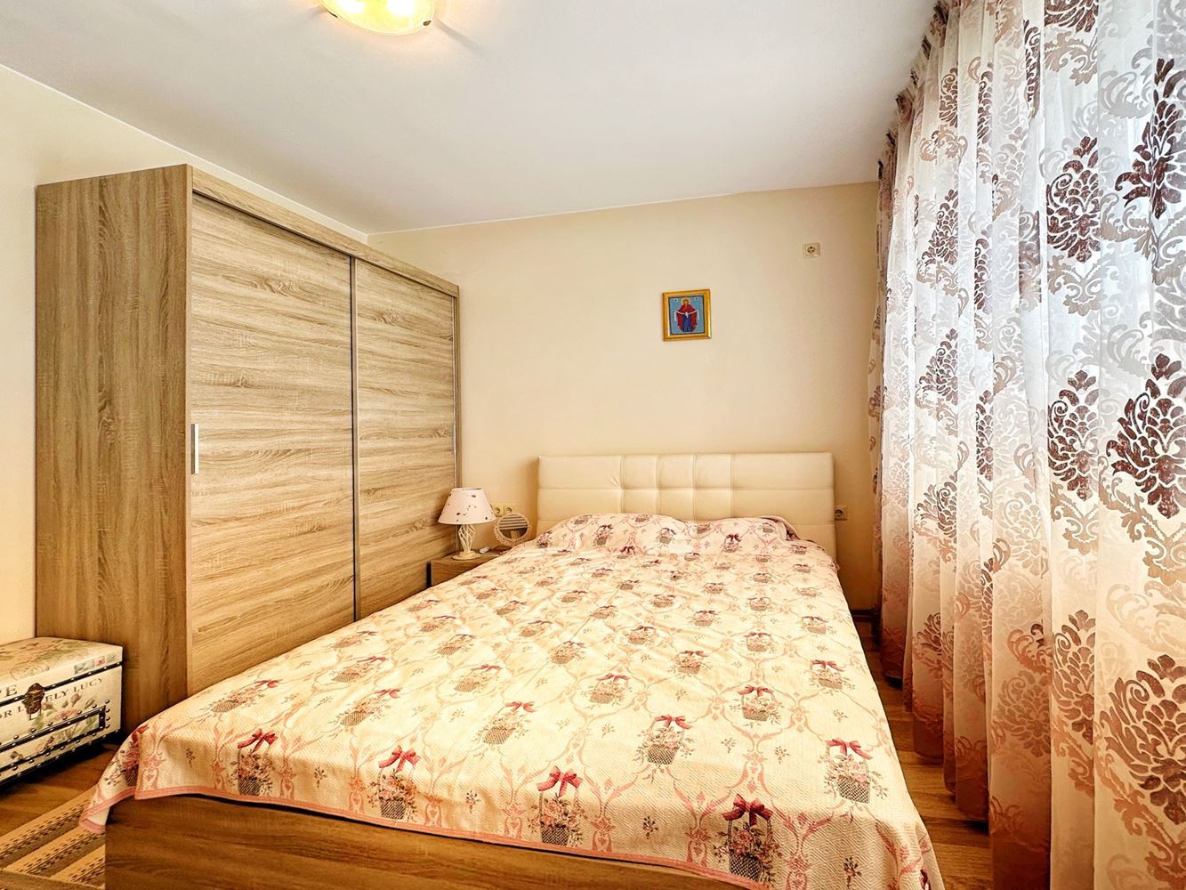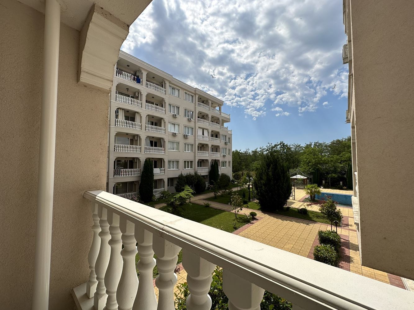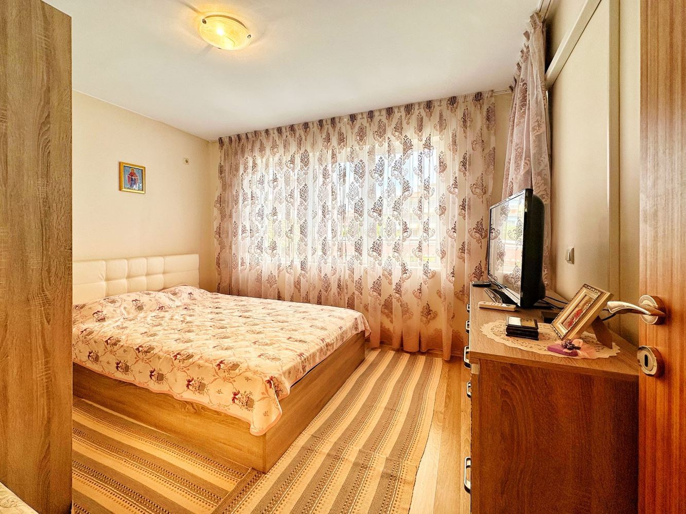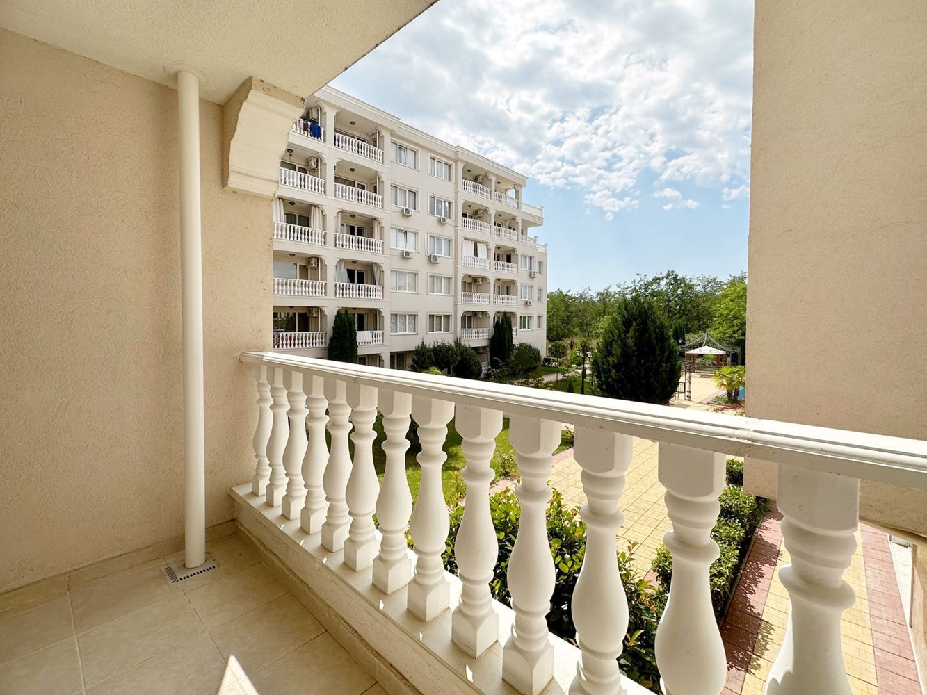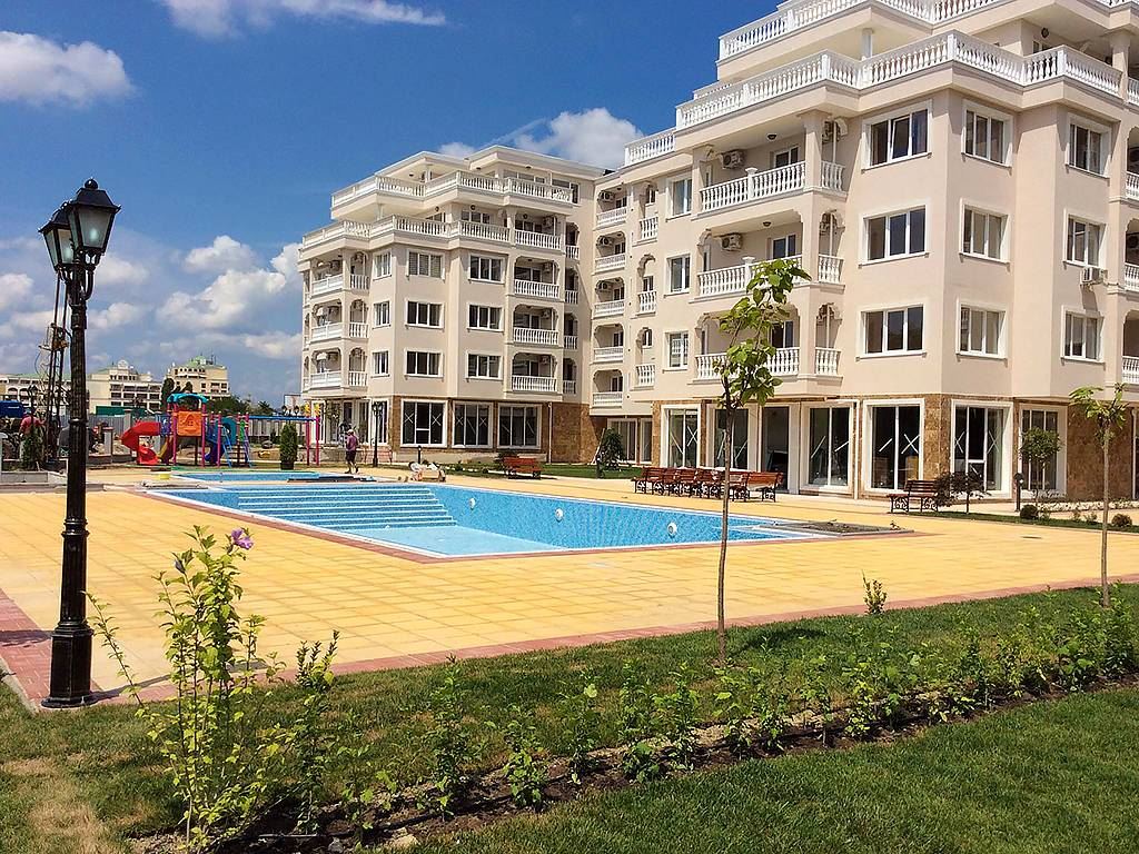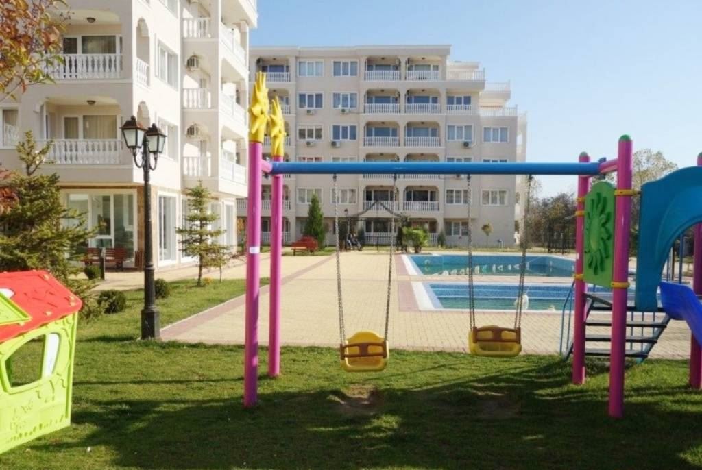 Two bedroom apartment in a unique complex in the town of Nessebar, located 200 meters from the beach. The apartment is located on the second floor, overlooking the garden and well-maintained inner territory. It consists of a kitchen-living room, two bedrooms, a bathroom with WC, a separate WC and two balconies. The apartment has a size of 75 m2 and is sold fully furnished and ready for permanent residence or summer vacation. There is under floor heating in the corridor, bathroom and kitchen. On the ground floor of the building there are commercial premises: cosmetic and hairdresser salons, SPA-center, fitness center, sauna, solarium, recreation room, indoor heated pool, children's playroom, reception, cafe-bar, restaurant, medical office, pharmacy, laundry and dry cleaning. The complex has a fenced and guarded territory, video surveillance. On the territory there is a seasonal outdoor swimming pool, playground, summer terrace with a cafe. Secured parking.