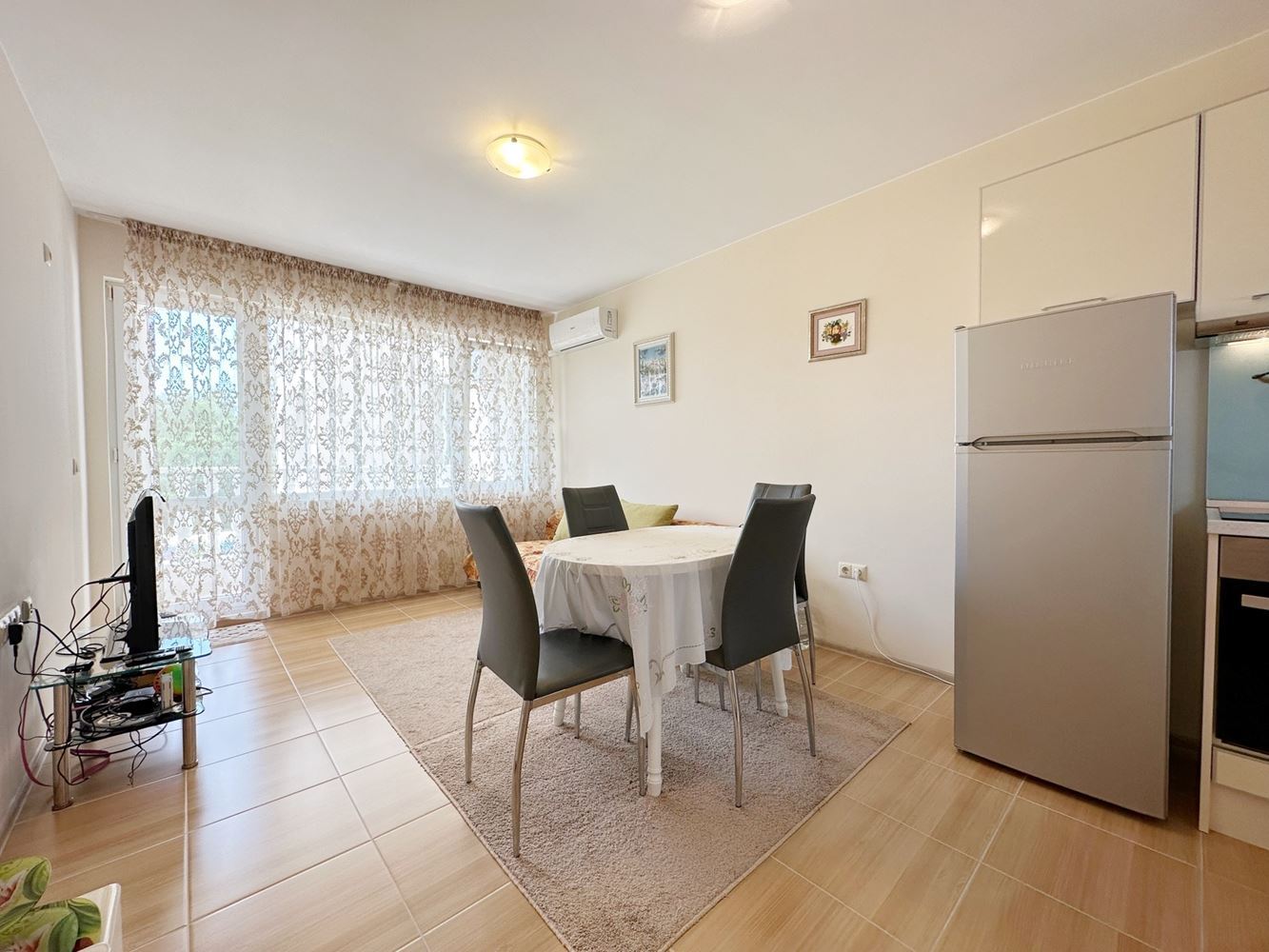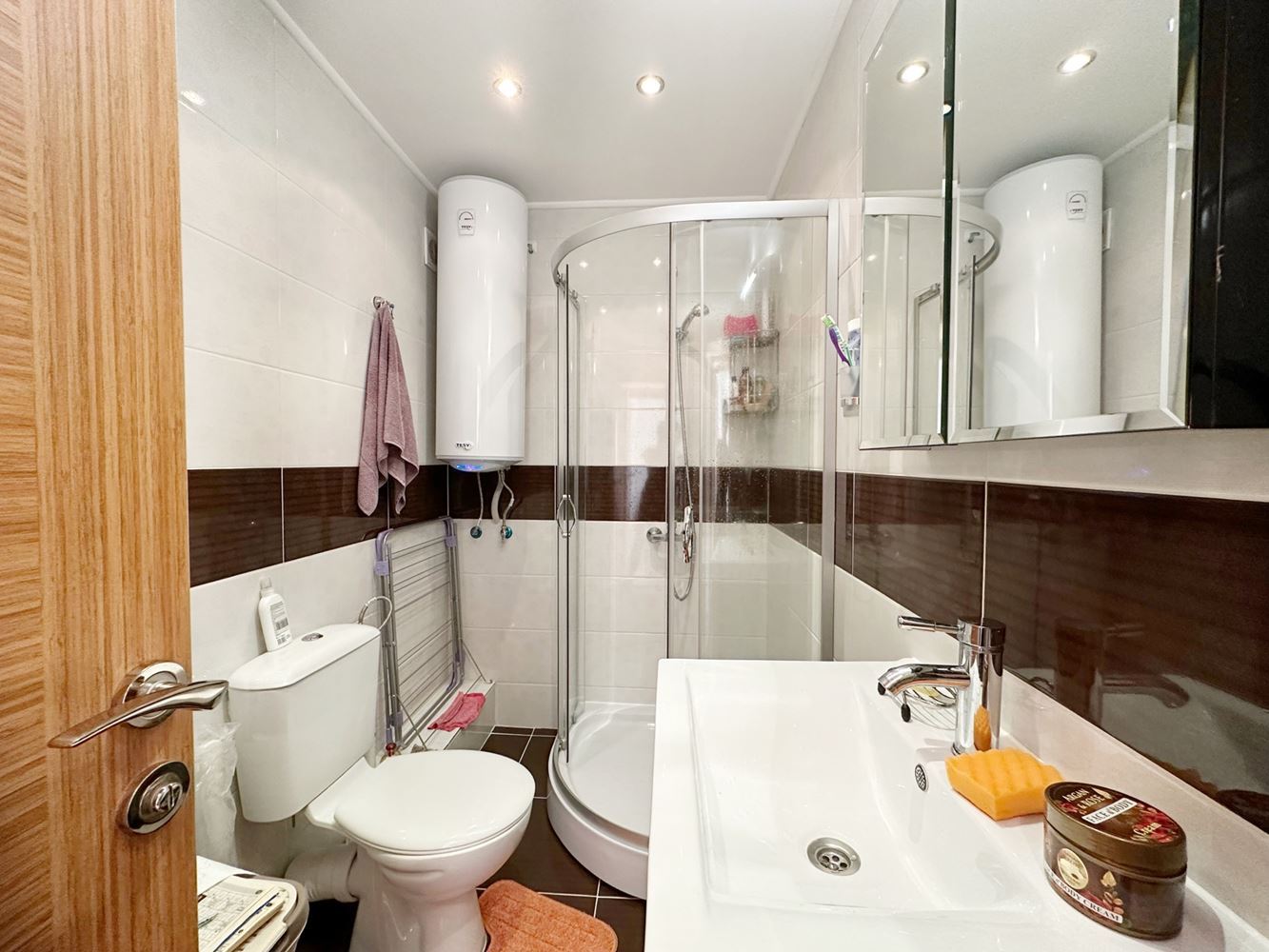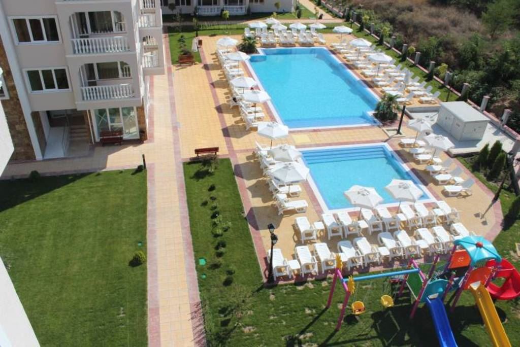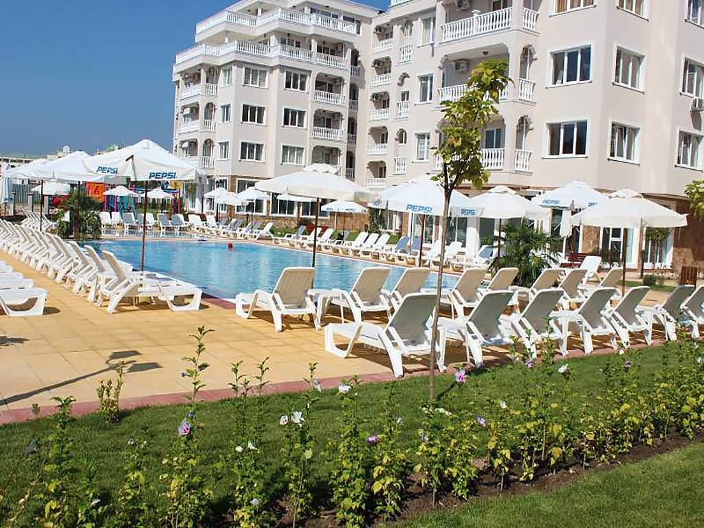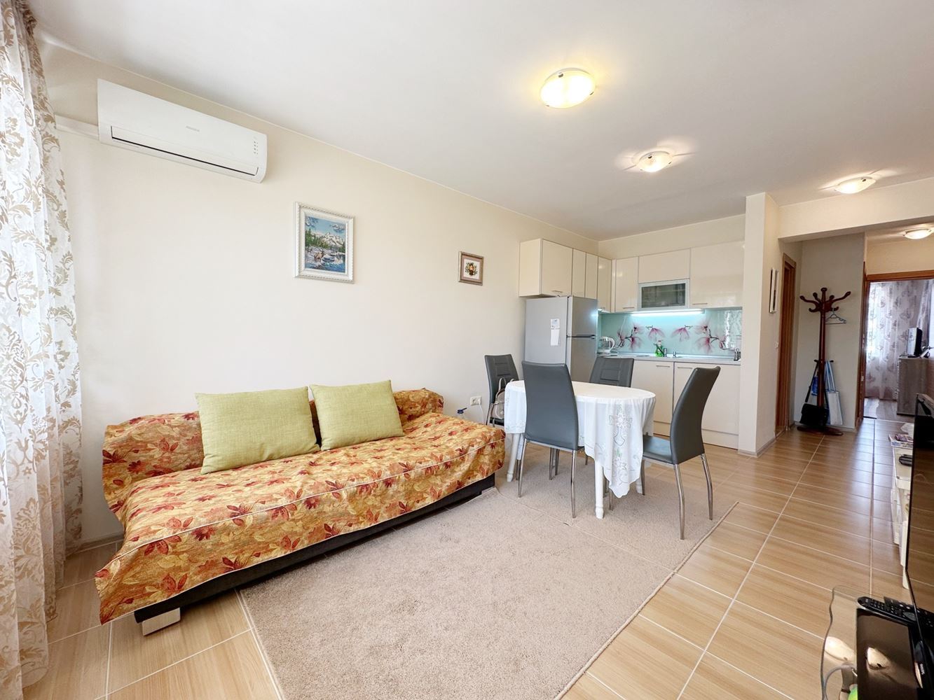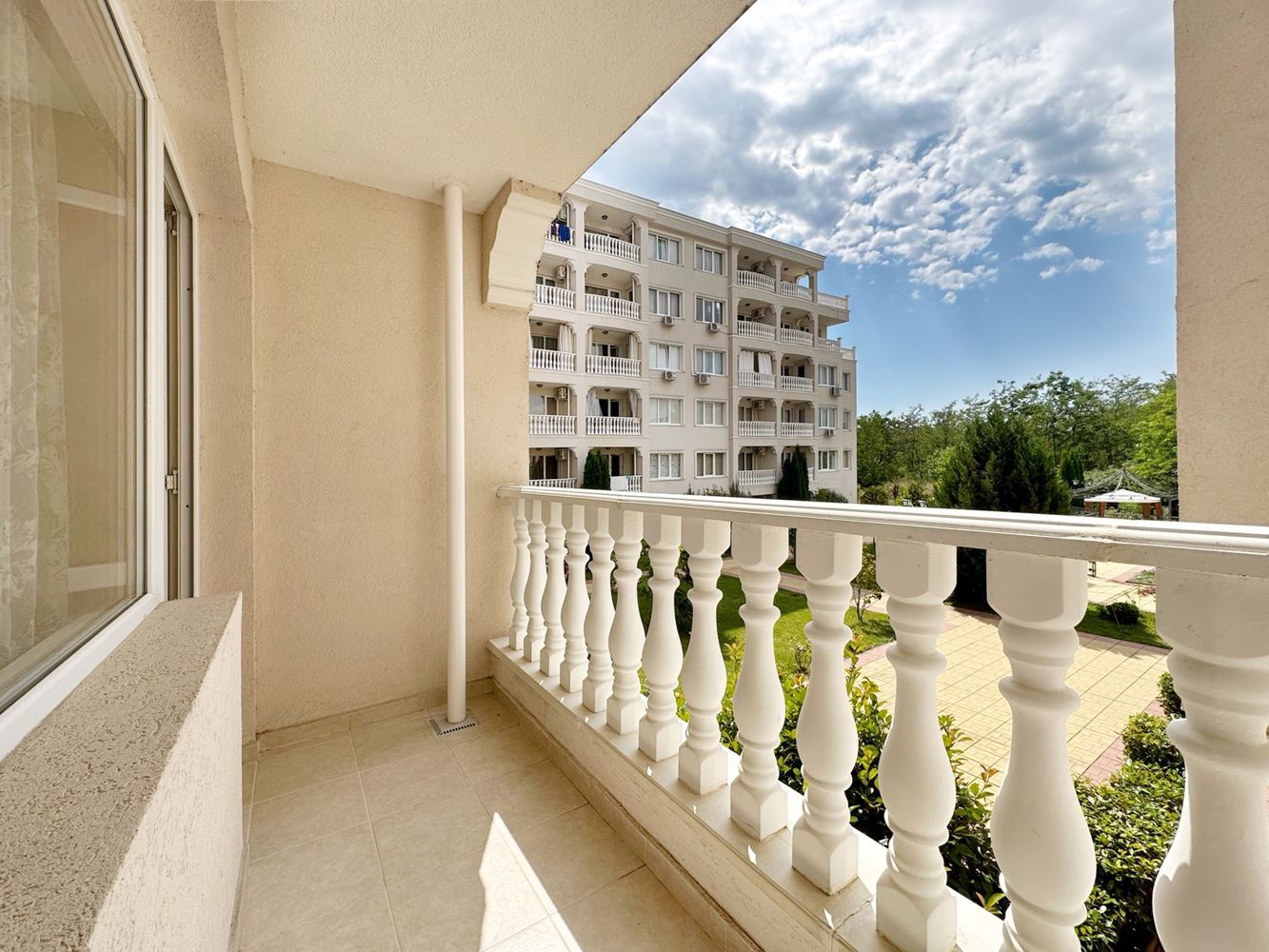 Two bedroom apartment in a unique complex in the town of Nessebar, located 200 meters from the beach. The apartment is located on the second floor, overlooking the garden and well-maintained inner territory. It consists of a kitchen-living room, two bedrooms, a bathroom with WC, a separate WC and two balconies. The apartment has a size of 75 m2 and is sold fully furnished and ready for permanent residence or summer vacation. There is under floor heating in the corridor, bathroom and kitchen. On the ground floor of the building there are commercial premises: cosmetic and hairdresser salons, SPA-center, fitness center, sauna, solarium, recreation room, indoor heated pool, children's playroom, reception, cafe-bar, restaurant, medical office, pharmacy, laundry and dry cleaning. The complex has a fenced and guarded territory, video surveillance. On the territory there is a seasonal outdoor swimming pool, playground, summer terrace with a cafe. Secured parking.
