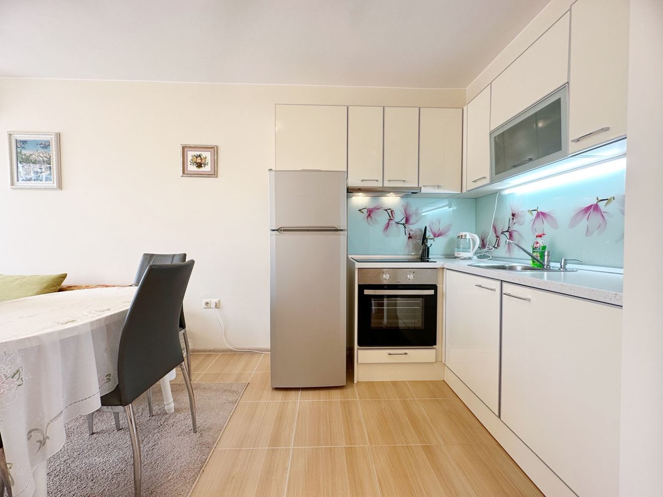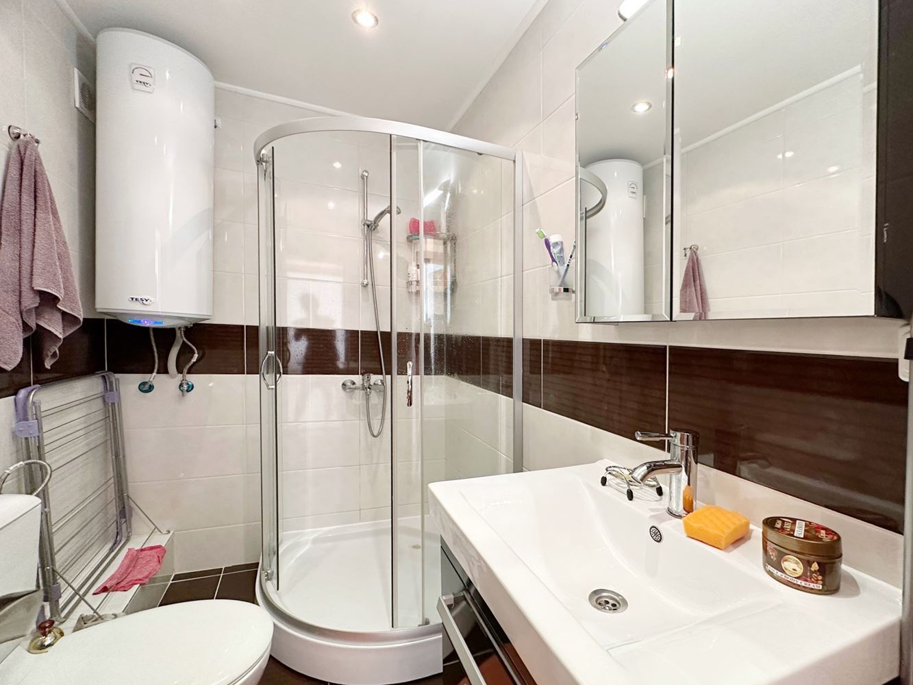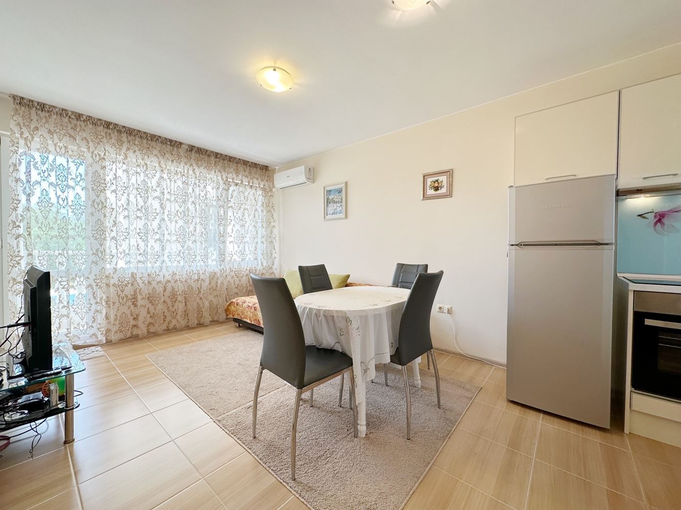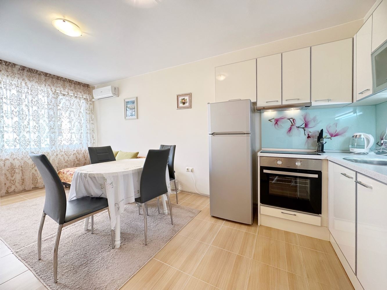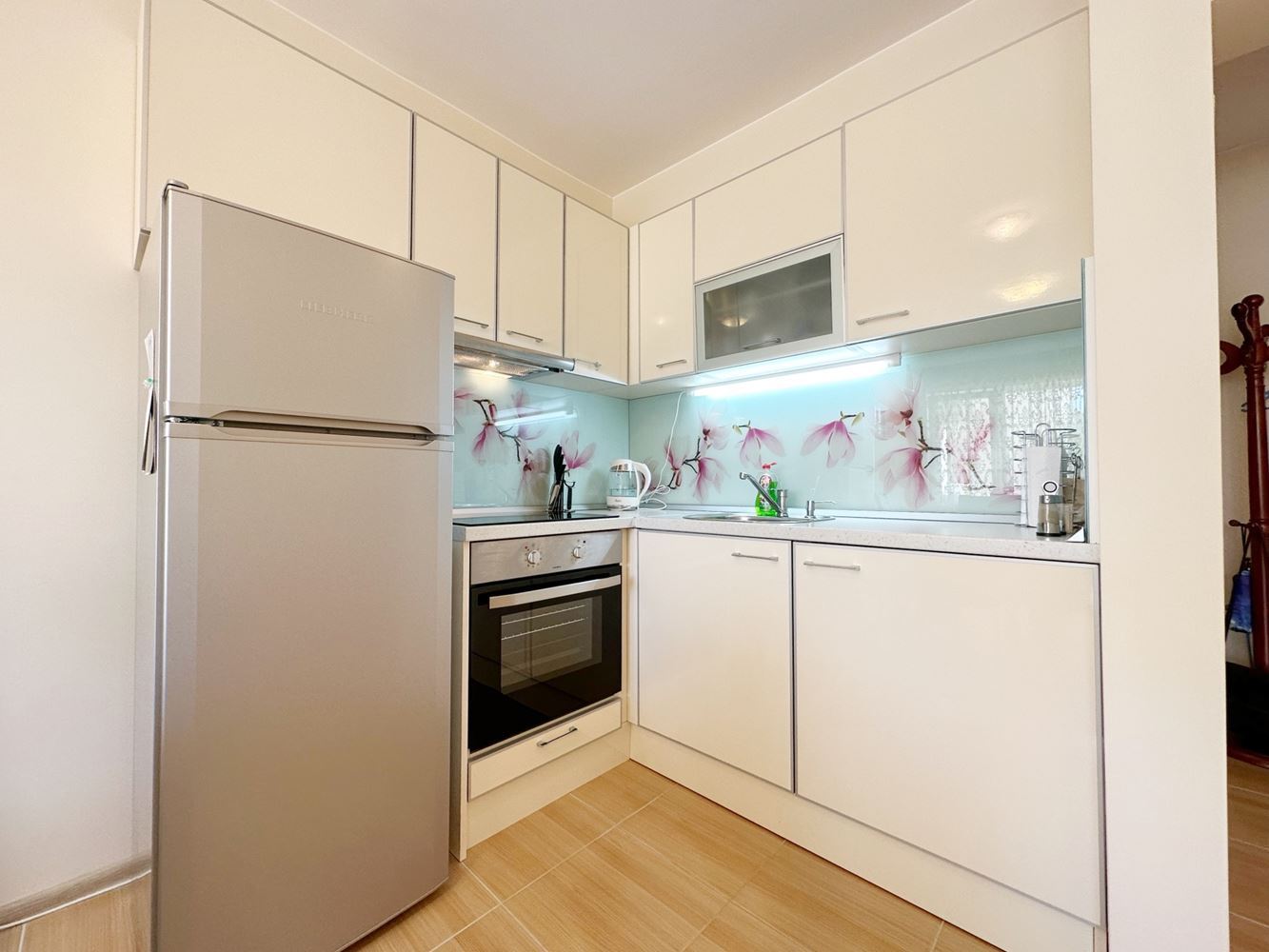 Two bedroom apartment in a unique complex in the town of Nessebar, located 200 meters from the beach. The apartment is located on the second floor, overlooking the garden and well-maintained inner territory. It consists of a kitchen-living room, two bedrooms, a bathroom with WC, a separate WC and two balconies. The apartment has a size of 75 m2 and is sold fully furnished and ready for permanent residence or summer vacation. There is under floor heating in the corridor, bathroom and kitchen. On the ground floor of the building there are commercial premises: cosmetic and hairdresser salons, SPA-center, fitness center, sauna, solarium, recreation room, indoor heated pool, children's playroom, reception, cafe-bar, restaurant, medical office, pharmacy, laundry and dry cleaning. The complex has a fenced and guarded territory, video surveillance. On the territory there is a seasonal outdoor swimming pool, playground, summer terrace with a cafe. Secured parking.