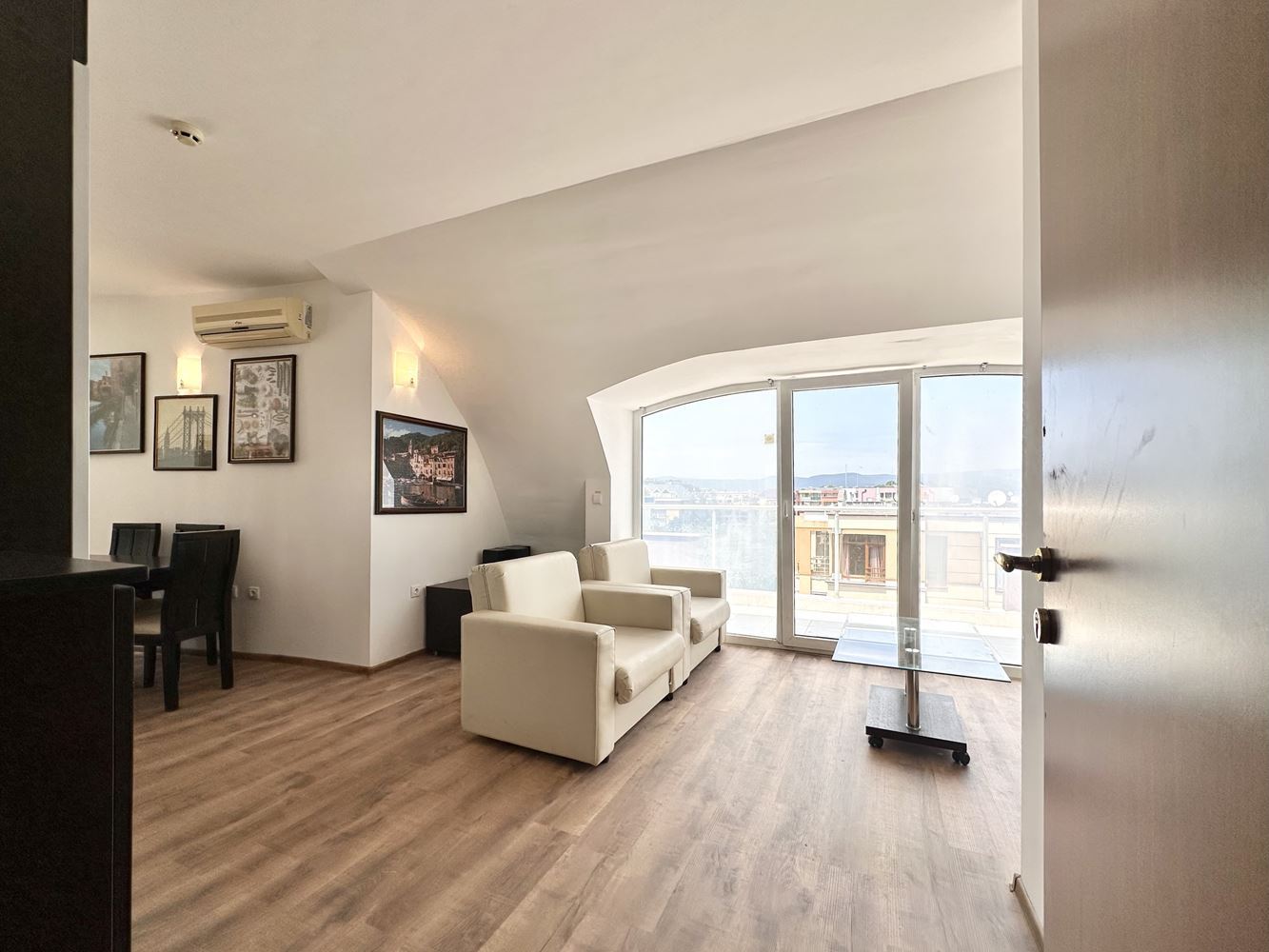 - Spacious living room with fully equipped kitchen from which you have access to terraces offering spectacular views of the resort, the mountains and partly to the sea.