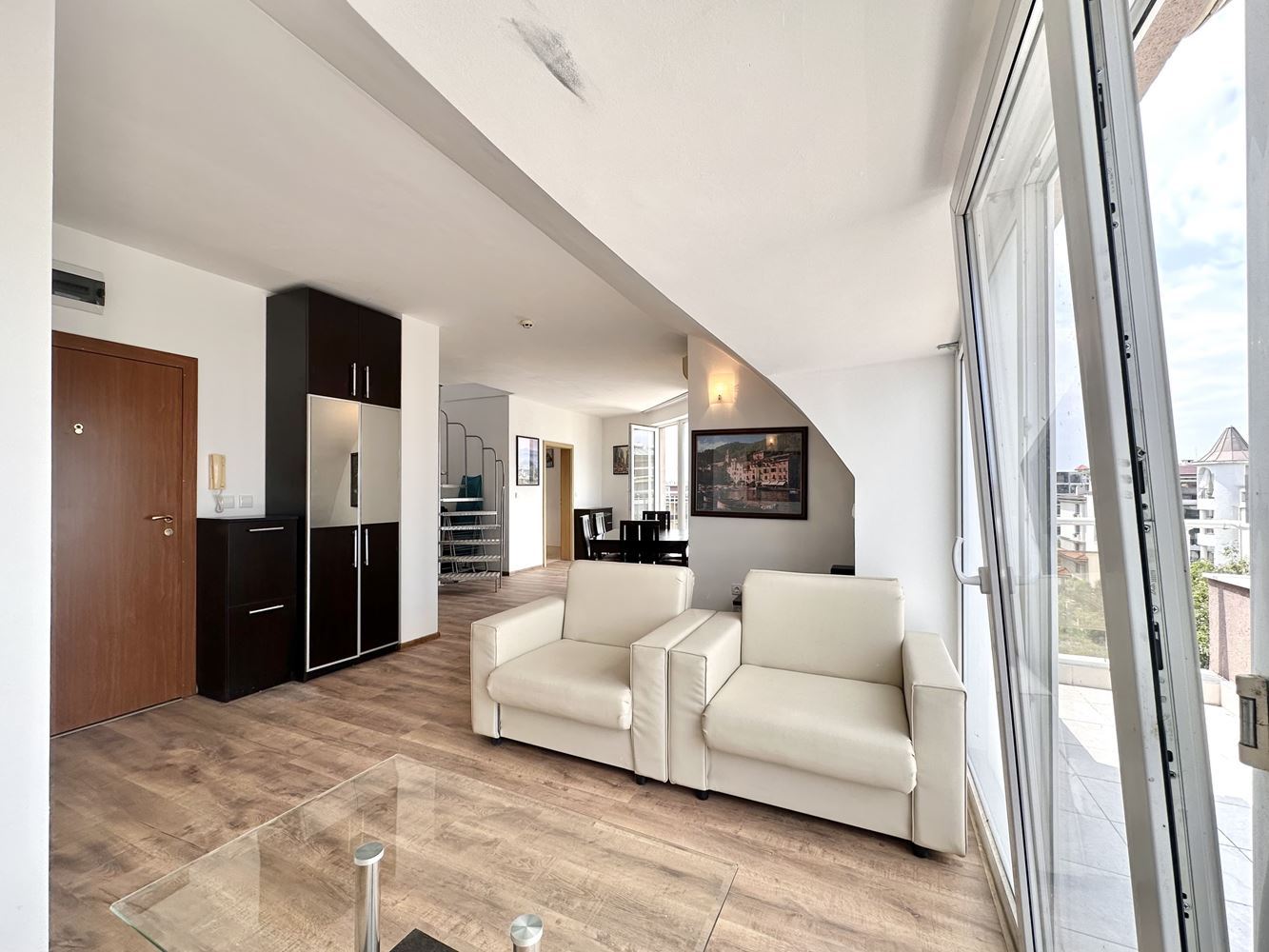 We present you an exclusive duplex apartment located in the heart of Sunny Beach, offering a combination of modern furnishings, comfort and amazing panoramic views. This spacious property with a total area of 105 m² is ideal for those looking for a unique property or second home on the beach. The maisonette is situated on two levels and offers the following layout.
