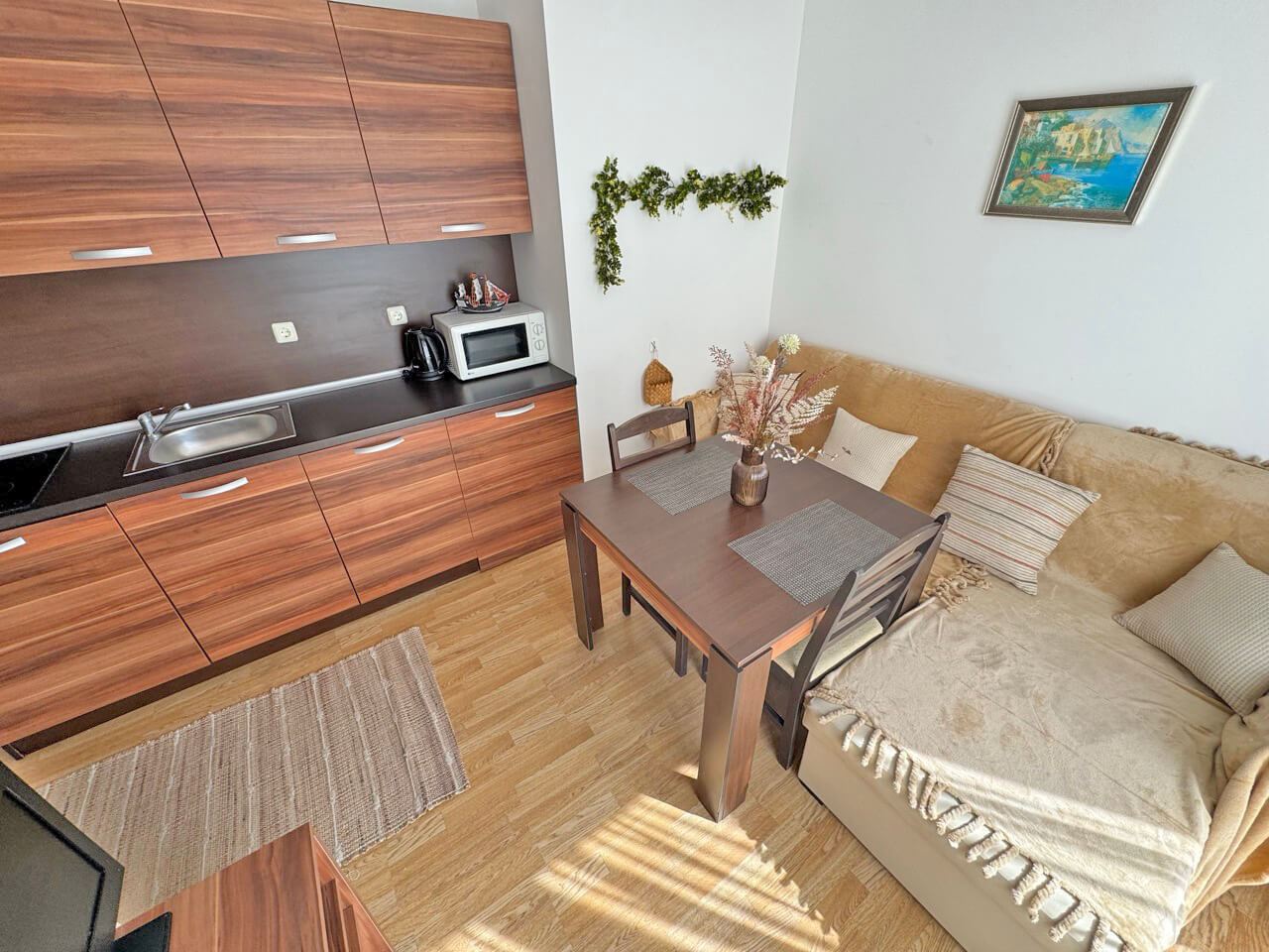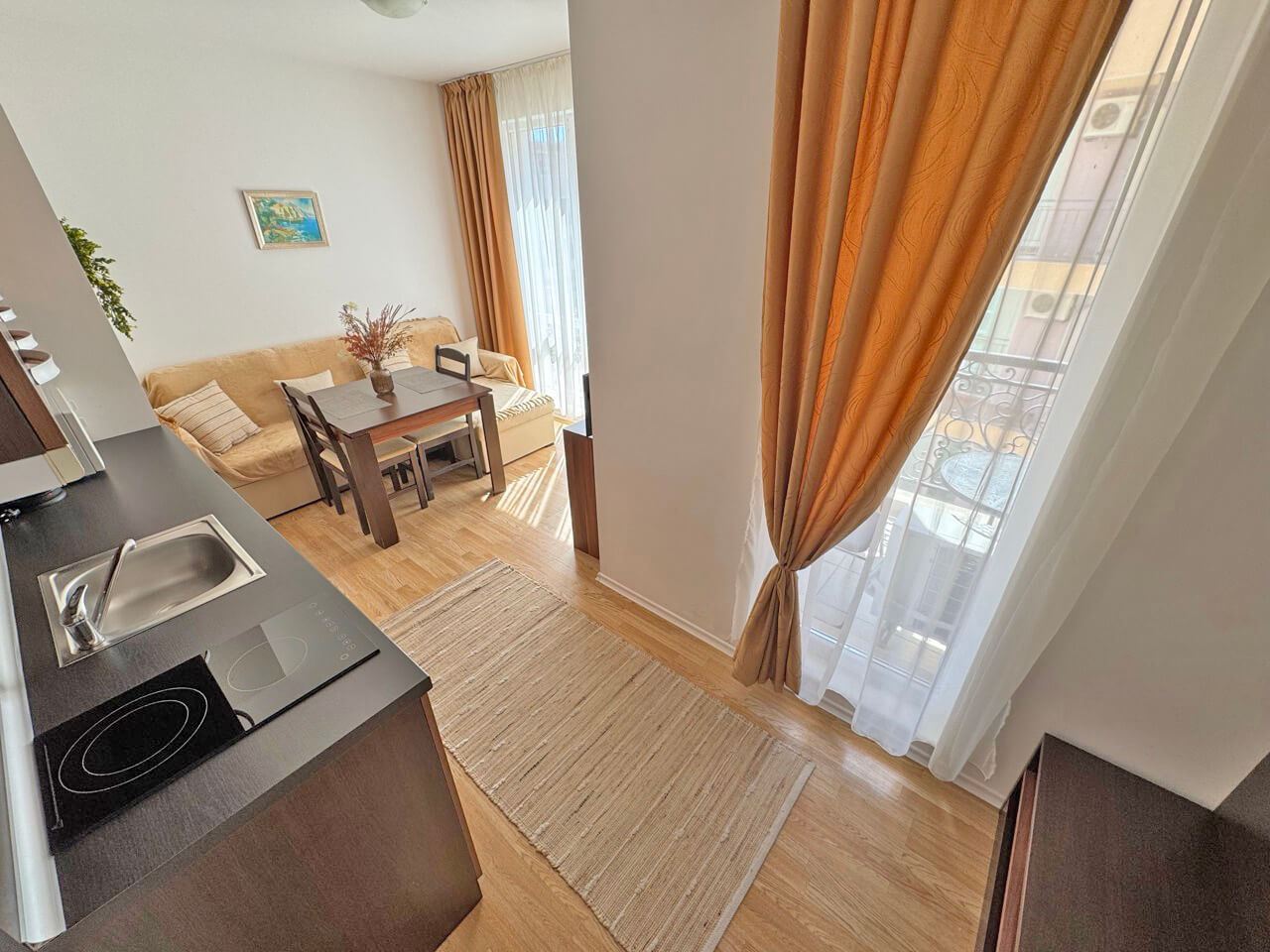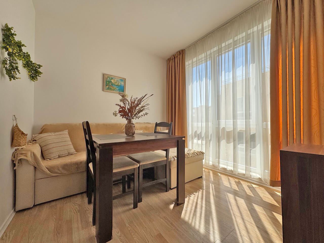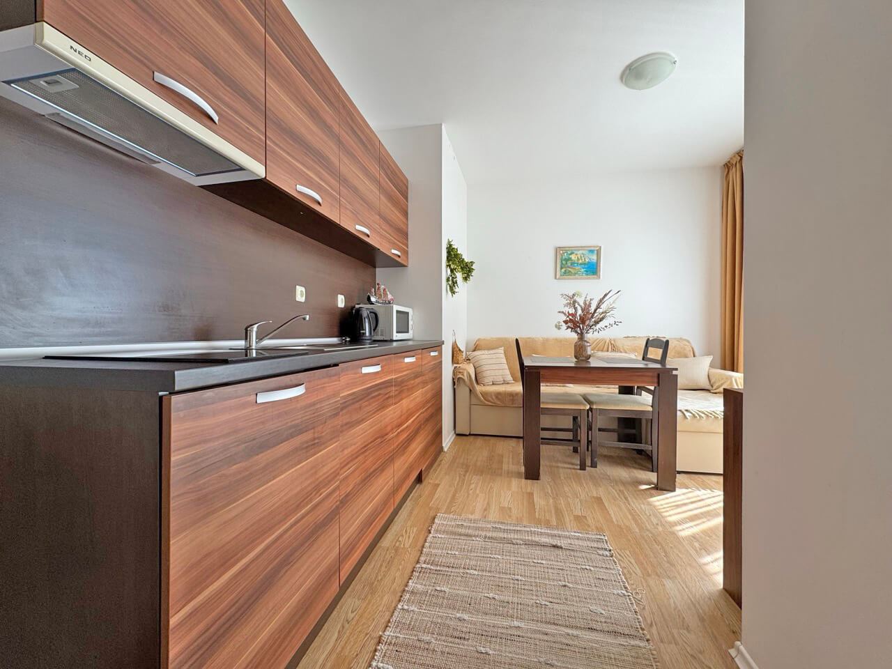 We present you an amazing opportunity to acquire a cozy one-bedroom apartment located on Sunny Beach - one of the most popular destinations on the Bulgarian Black Sea coast. With its 44 square meters, this property is the perfect solution for those looking for peace and comfort in close proximity to the golden beaches and exciting resort life. The apartment consists of a bright living room, one cozy bedroom, a modern bathroom and a balcony that offers a wonderful view of the complex. Fully furnished and equipped, it is ready for immediate move-in or rental to tourists.
