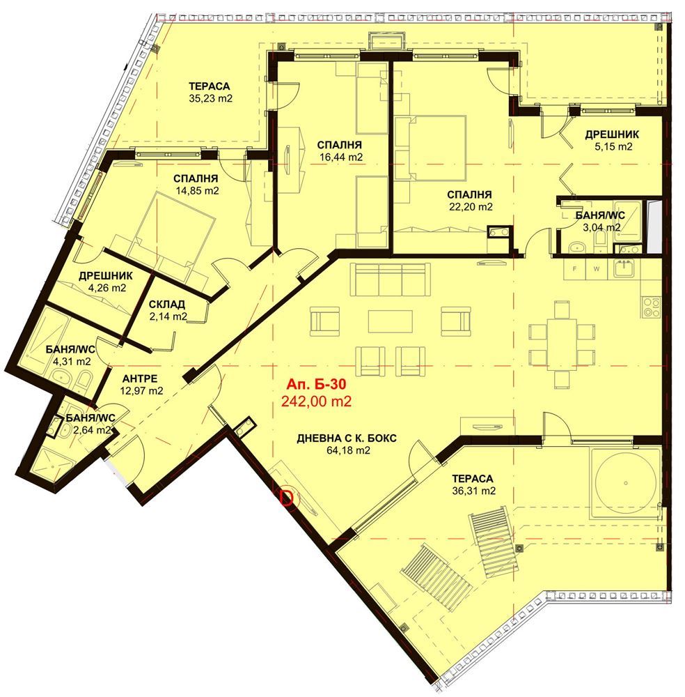 Within the complex, a wide range of amenities for a healthy and active lifestyle are provided: a gym, SPA center with indoor pool, steam bath, sauna, jacuzzi, and relaxation area, where you can take care of your body and mental balance. For children, there is a playground, and for the safety of all residents – security with video surveillance.
