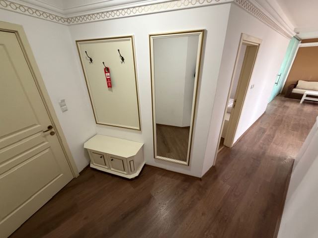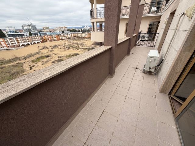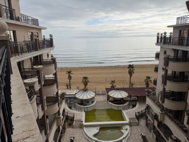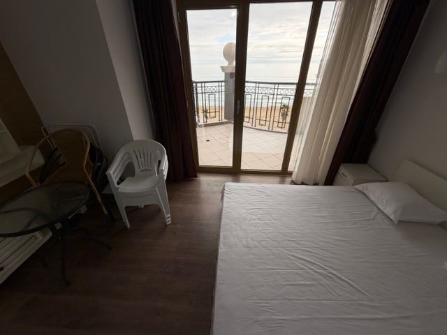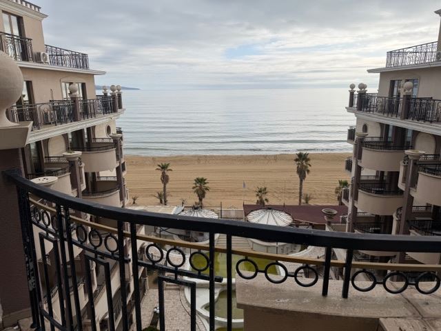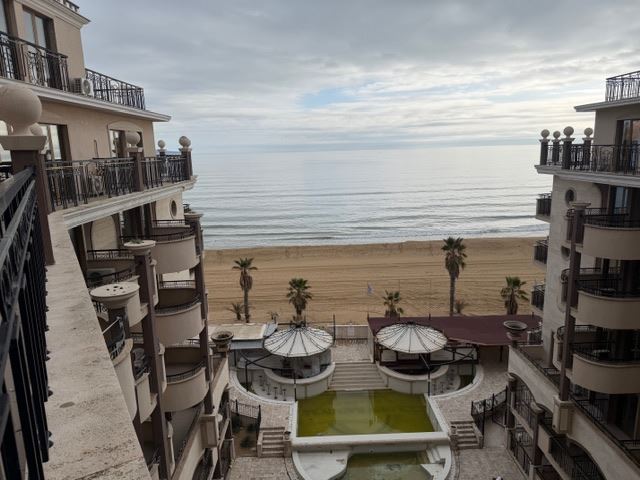 We present an extremely spacious three-room apartment with a frontal sea view, located on the first line in one of the most elite complexes in Sunny Beach. The property has a total area of 108.96 m² and is situated on the seventh floor of eight, guaranteeing uninterrupted panoramic views, peace, and a sense of spaciousness.