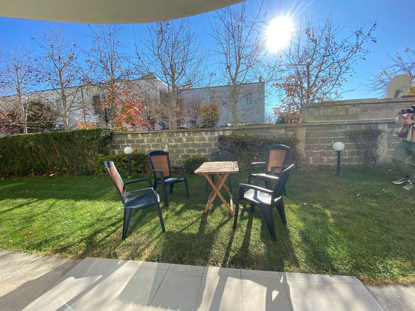 The apartment offers comfort and elegance with the following layout: spacious entrance hall, stylishly furnished living room with modern kitchen and dining area, two comfortable bedrooms, three modern bathrooms and a sunny terrace with access to a charming courtyard, ideal for morning coffee or al fresco dining. The ground floor location is extremely suitable for families with children or for people who appreciate easy access to all the amenities of the complex.