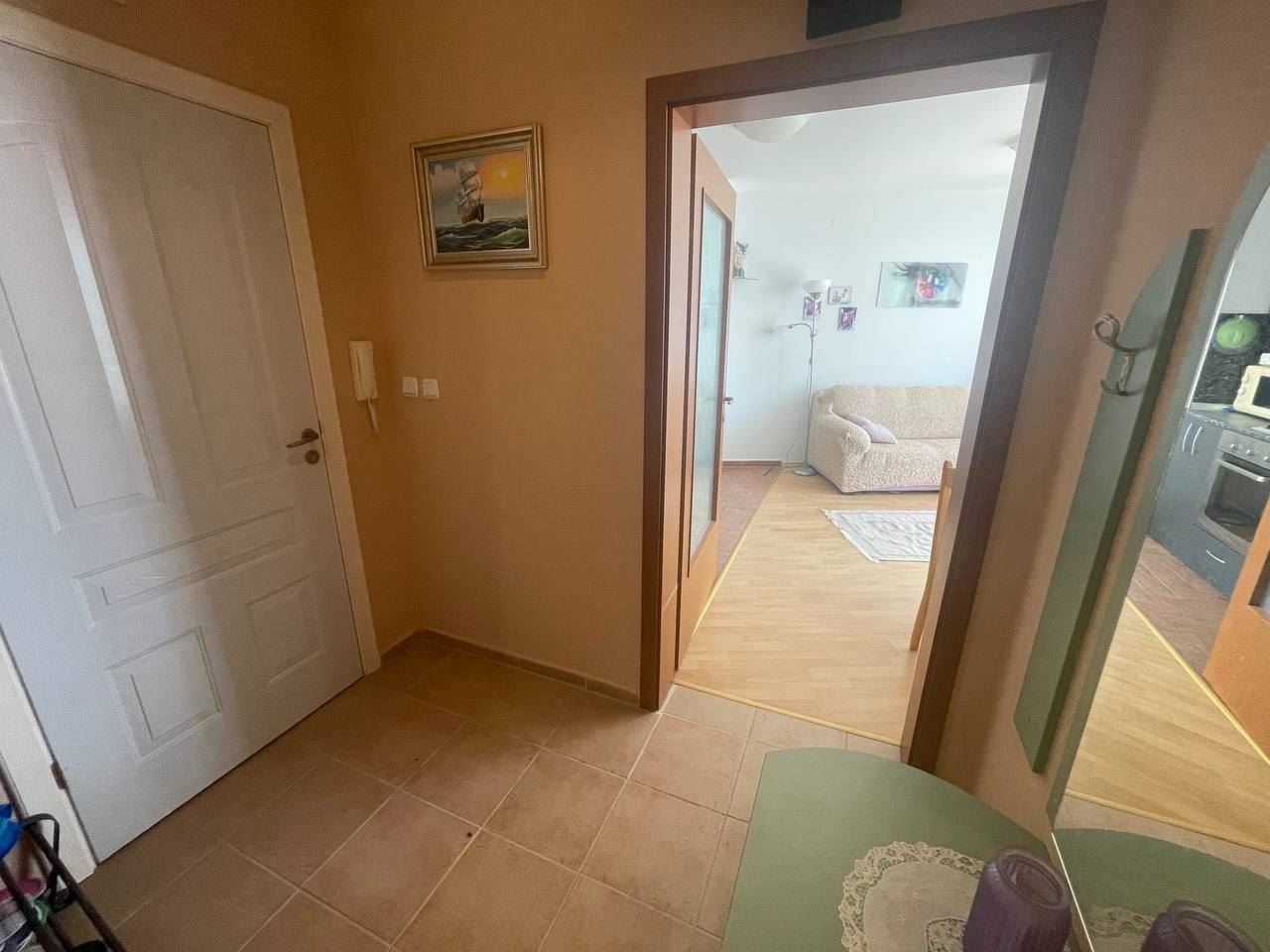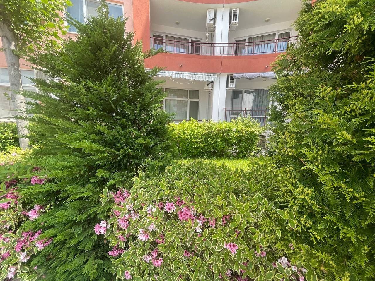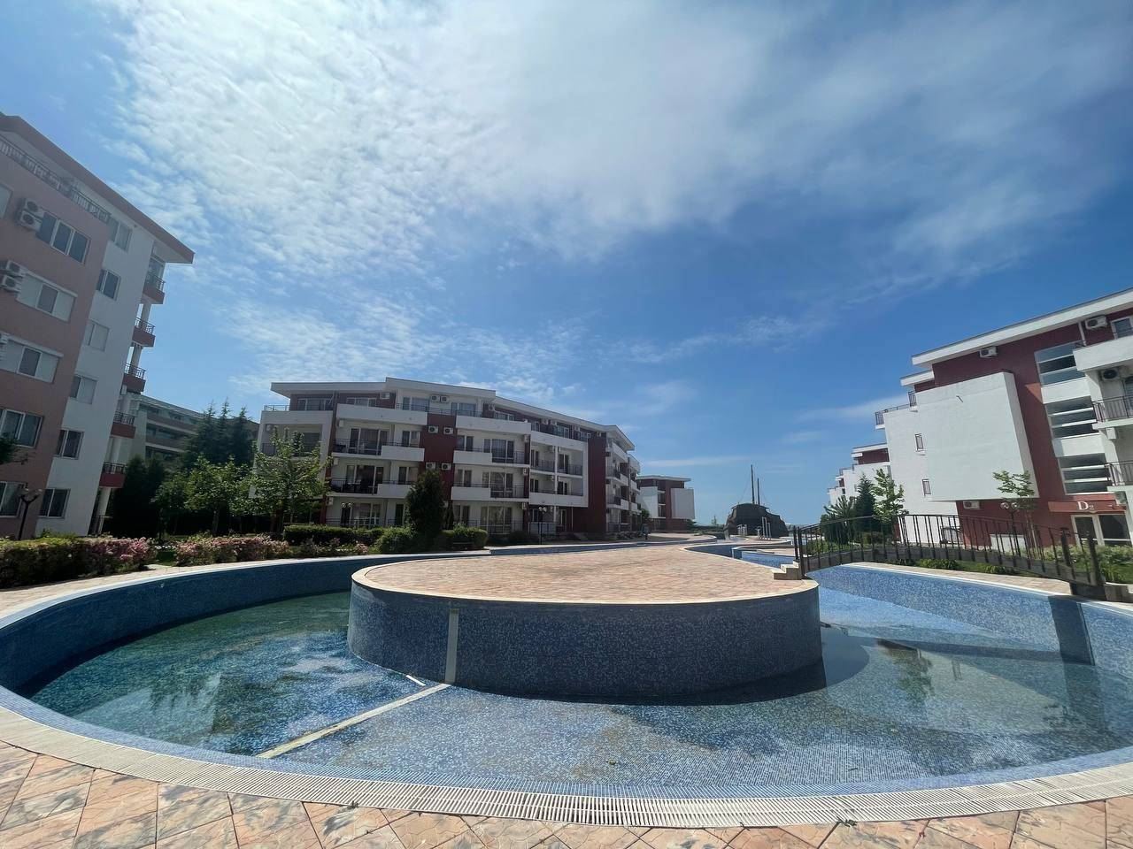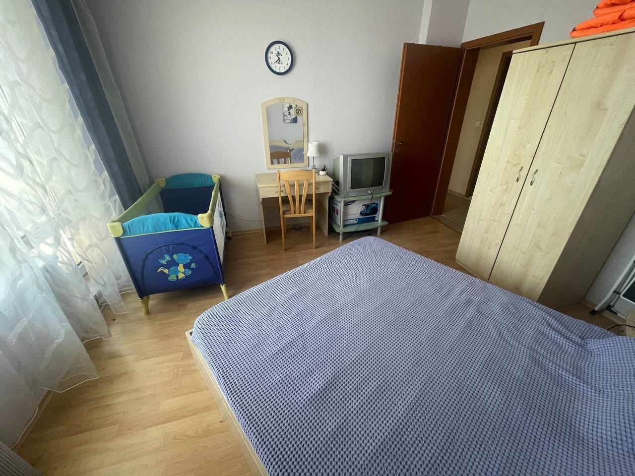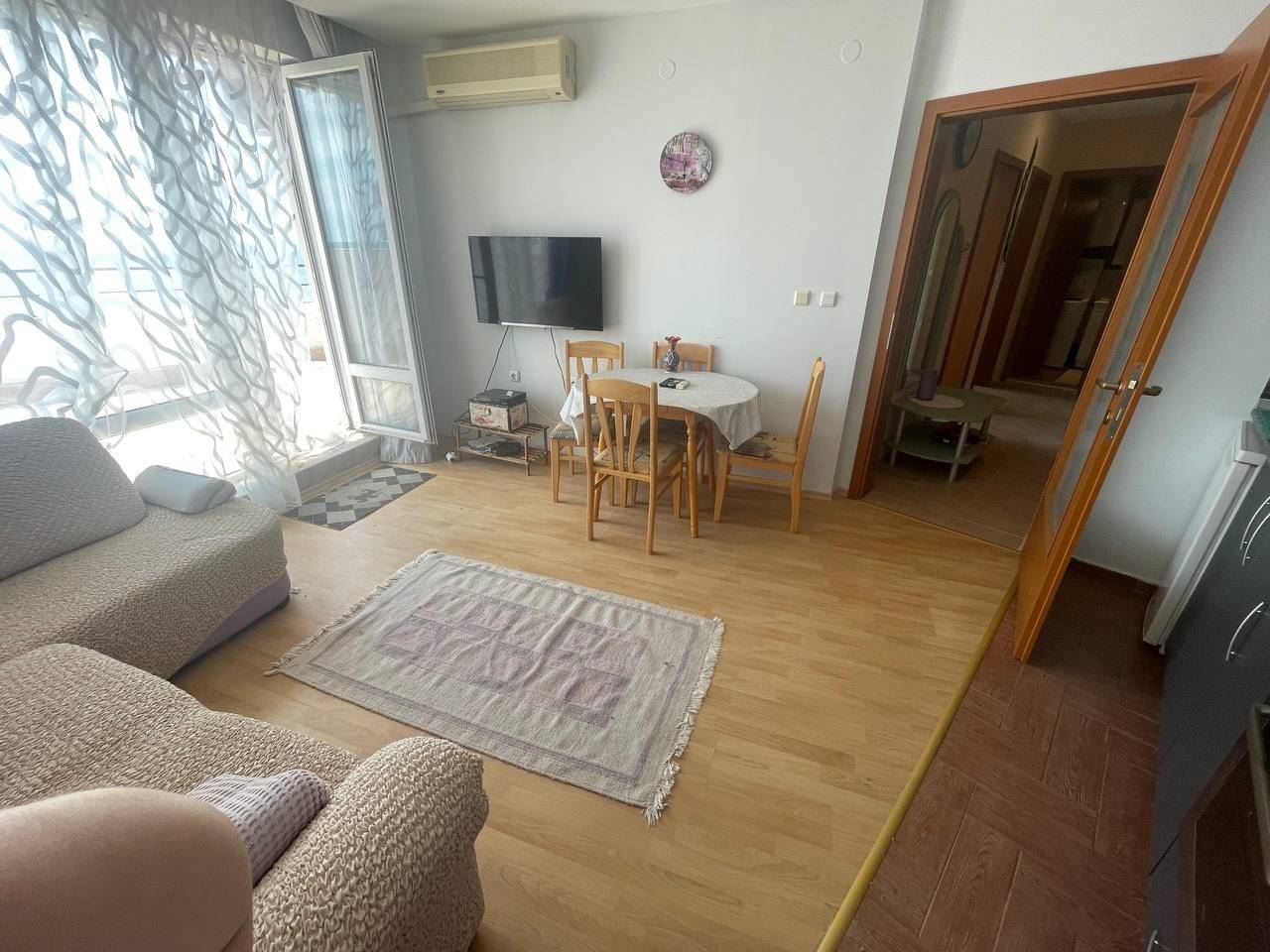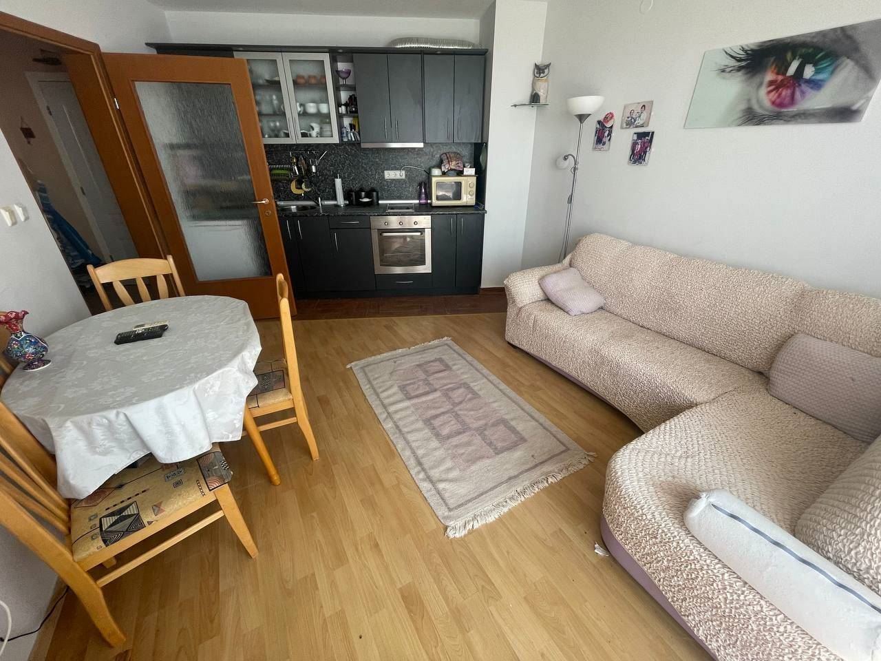 First-class two-bedroom apartment on the first line with direct sea view in the resort Elenite in an excellent family complex. The picturesque resort is a green area at the foot of the mountains and the very sea. A nice private beach is just next to the complex. Comfortable very green and beautiful with a large and well-groomed area, the complex is suitable for permanent residence. It has several swimming pools and recreation areas, playground, play area, supermarket, hair salon, security, parking. The spacious two bedroom apartment is located on the fifth floor of the building. The apartment has a surface of 86 m2 and is for sale fully furnished and equipped. It consists of an entrance hall, a large living room with kitchen area, two bedrooms, a bathroom and a big balcony with beautiful sea view.